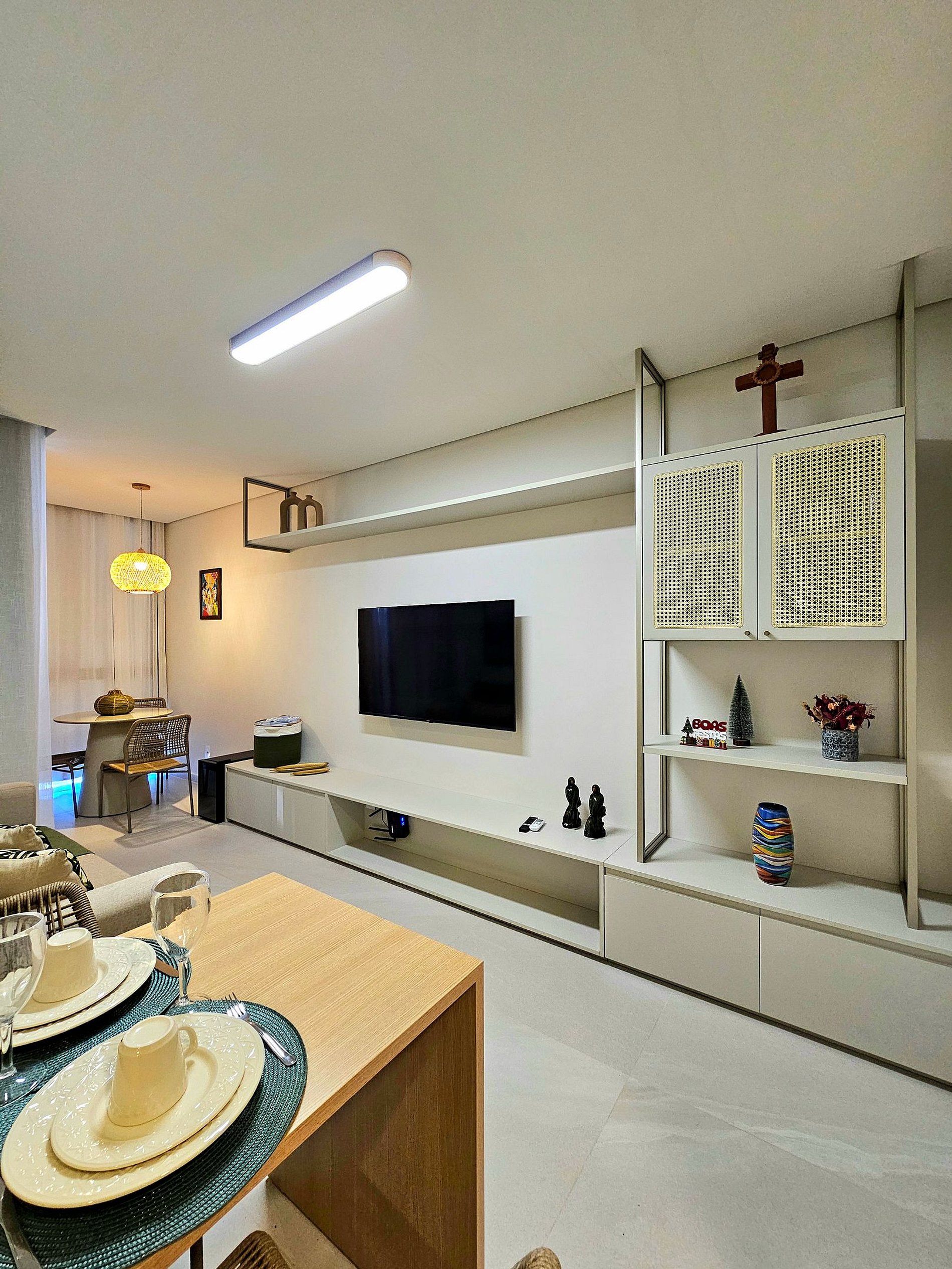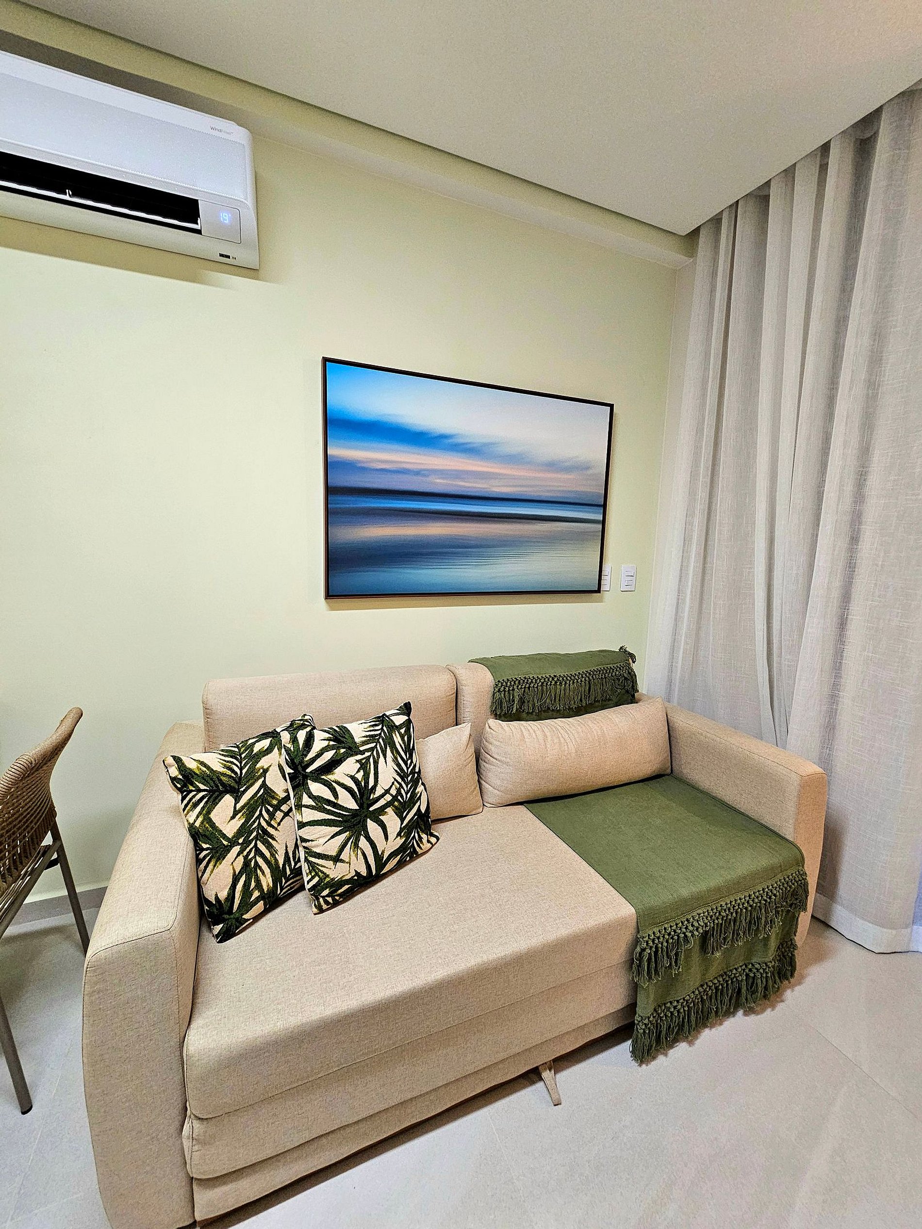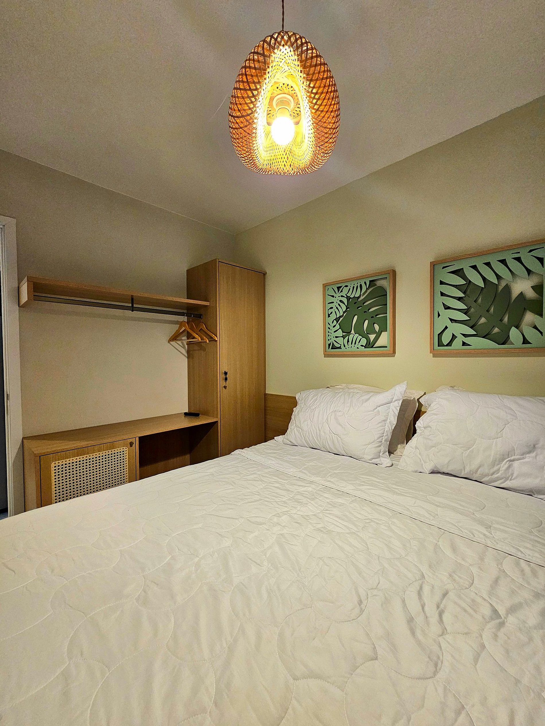 Unidade com Quarto Separado da sala, acomodamos com muito conforto 4 hóspedes em 1 quarto (3 hóspedes) e 1 na sala. ambos com ar condicionado.