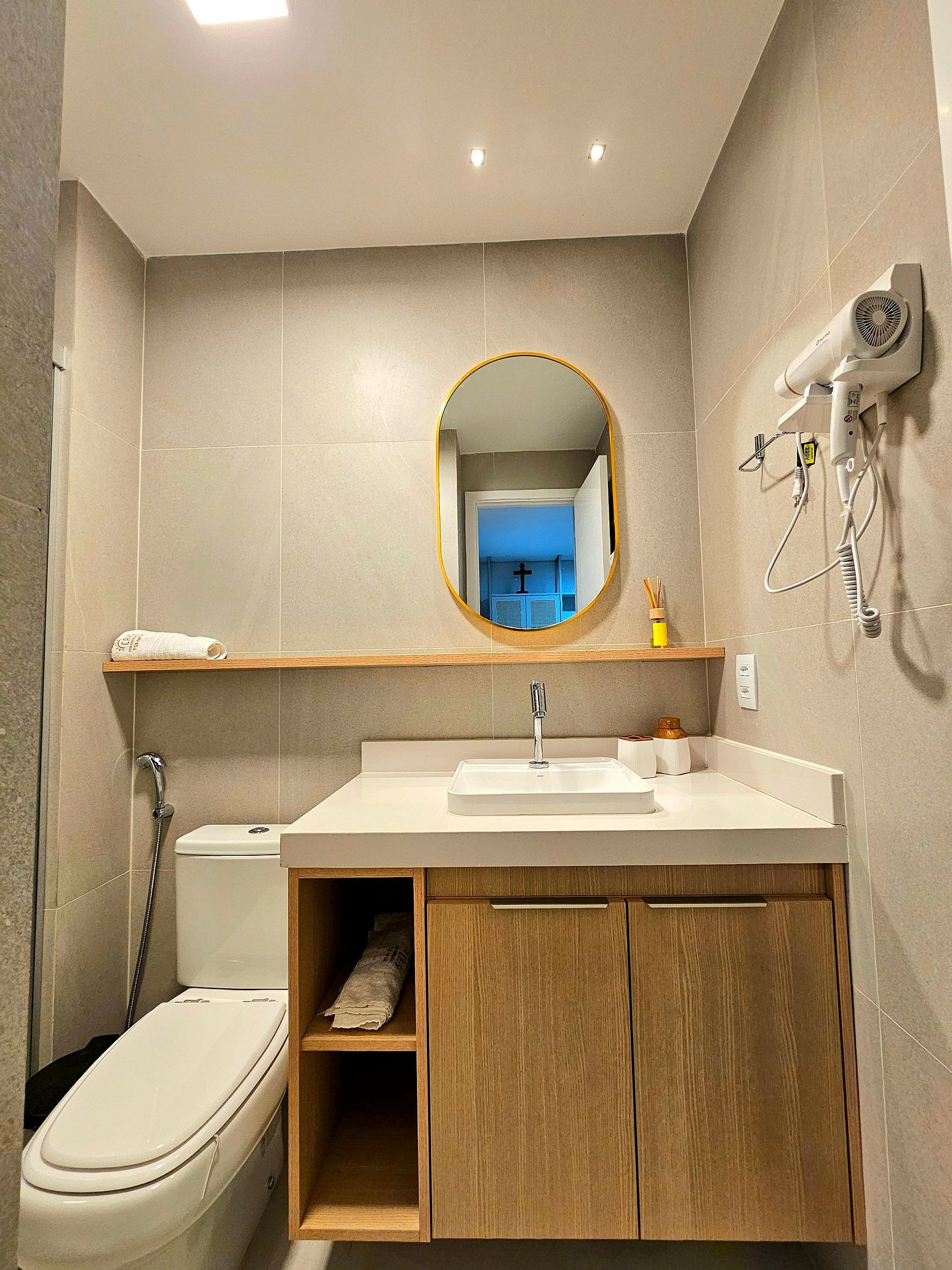 Temos ainda para maior comodidade dos nossos hóspedes: Ferro de passar e secador de cabelos.
