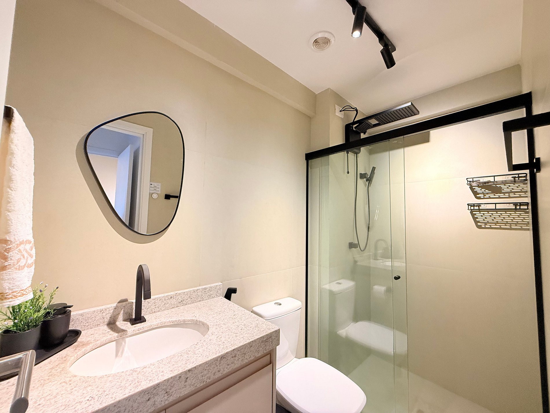 Oferecemos enxoval completo com roupas de cama e banho de alta qualidade. Você pode fazer o check-in com facilidade, a recepção é presencial 24h e o acesso ao flat por fechadura digital.