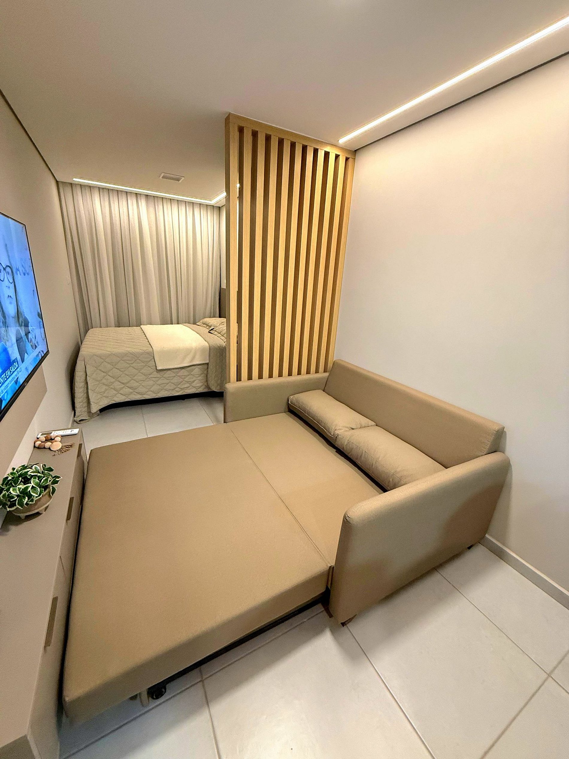 1. Quarto com cama de casal e sofá cama muito confortável.