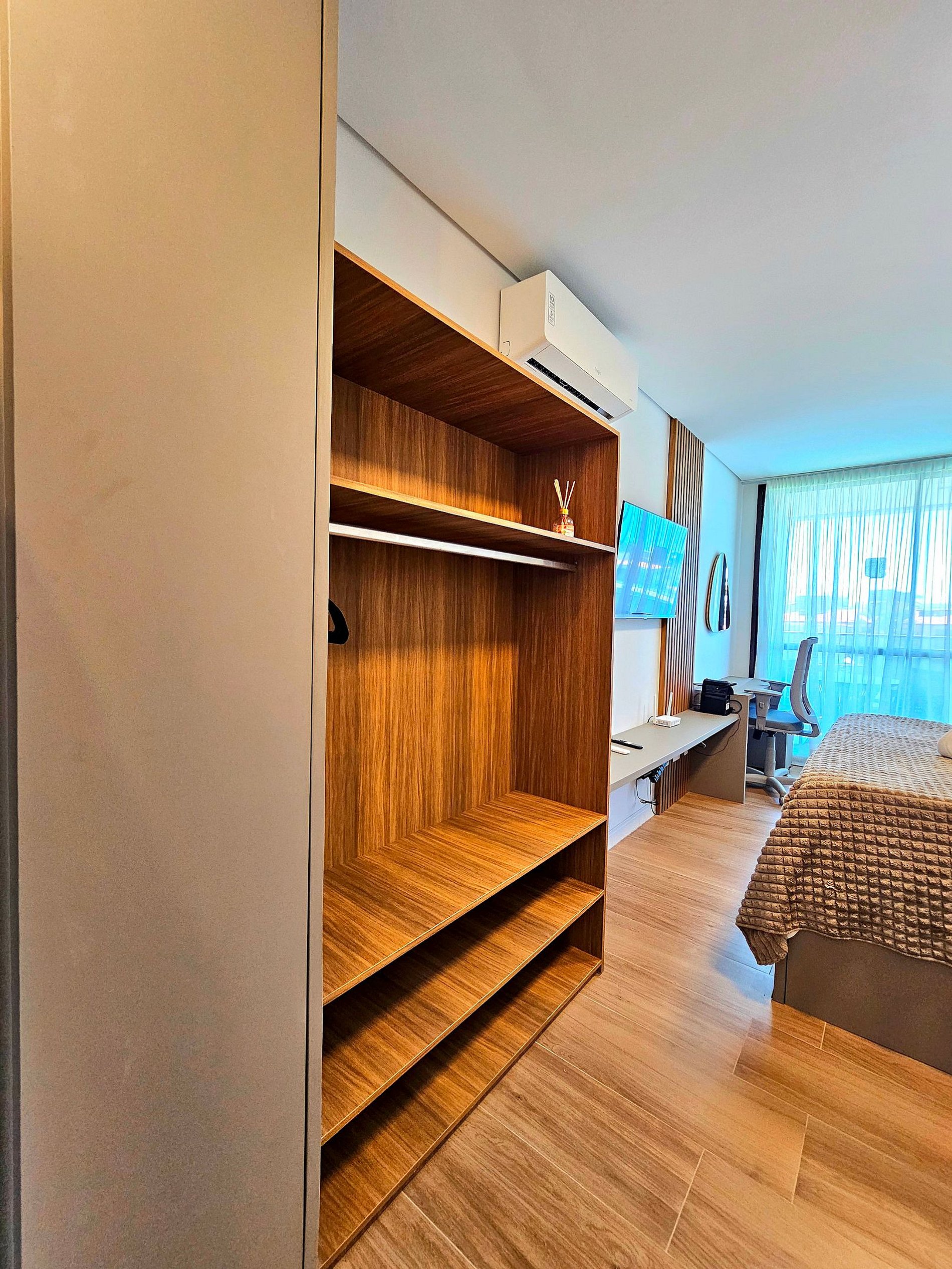O espaço foi projetado para que você tenha tudo o que precisa ao seu alcance, garantindo uma estadia funcional e aconchegante.