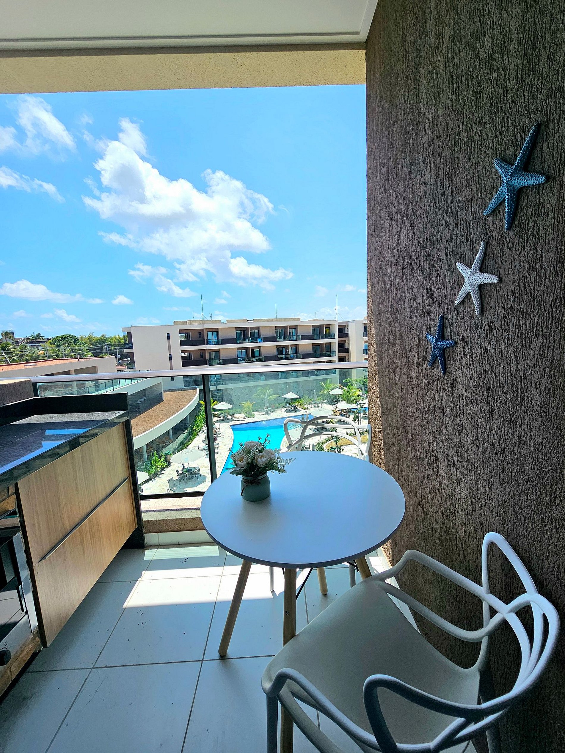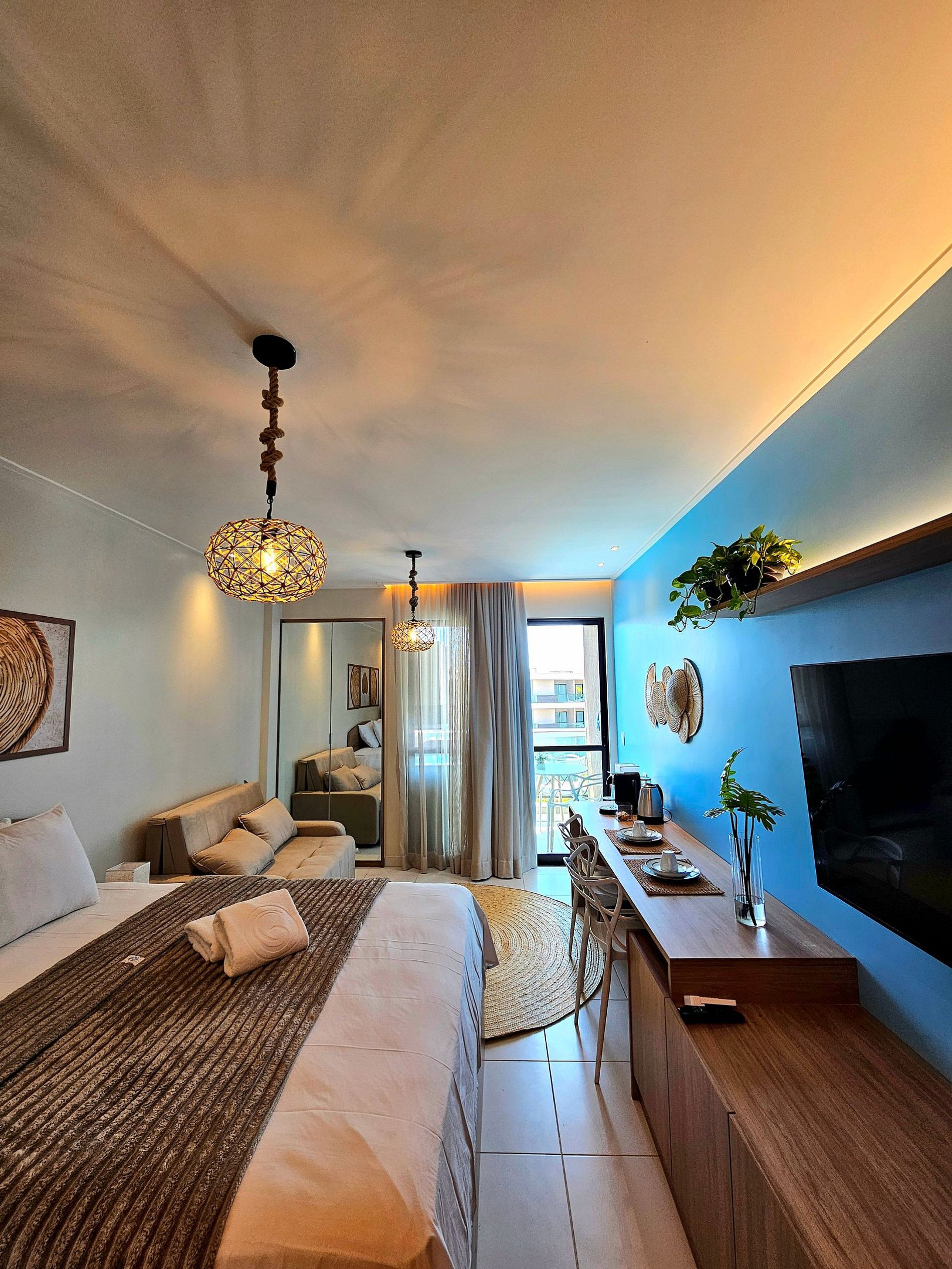 O Flat possui uma decoração sofisticada que proporciona um ambiente relaxante após um dia de passeios em Porto de Galinhas e Muro Alto.