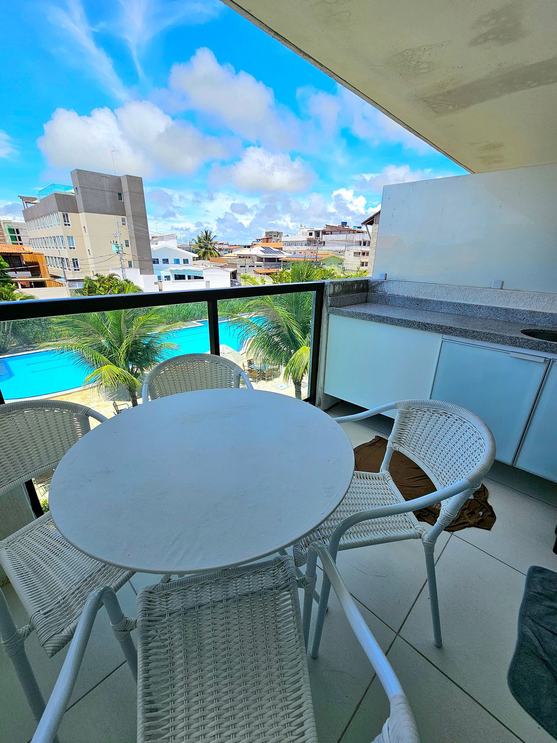 A Cereja do Bolo é nossa varanda gourmet, com mesas e cadeiras para aproveitar um final de tarde com vista da piscina.