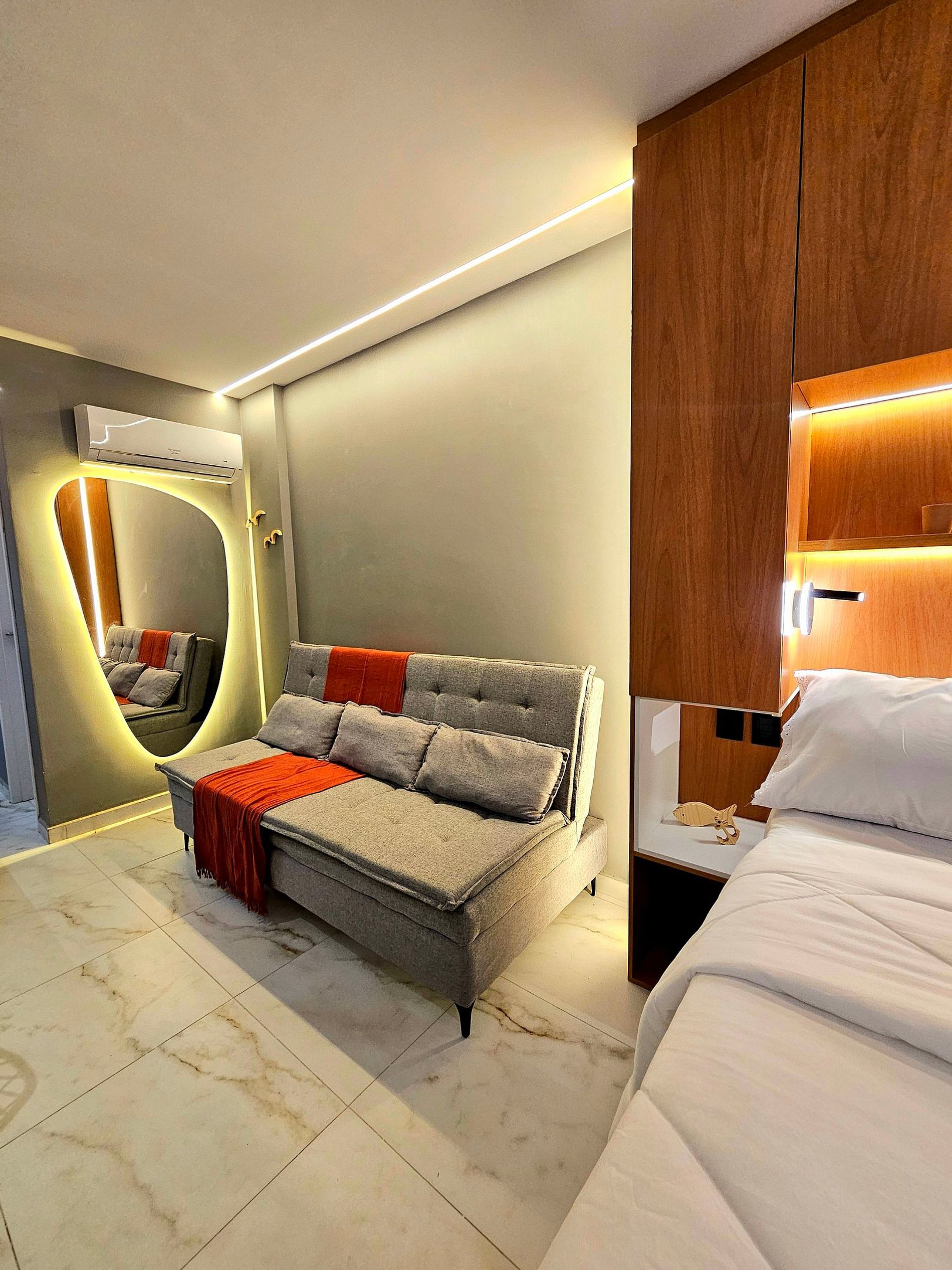 1. Quarto com cama de casal e Sofá-cama;