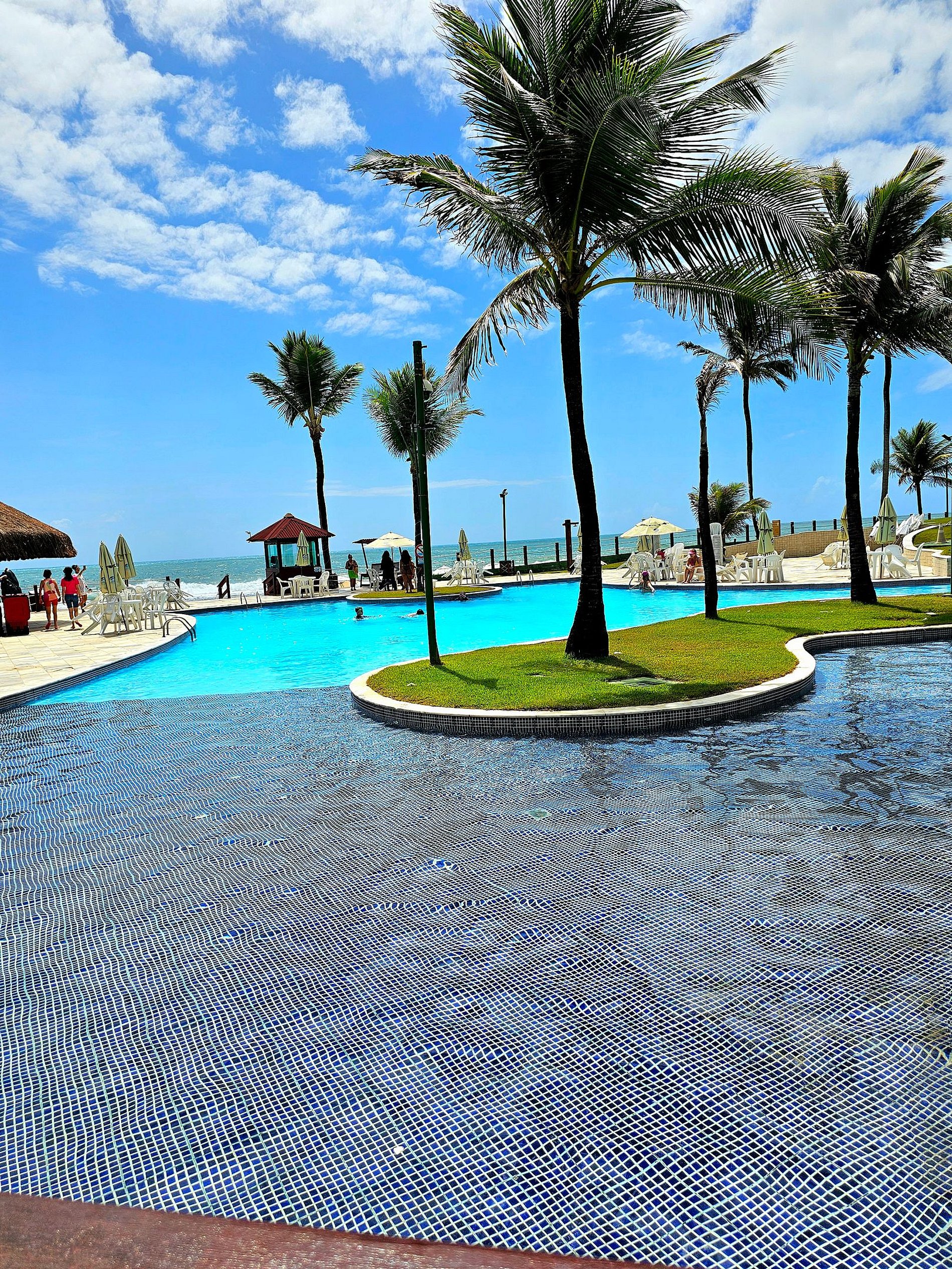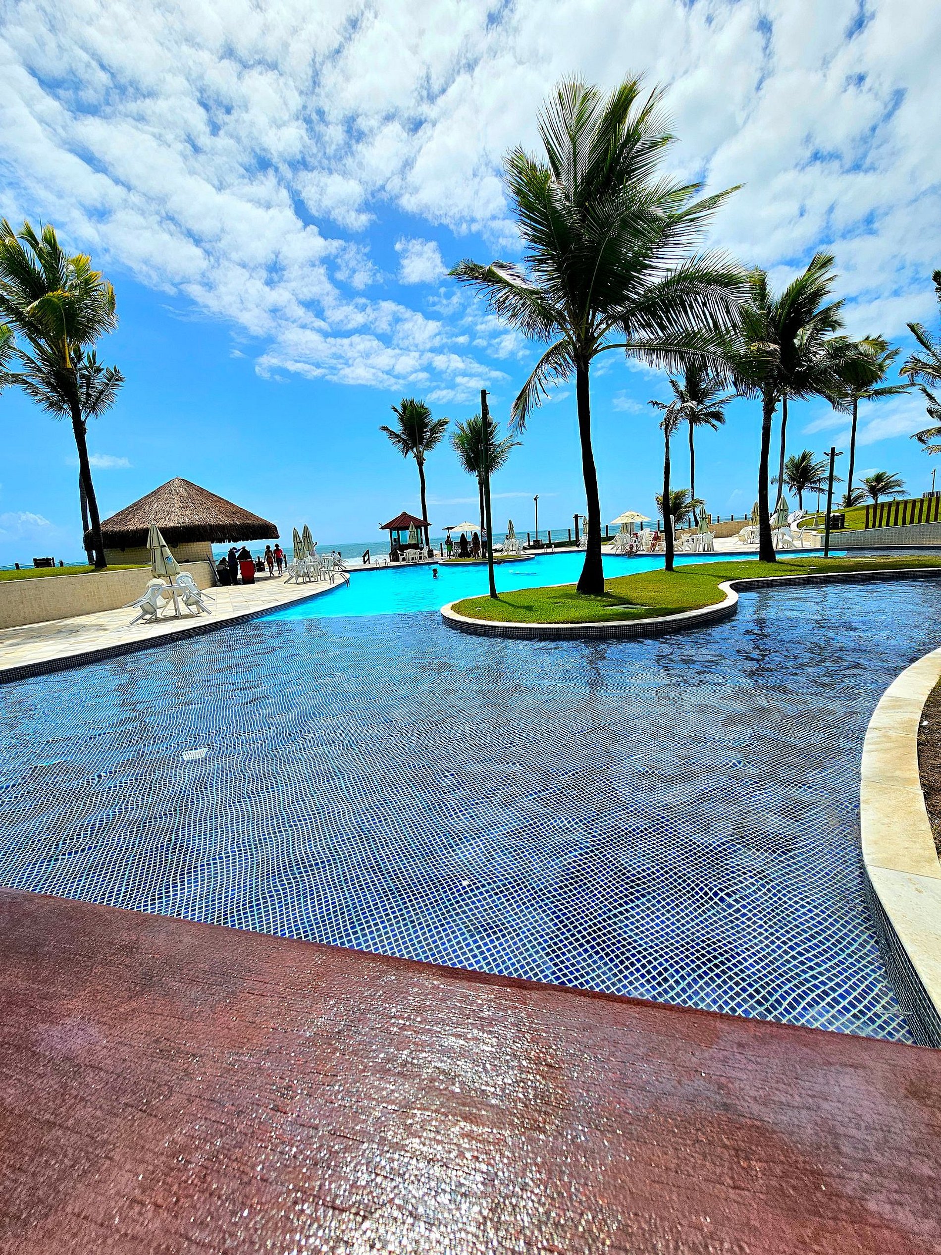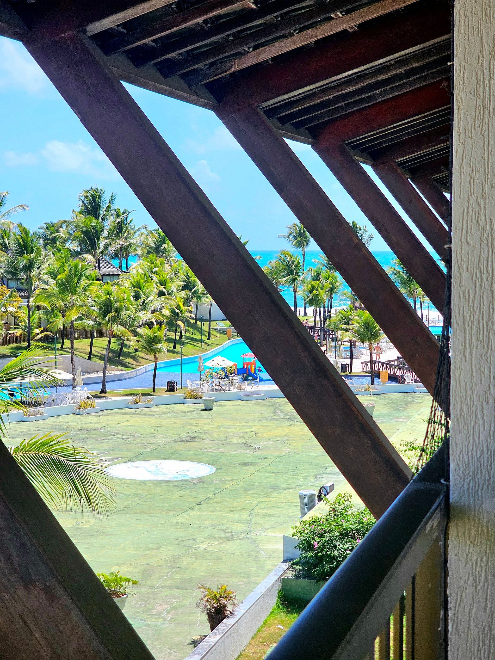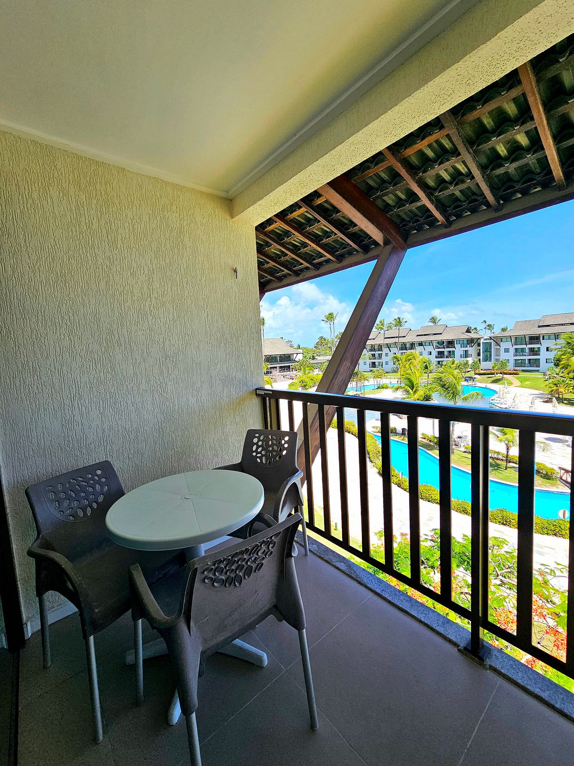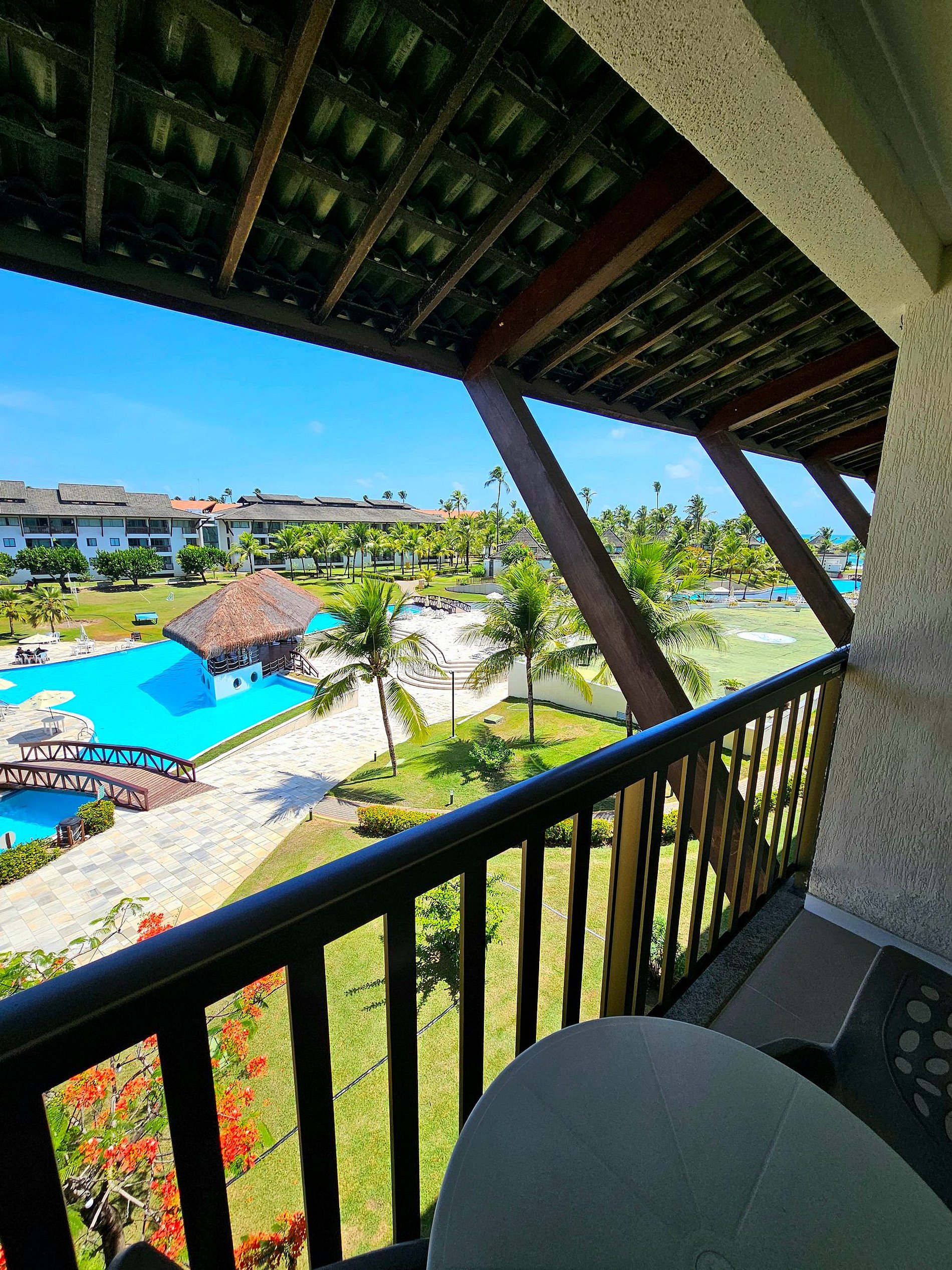 A Cereja do Bolo é nossa varanda com vista para o parque aquático do condomínio e ainda uma pequena vista do mar.