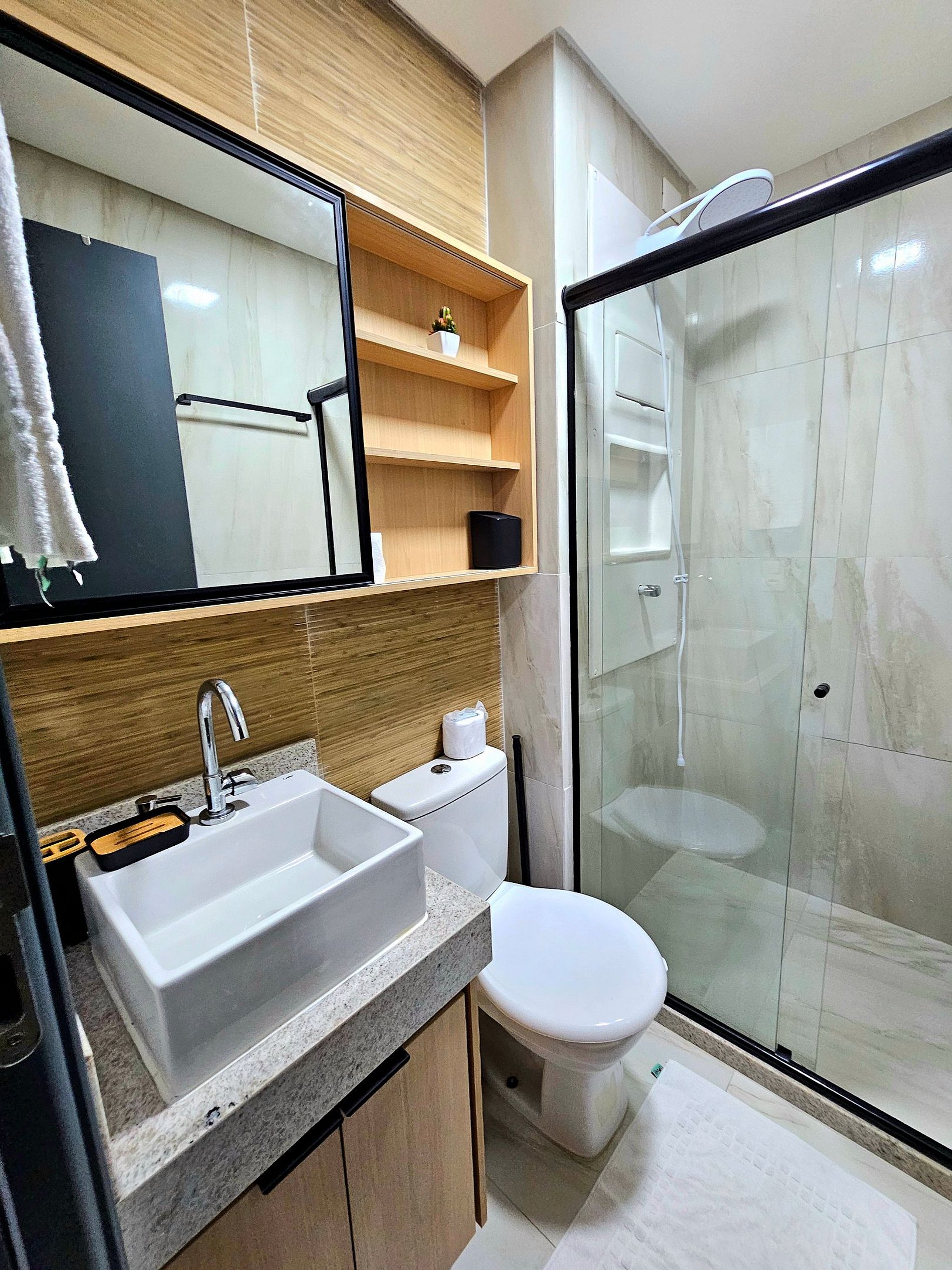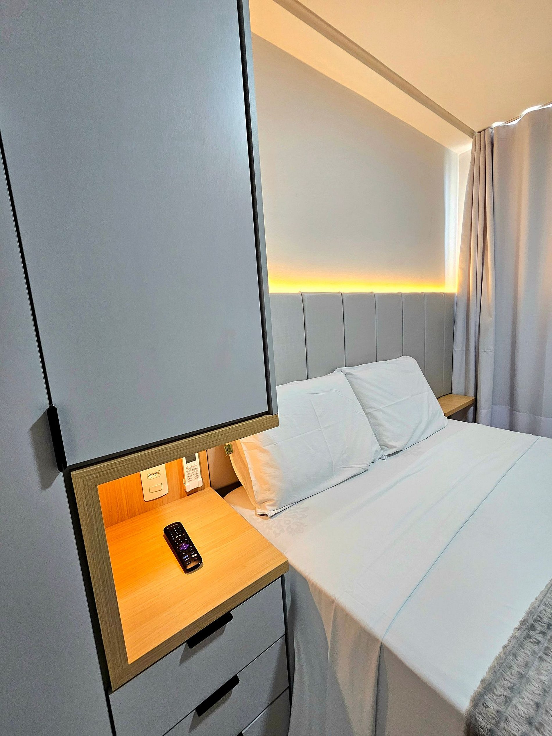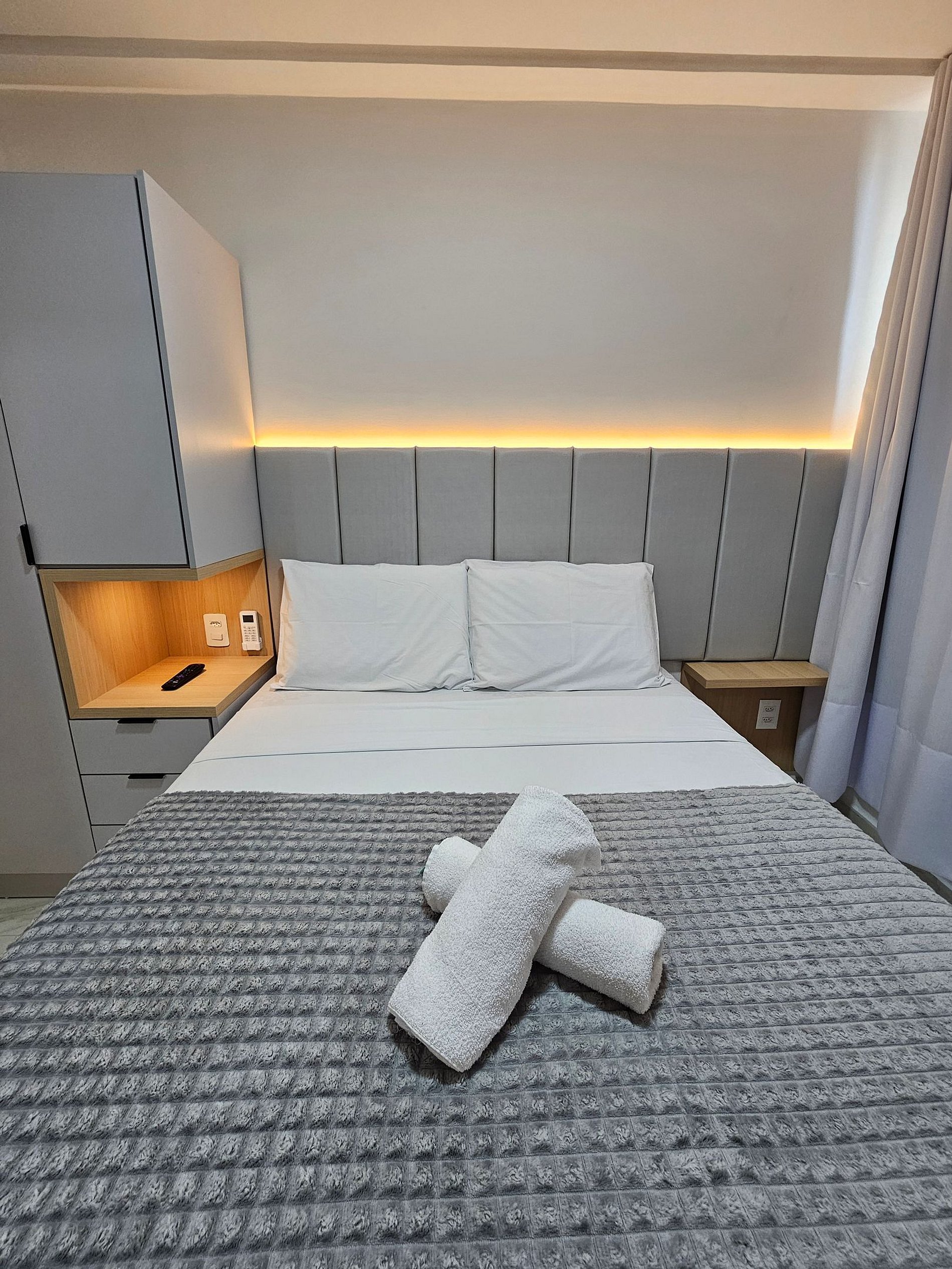 Perfeito para até 3 hóspedes, o apartamento foi cuidadosamente projetado para oferecer o máximo conforto. Com uma cama de casal aconchegante no quarto e um sofá-cama na sala, o espaço combina sofisticação e funcionalidade, os 2 ambientes climatizados.
