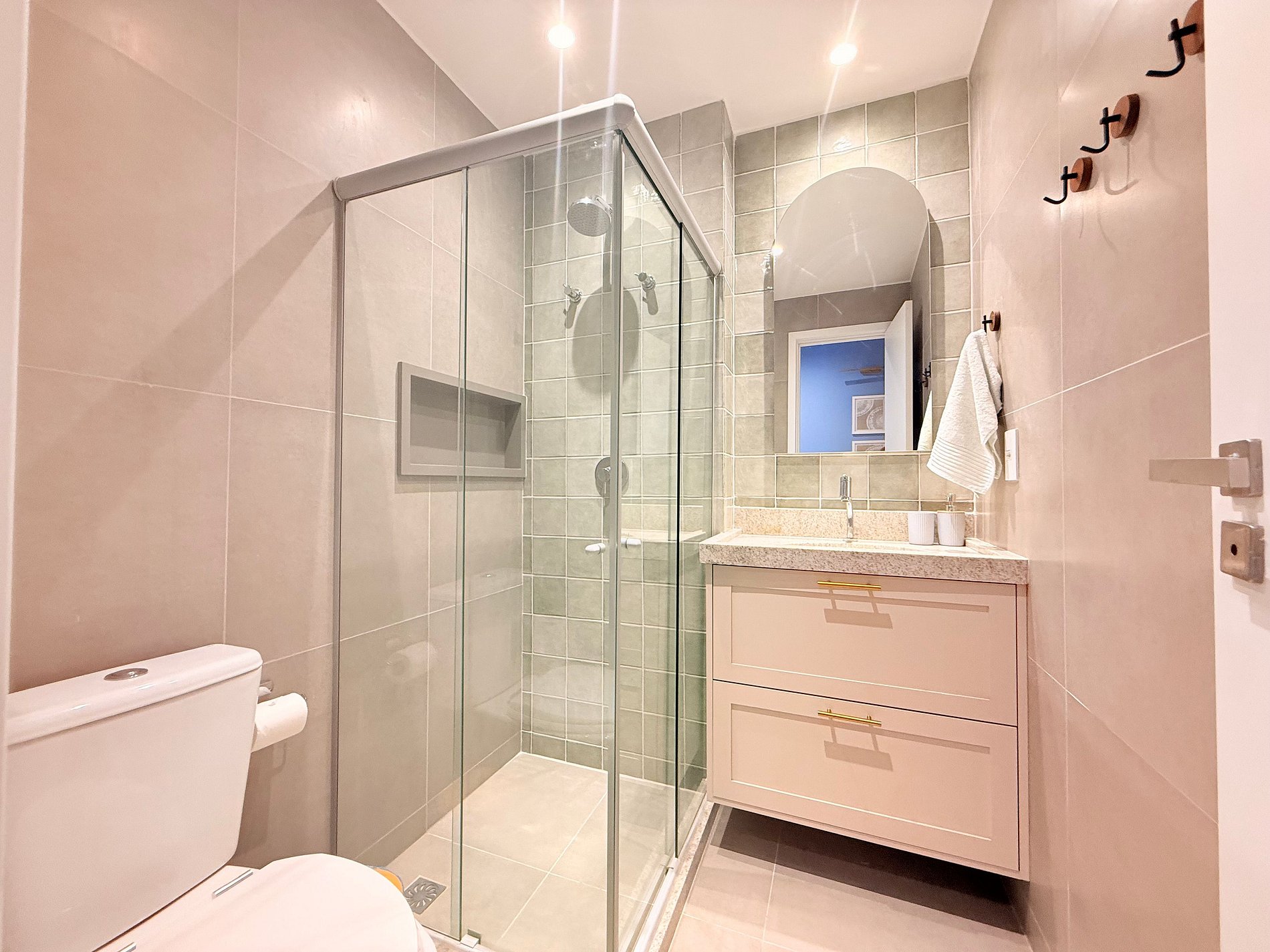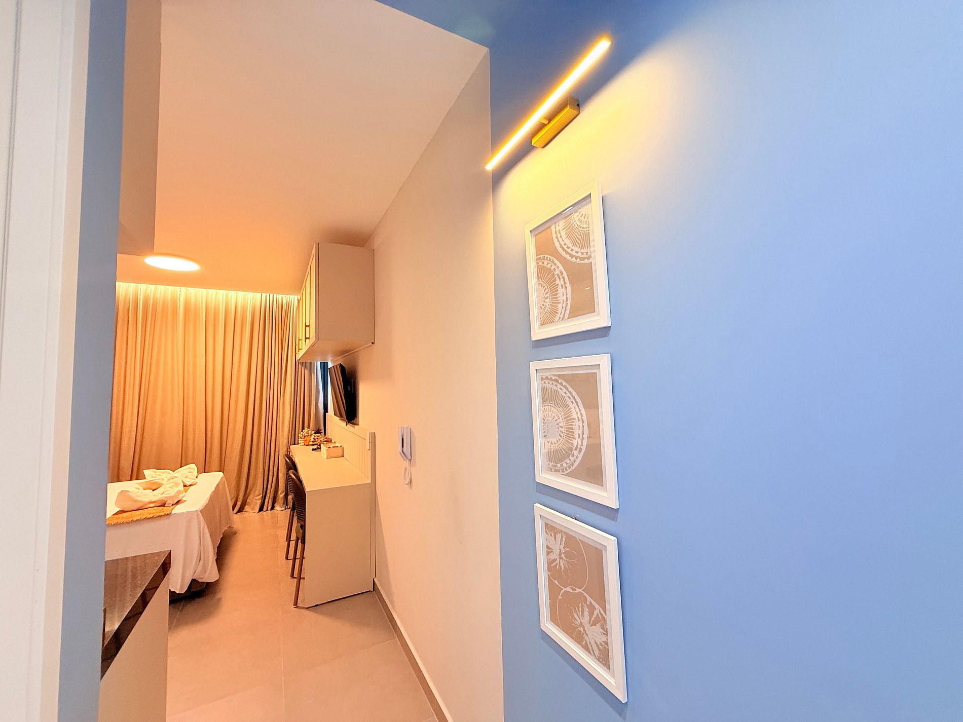 O flat acomoda confortavelmente até 3 hóspedes, com uma cama de casal extremamente confortável e uma cama auxiliar, garantindo noites tranquilas e aconchegantes. A decoração é moderna e funcional, criando um ambiente acolhedor para descansar, relaxar ou trabalhar, caso necessário.