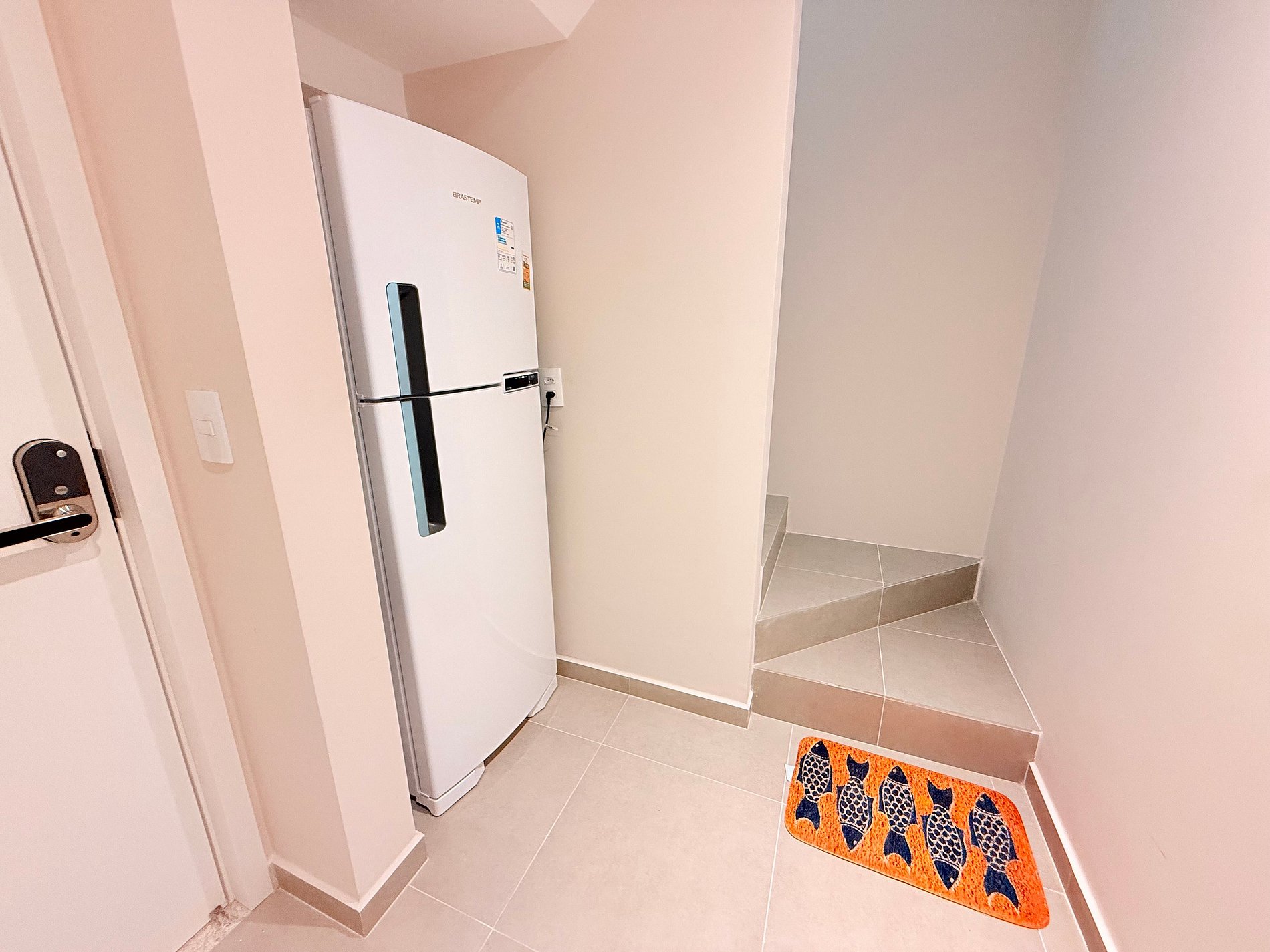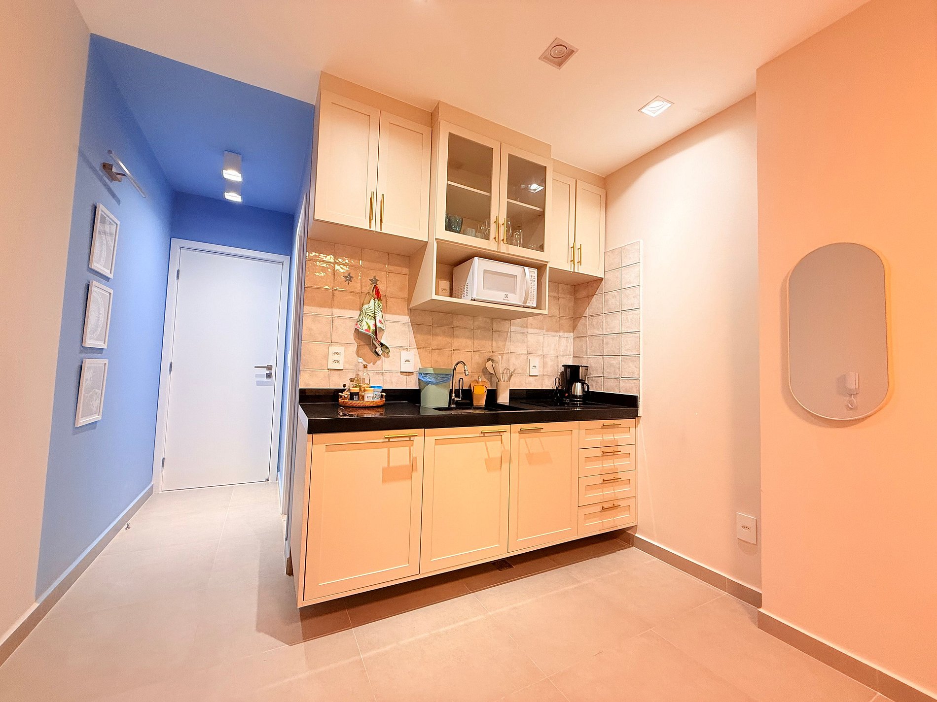A cozinha é completa e conta com tudo o que você precisa para preparar refeições durante a estadia: cooktop, geladeira, micro-ondas, cafeteira, liquidificador e sanduicheira. Seja para fazer um café da manhã caprichado ou um lanche rápido após um dia de praia, você terá total autonomia e comodidade.