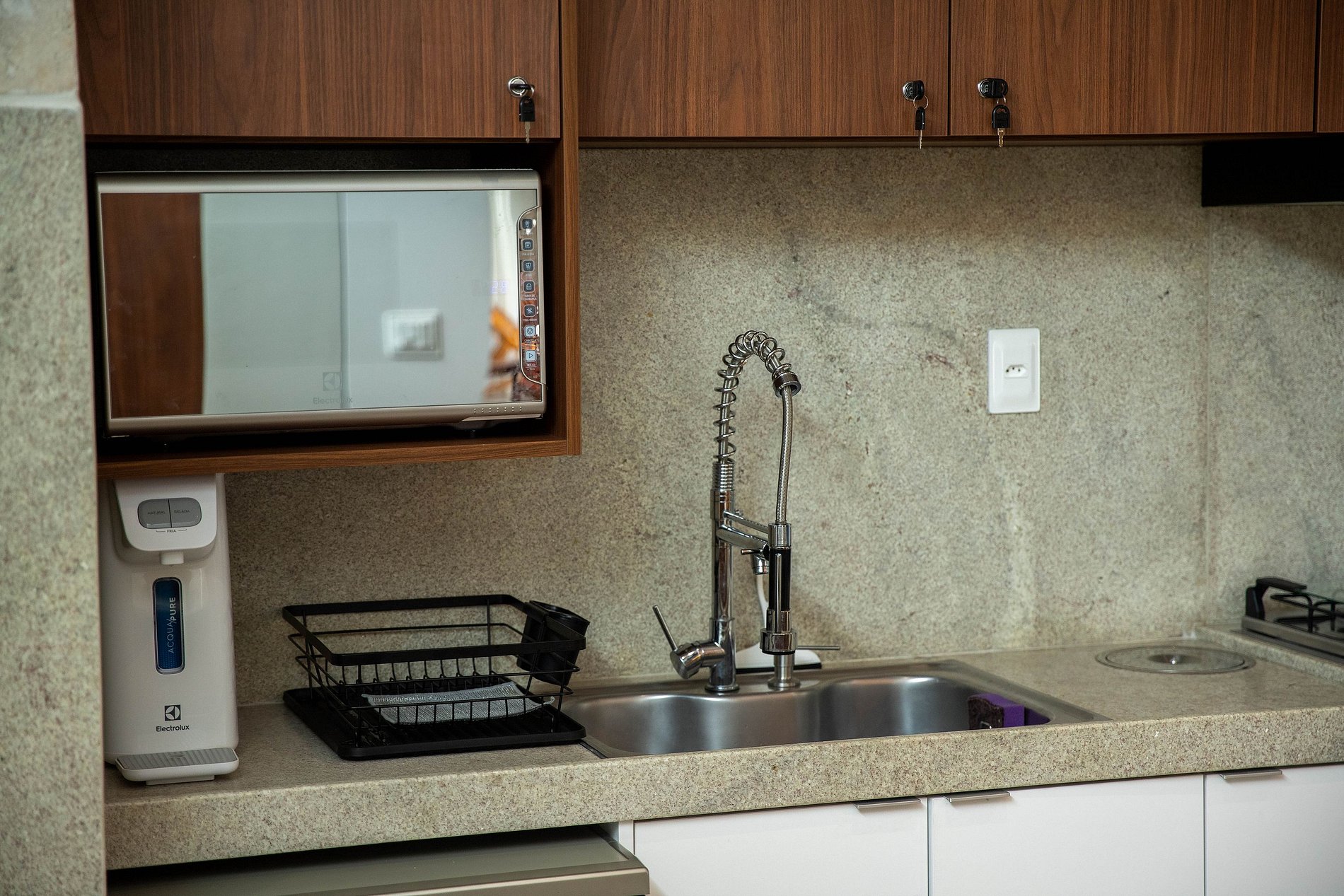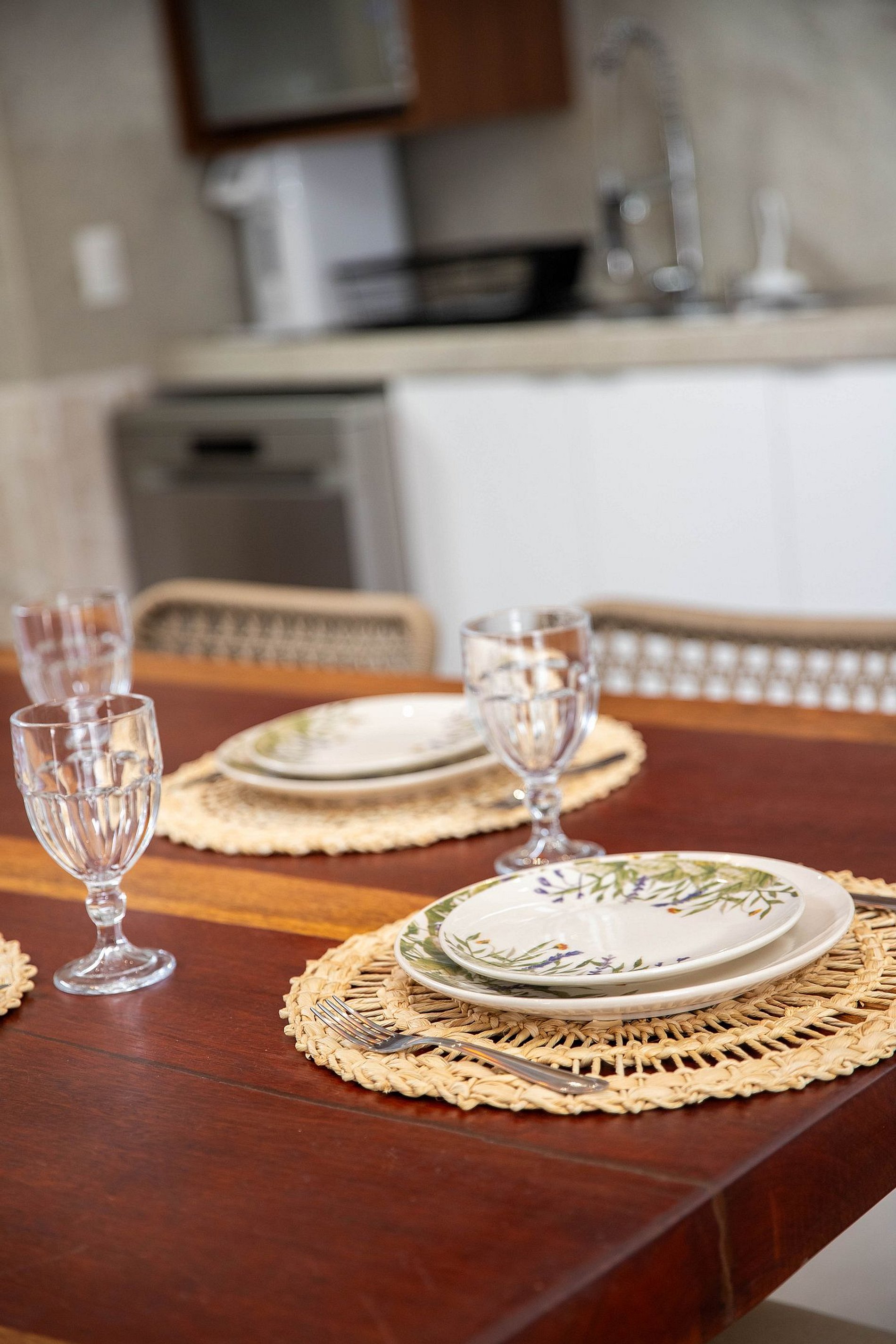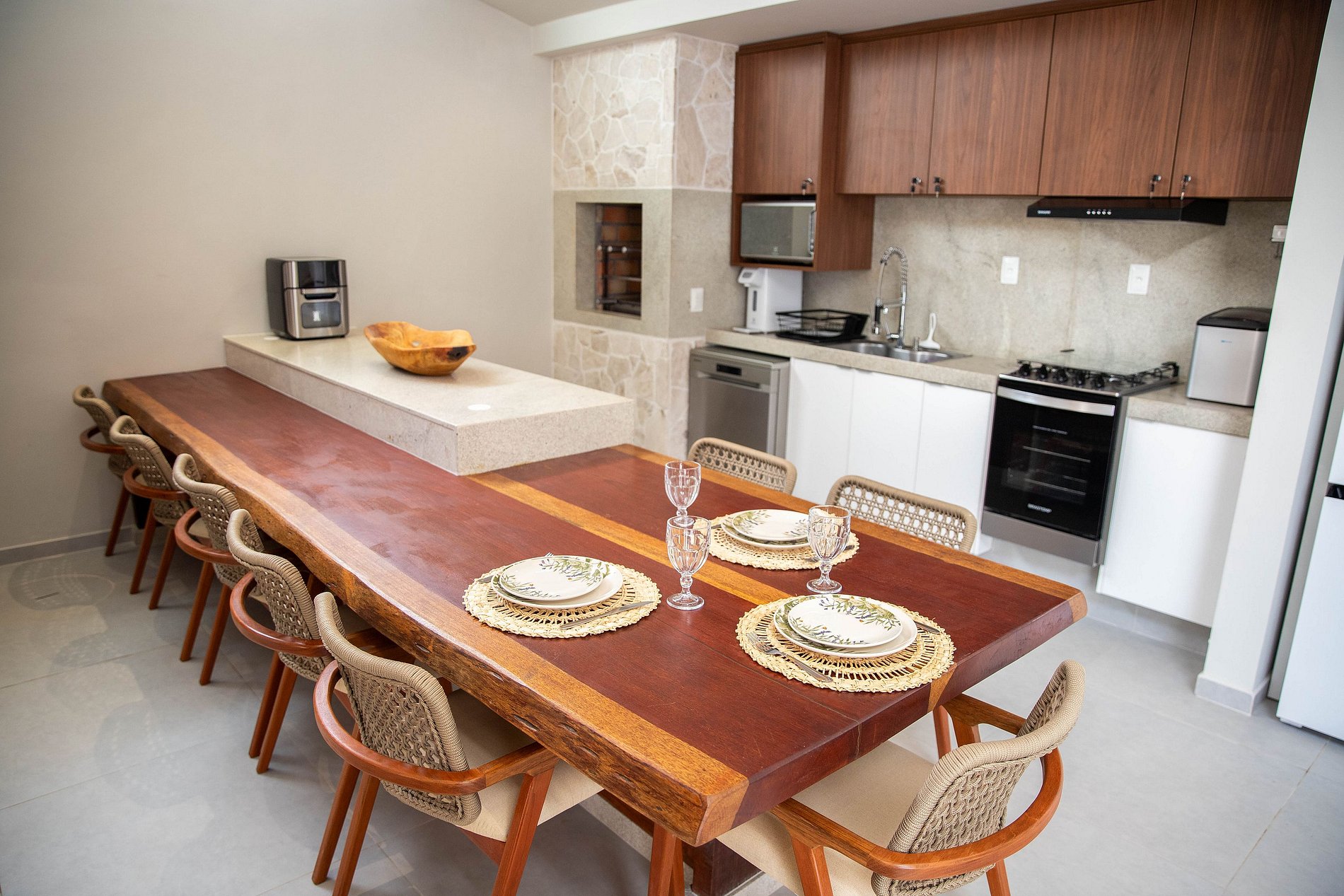 A sala ampla e elegante oferece um espaço aconchegante para convivência, ideal para reunir a família e os amigos em momentos especiais. A cozinha é muito espaçosa, totalmente equipada e integrada com a casa para que você se sinta em casa com todos os itens necessários para realizar qualquer refeição como fogão, micro-ondas, geladeira, freezer, purificador de água, sanduicheira, cafeteira, jogos completos de pratos e talhares, diversas taças, cristaleiras. inclusive churrasqueira. Dispõe também de uma excelente churrasqueira, cervejeira e adega. Tudo cuidadosamente preparado para atender desde refeições rápidas até jantares especiais.
