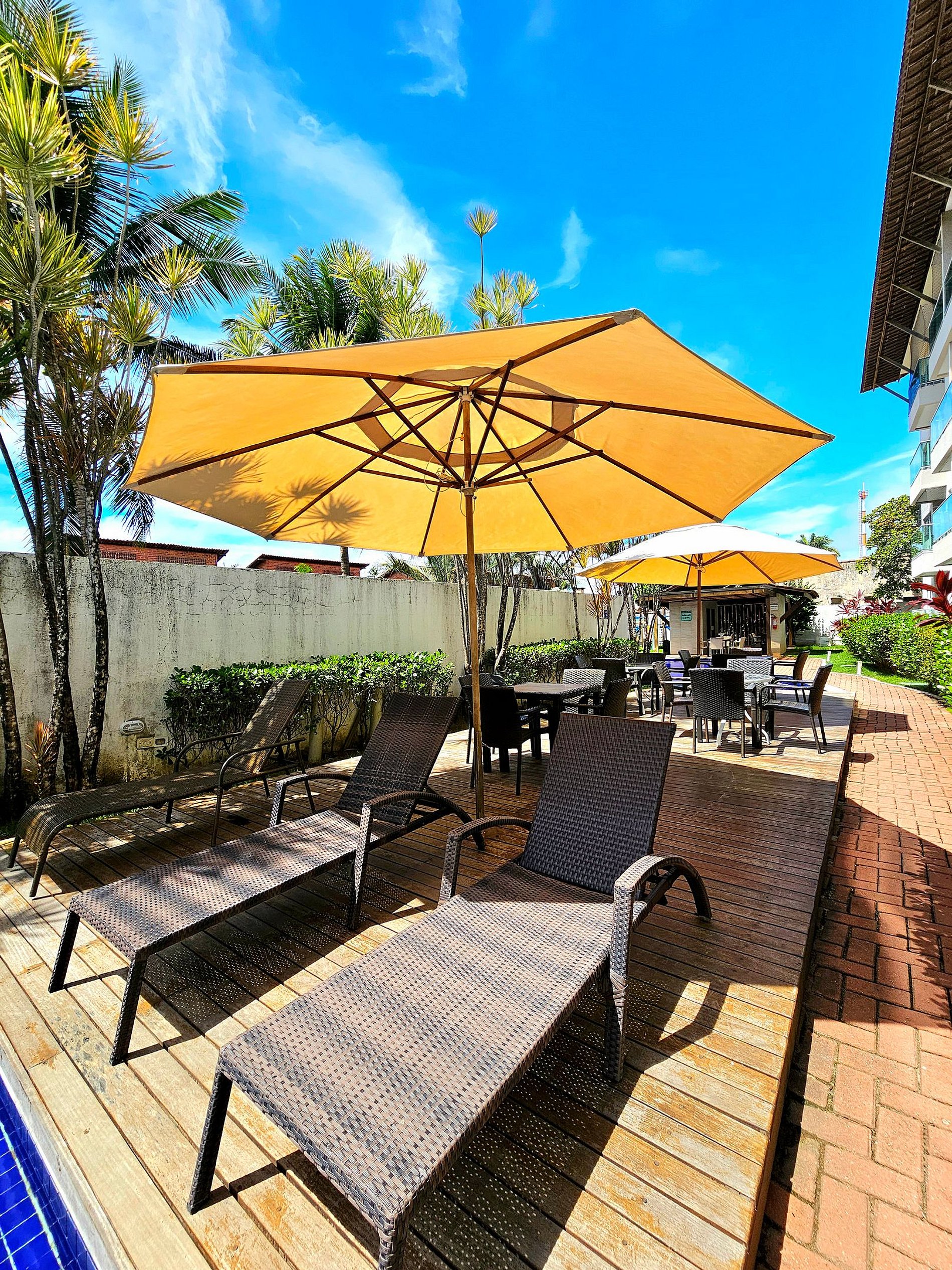 * Complexo aquático com diversas piscinas isoladas e várias profundidades (espreguiçadeiras e mesas)