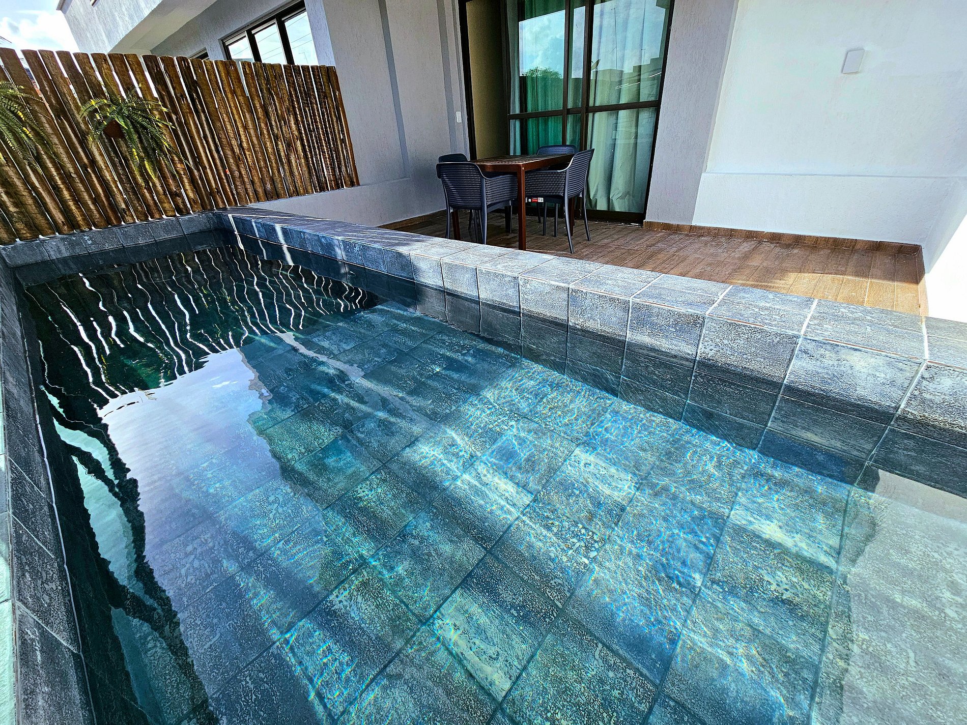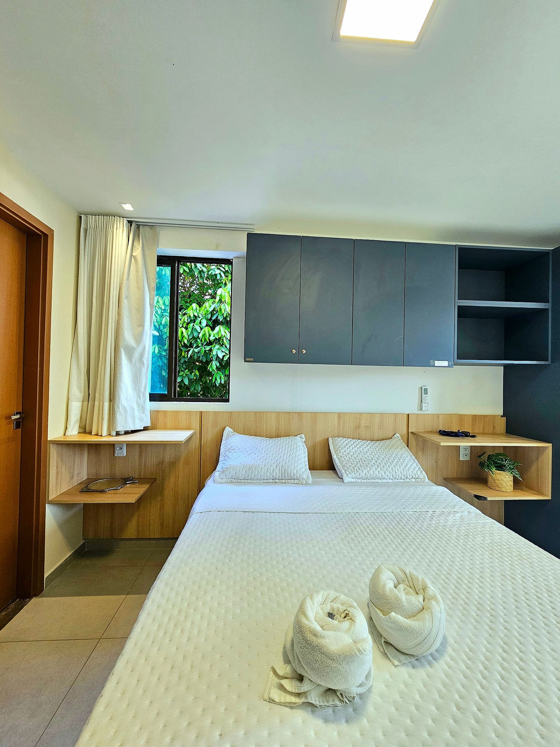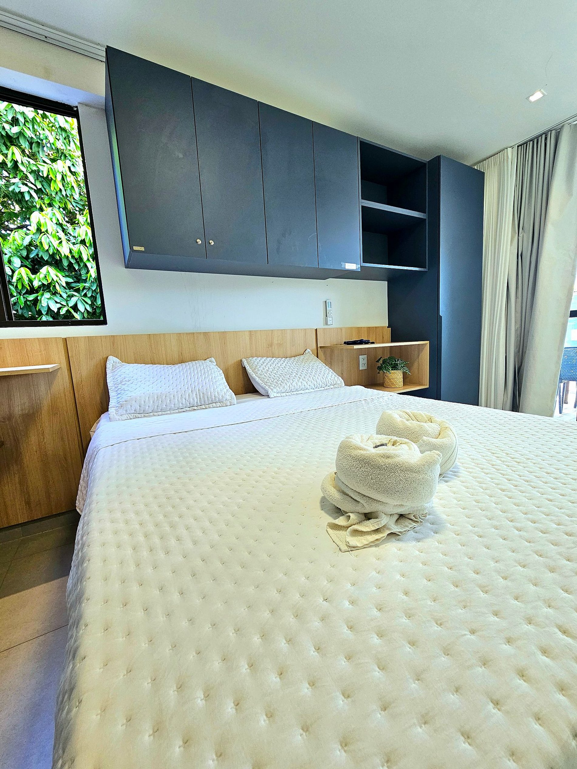 Lindo Flat Studio com uma área externa excelente e uma Piscina privativa com um ótimo tamanho no centro de Porto de Galinhas. Cozinha completa e equipada, acomoda bem 4 pessoas, possui ar-condicionado, bem mobiliado e decorado para proporcionar o máximo de conforto. Ideal para aproveitar Porto sem depender de carro! Apenas a 3 minutos de caminhada da rua principal do centro de Porto de Galinhas. Estrutura no Rooftop (Piscina, Área Gourmet, Mesas, Cadeiras, Academia) Estacionamento rotativo