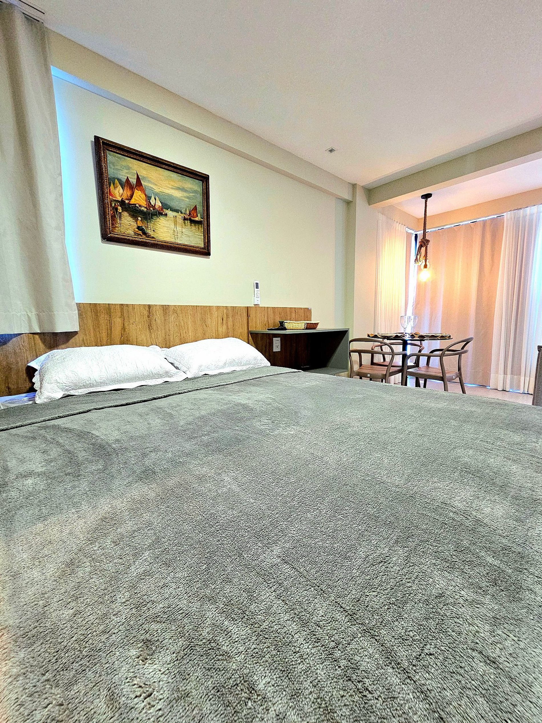 Excelente Flat Studio, alto luxo no centro de Porto de Galinhas. Cozinha completa e equipada, acomoda bem 4 pessoas, possui ar-condicionado, bem mobiliado e decorado para proporcionar o máximo de conforto. Ideal para aproveitar Porto sem depender de carro! Apenas a 3 minutos de caminhada da rua principal do centro de Porto de Galinhas. Estrutura no Rooftop (Piscina, Área Gourmet, Mesas, Cadeiras, Academia), estacionamento com vagas rotativas sujeito a disponibilidade.