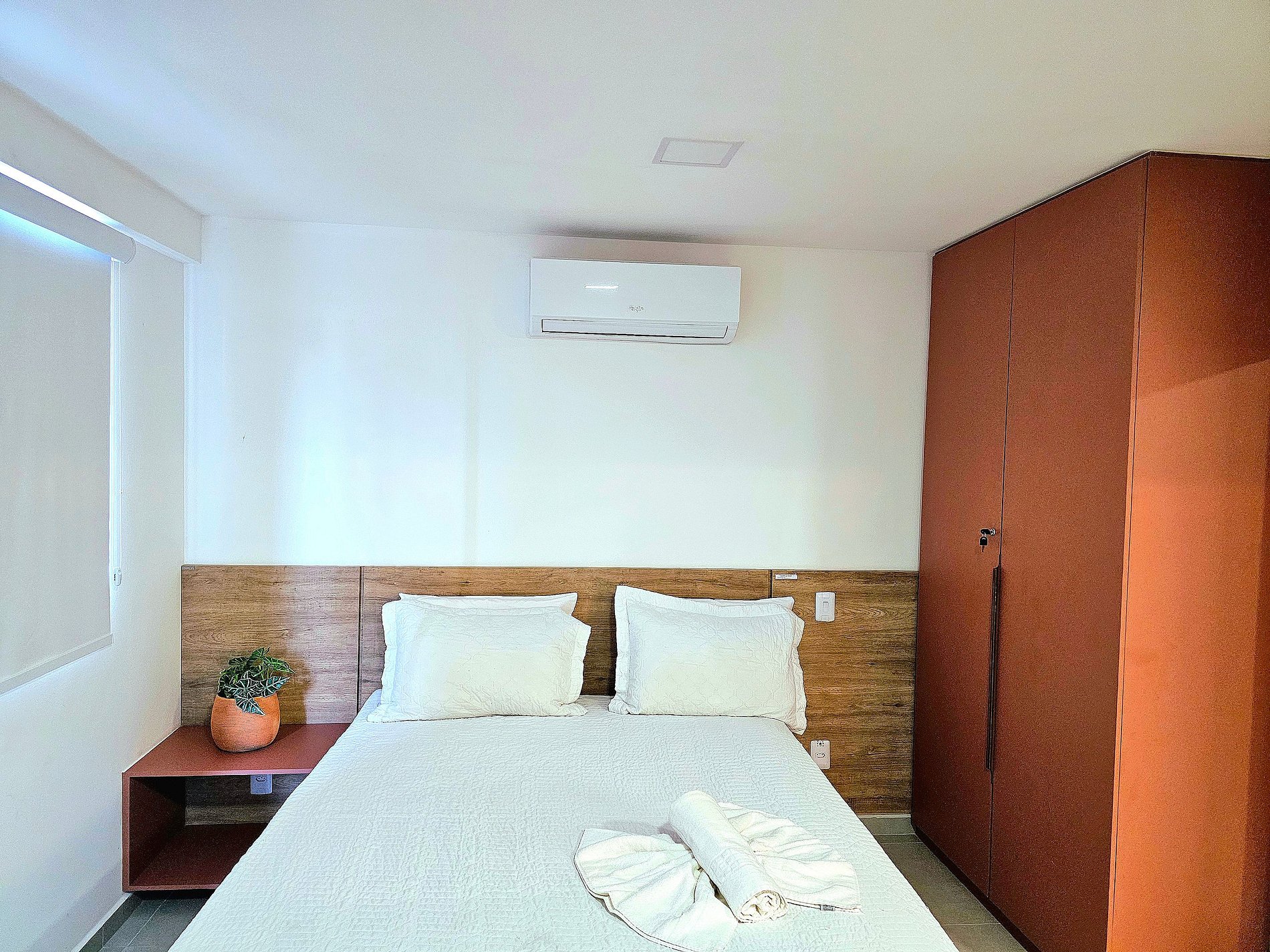 Excelente Flat Studio com Piscina privativa no centro de Porto de Galinhas. Cozinha completa e equipada, acomoda bem 4 pessoas, possui ar-condicionado, bem mobiliado e decorado para proporcionar o máximo de conforto. Ideal para aproveitar Porto sem depender de carro! Apenas a 3 minutos de caminhada da rua principal do centro de Porto de Galinhas. Estrutura no Rooftop (Piscina, Área Gourmet, Mesas, Cadeiras, Academia) Estacionamento rotativo
