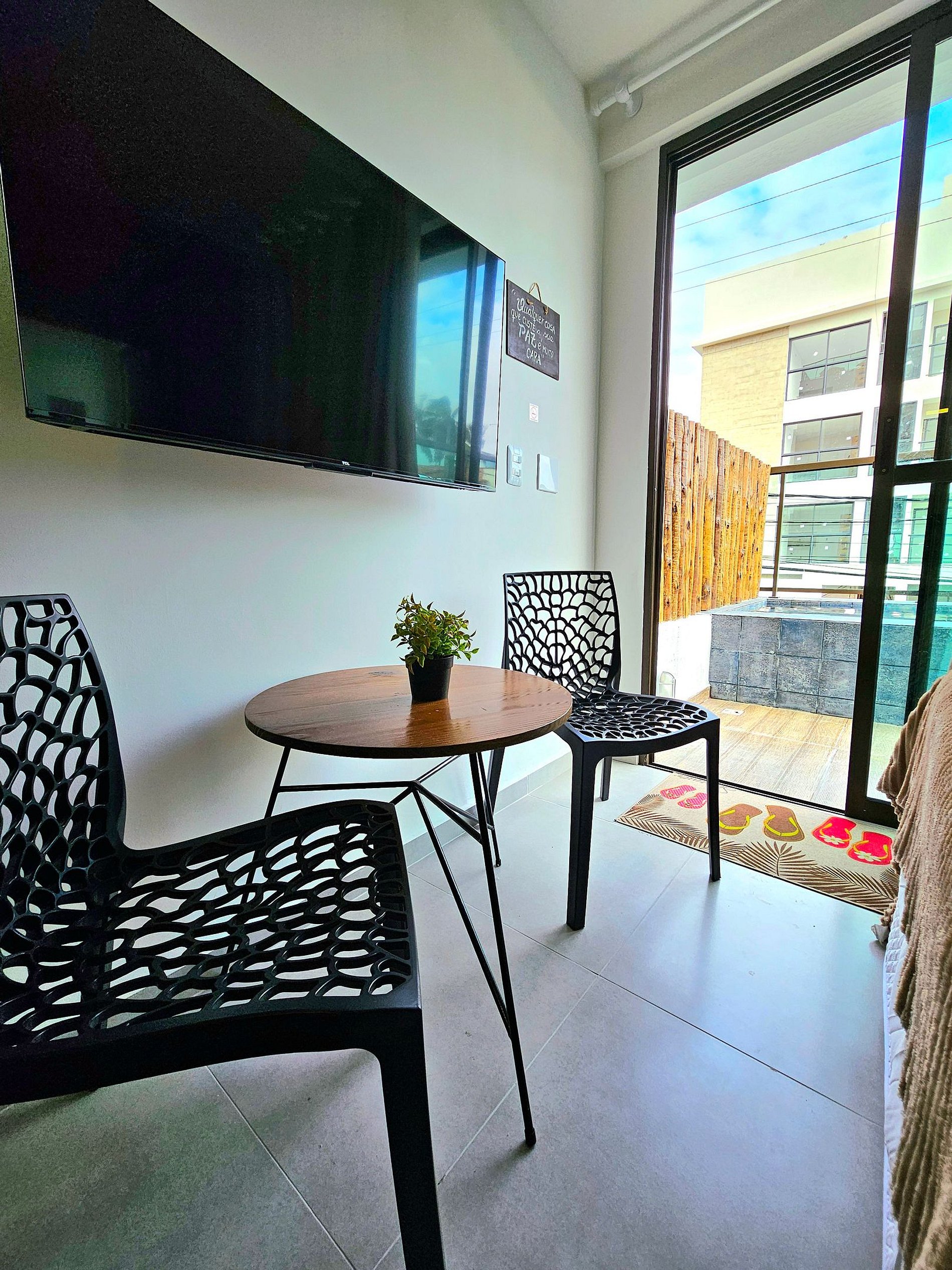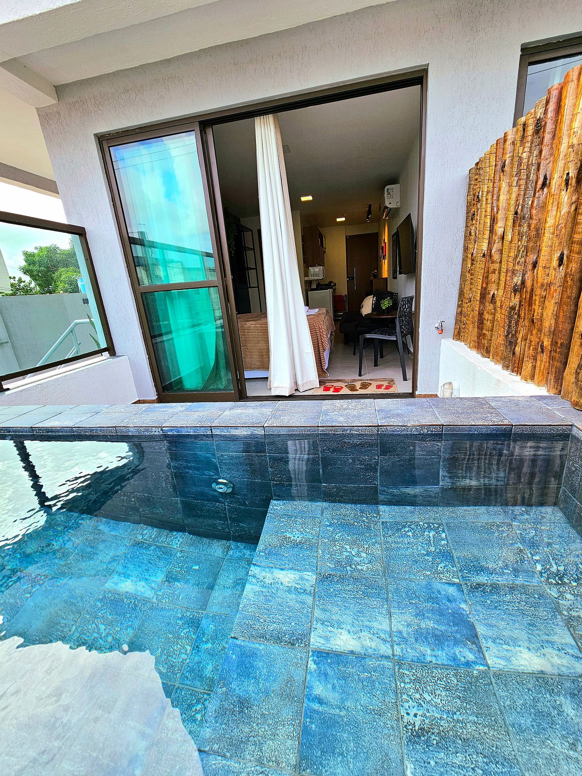 Lindo Flat Studio com Piscina privativa ( não é aquecida ) finamente decorado no centro de Porto de Galinhas. Cozinha completa e equipada, acomoda bem 4 pessoas, possui ar-condicionado, projeto de mobilias e decoração diferenciados para proporcionar o máximo de conforto. Ideal para aproveitar Porto sem depender de carro!
