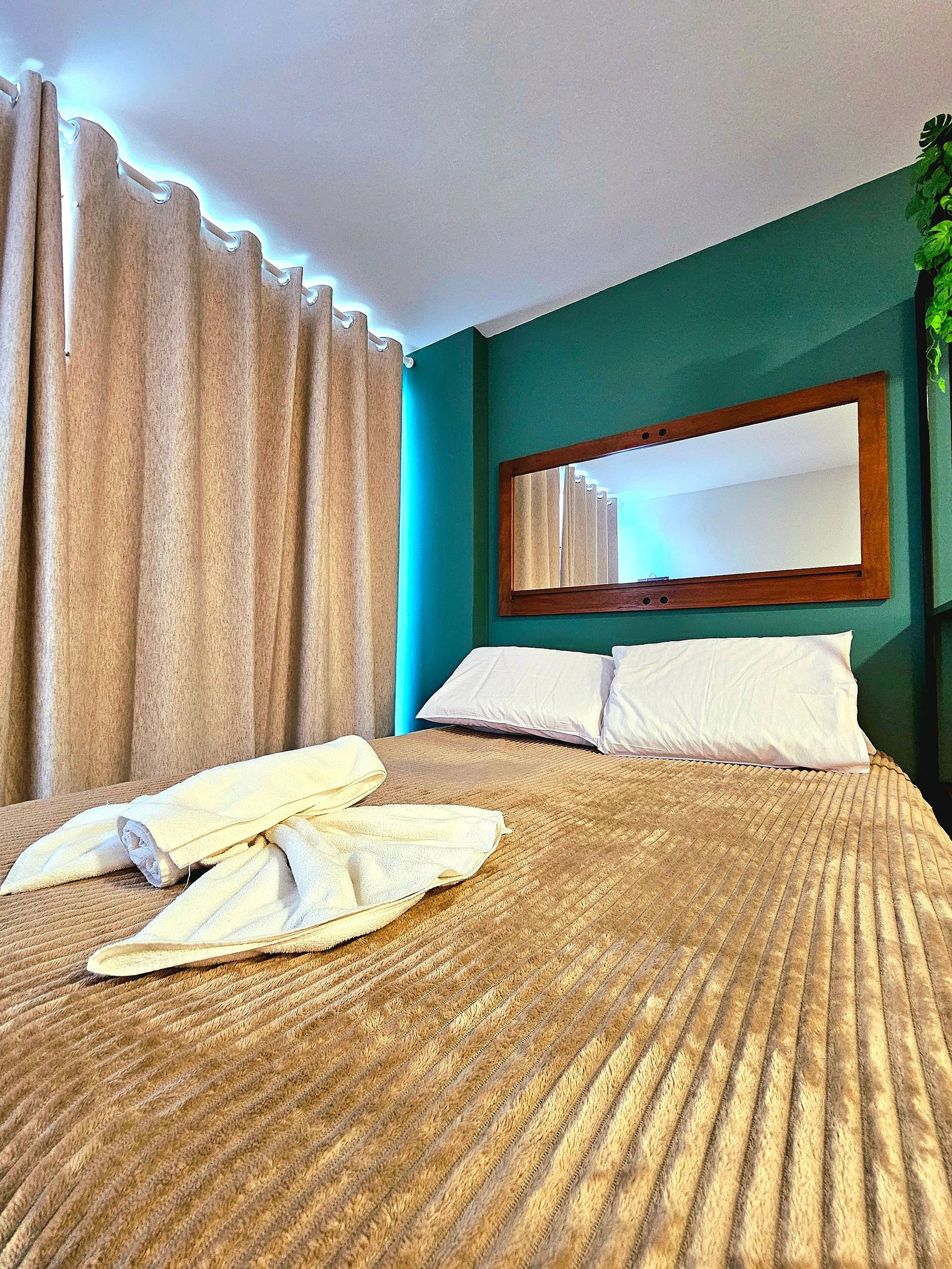 Nossa unidade possui 1 cama de casal e 1 sofá cama, a cozinha possui os principais eletrodomésticos (cooktop 2 bocas, airfryer, microondas, cafeteira, saduicheira, liquidificador, frigobar, conjunto de panelas, travessas, etc...), possuímos na nossa unidade uma área externa com a exclusiva piscina privativa ( não é aquecida ) que é perfeita para um fim de tarde! Temos ainda em nosso flat: cooler e 2 cadeiras de praia para maior comodidade dos nossos hóspedes.