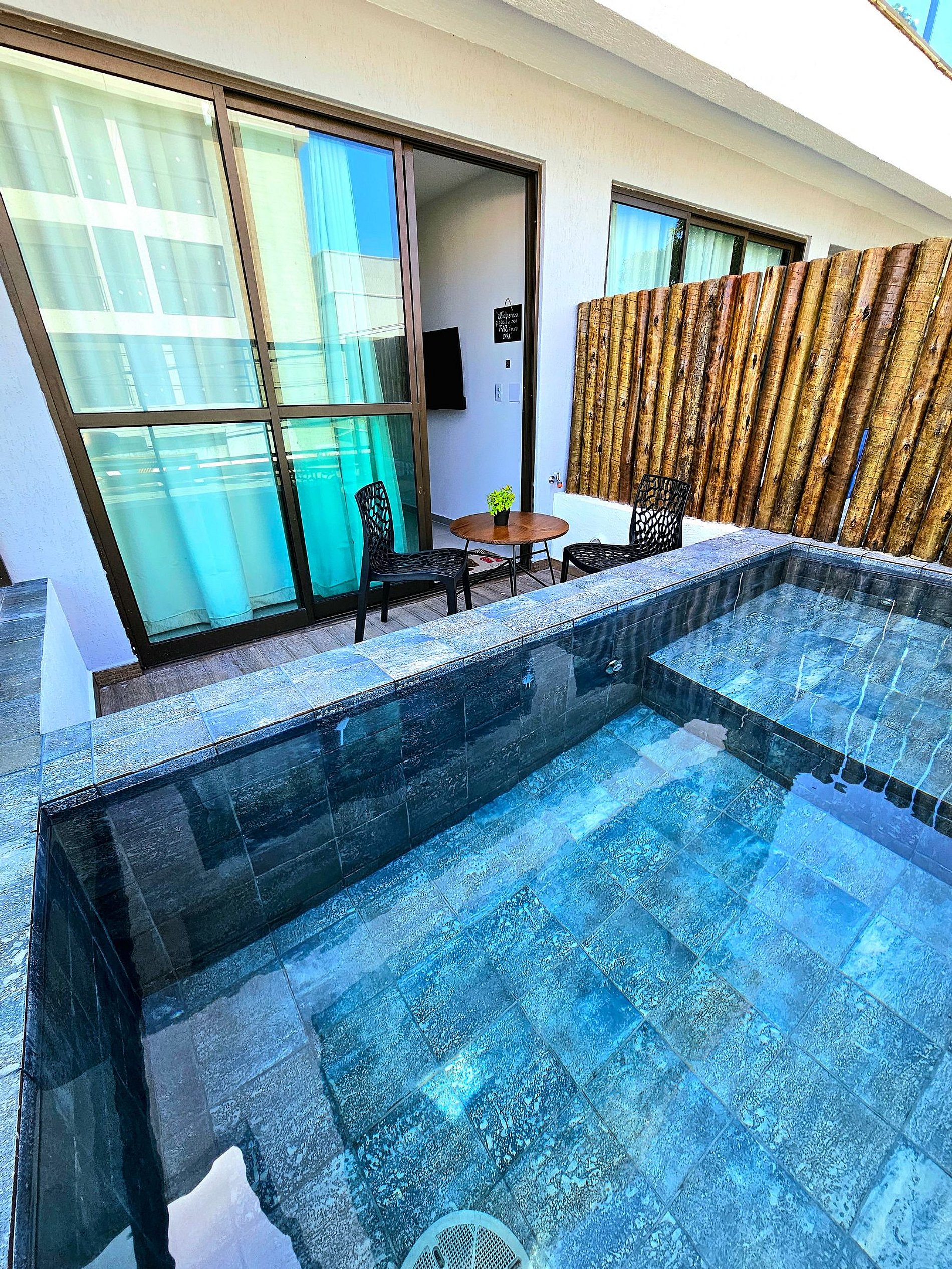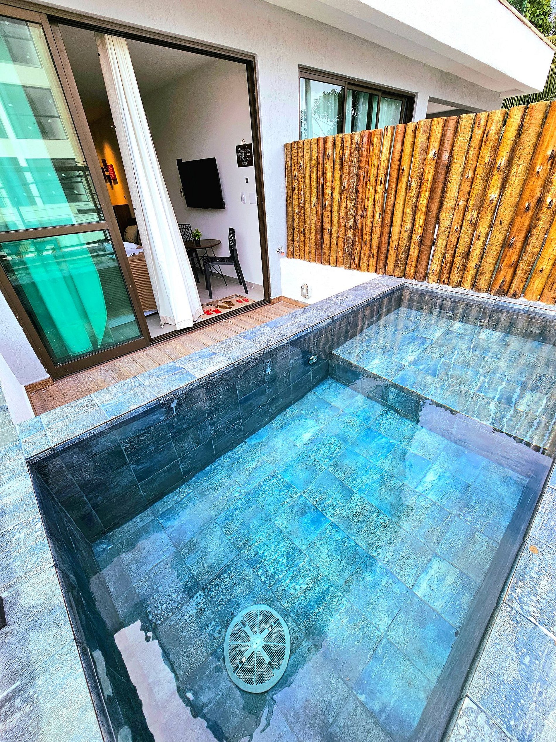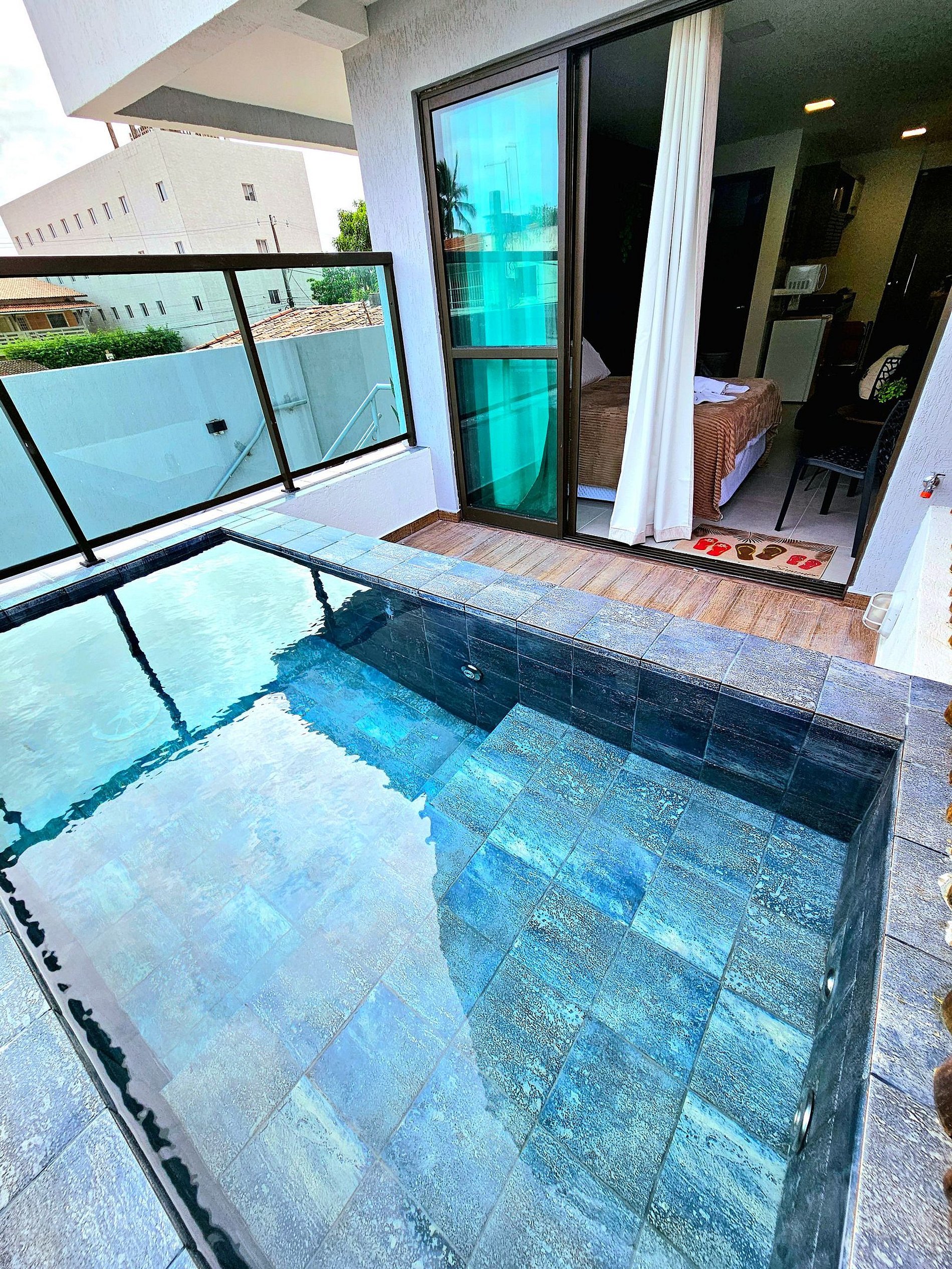 Lindo Flat Studio com Piscina privativa ( não é aquecida ) finamente decorado no centro de Porto de Galinhas. Cozinha completa e equipada, acomoda bem 4 pessoas, possui ar-condicionado, projeto de mobilias e decoração diferenciados para proporcionar o máximo de conforto. Ideal para aproveitar Porto sem depender de carro!