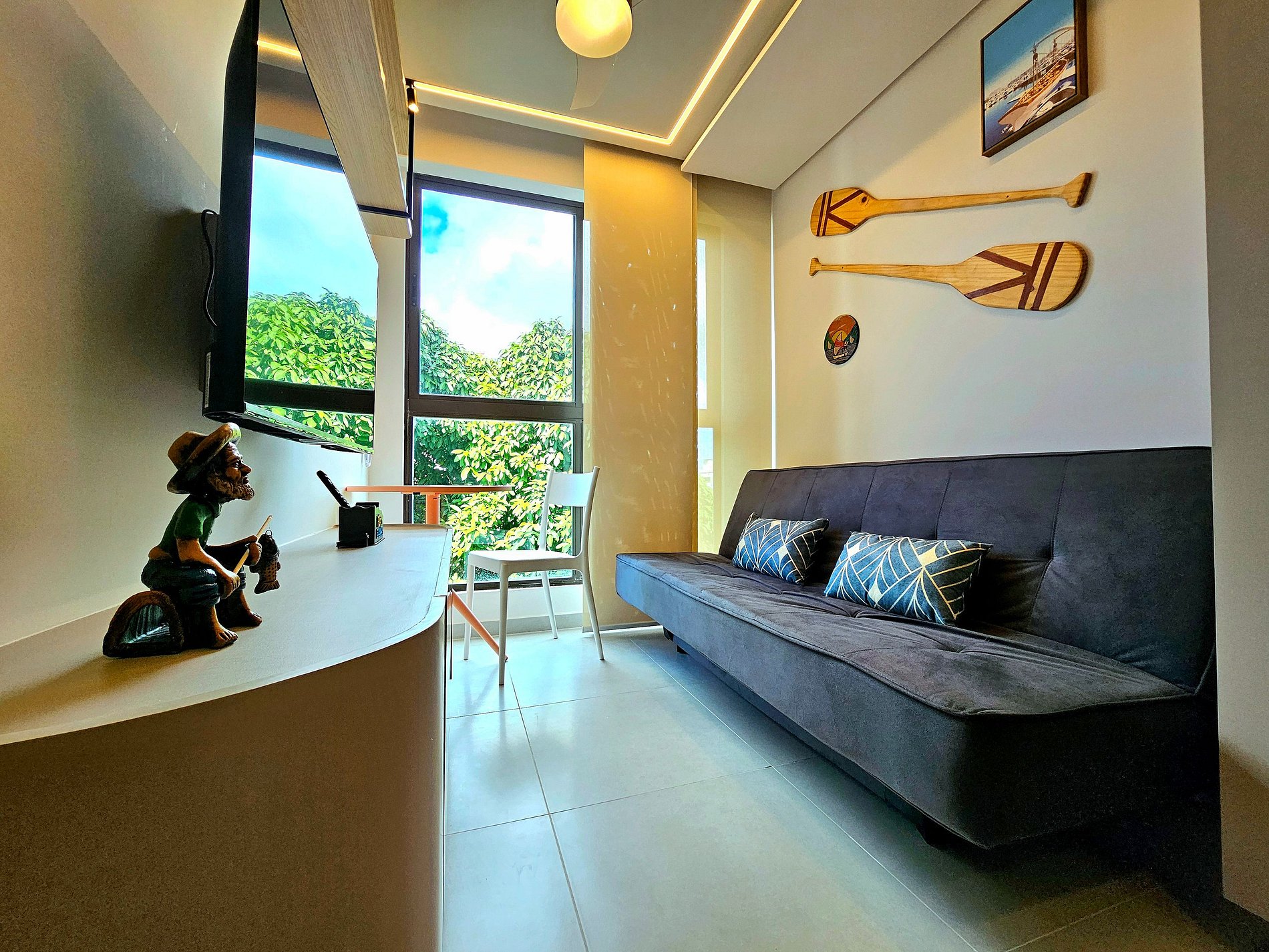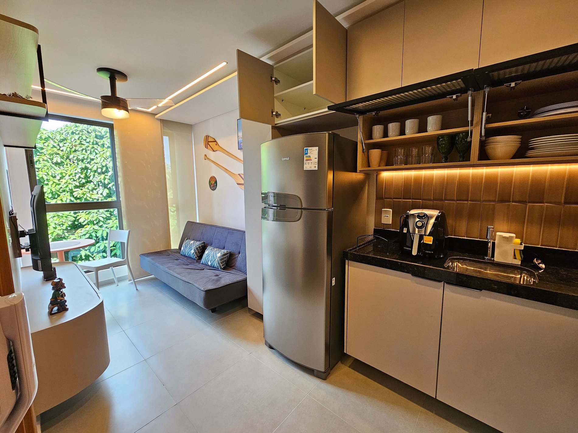 Lindo Apartamento de 1 quarto no centro de Porto, montado com muito bom gosto, projetado nos mínimos detalhes para proporcionar o máximo de conforto para nossos hóspedes. Cozinha completa e equipada, acomoda bem 4 pessoas, possui ar-condicionado no Quarto com capacidade de refrigear o apartamento inteiro (se usar a porta aberta) e Ventilador. Ideal para aproveitar Porto sem depender de carro! apenas 3 minutos de caminhada da rua principal do centro de Porto de Galinhas.