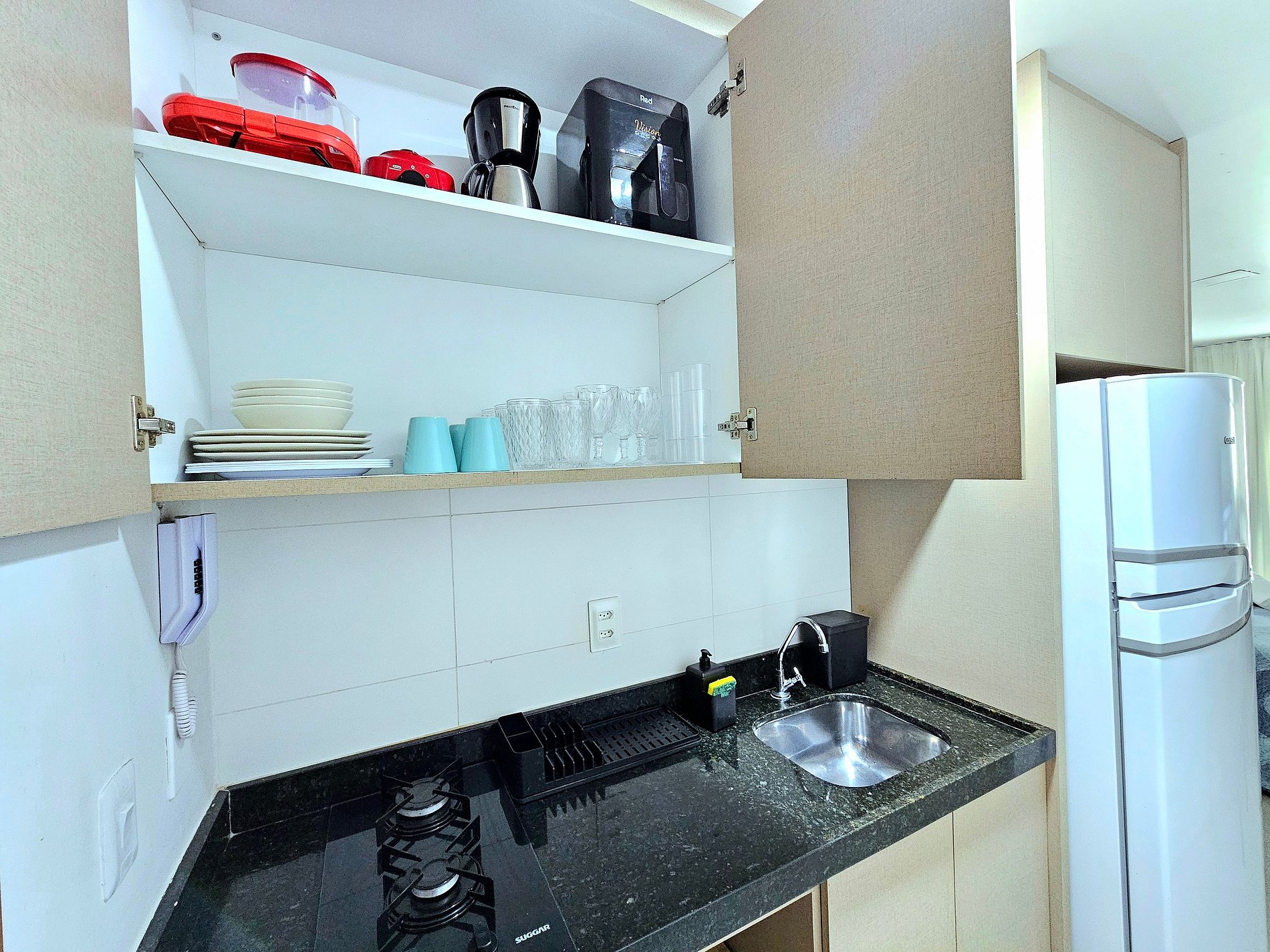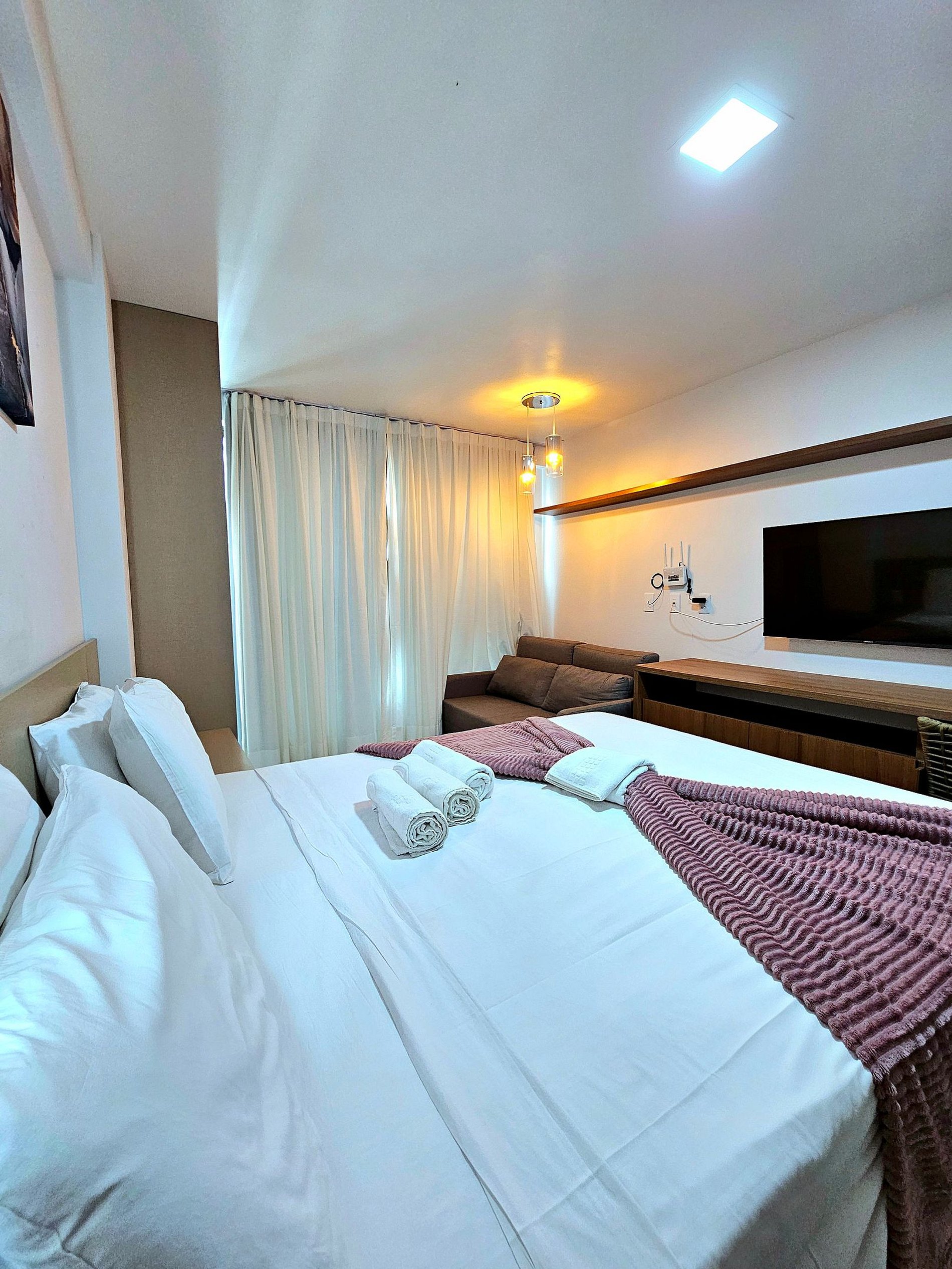 Excelente Flat Studio no centro de Porto de Galinhas, montado com muito carinho para proporcionar o máximo de conforto e uma experiência inesquecível. Nosso espaço foi cuidadosamente pensado para acomodar até 4 pessoas de maneira confortável, oferecendo tudo o que você precisa para aproveitar a estadia da melhor forma possível. Estrutura do Flat: O apartamento conta com todos os principais eletrodomésticos, como geladeira, cooktop, micro-ondas, liquidificador, sanduicheira, airfryer e cafeteira, para garantir praticidade e conveniência durante sua estadia. A cozinha completa e equipada permite que você prepare refeições como se estivesse em casa, seja para um café da manhã rápido ou um jantar em família. A cama confortável e o sofá-cama de qualidade são ideais para descansar após um dia cheio de atividades. A iluminação moderna foi cuidadosamente planejada para criar um ambiente acolhedor e relaxante, enquanto a TV grande na sala de estar garante entretenimento de qualidade, permitindo que você desfrute de seus filmes e séries favoritos com toda a comodidade.