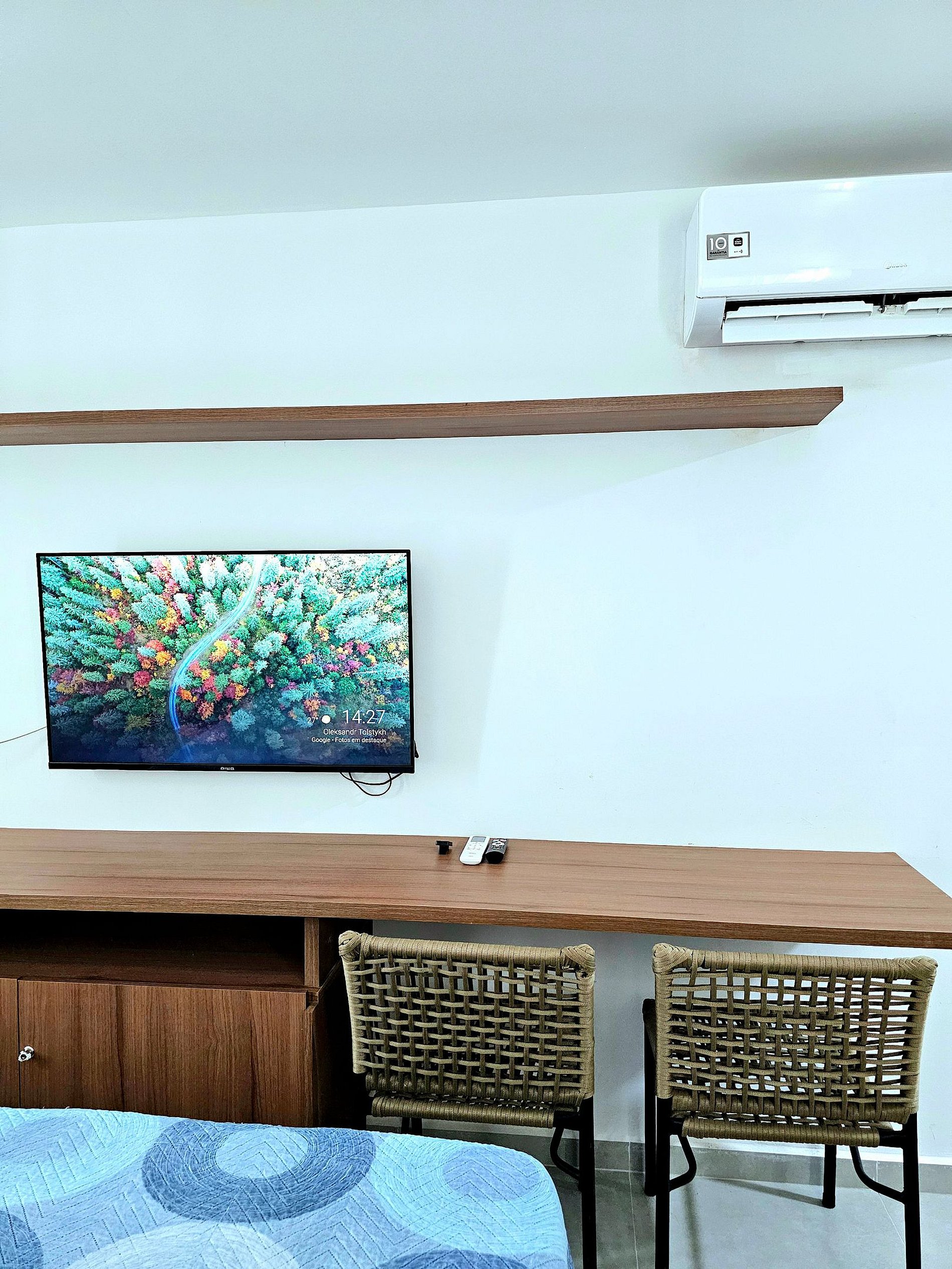 Excelente Flat Studio no centro de Porto de Galinhas, montado com muito carinho para proporcionar o máximo de conforto e uma experiência inesquecível. Nosso espaço foi cuidadosamente pensado para acomodar até 4 pessoas de maneira confortável, oferecendo tudo o que você precisa para aproveitar a estadia da melhor forma possível. Estrutura do Flat: O apartamento conta com todos os principais eletrodomésticos, como geladeira, cooktop, micro-ondas, liquidificador, sanduicheira, airfryer e cafeteira, para garantir praticidade e conveniência durante sua estadia. A cozinha completa e equipada permite que você prepare refeições como se estivesse em casa, seja para um café da manhã rápido ou um jantar em família. A cama confortável e o sofá-cama de qualidade são ideais para descansar após um dia cheio de atividades. A iluminação moderna foi cuidadosamente planejada para criar um ambiente acolhedor e relaxante, enquanto a TV grande na sala de estar garante entretenimento de qualidade, permitindo que você desfrute de seus filmes e séries favoritos com toda a comodidade.