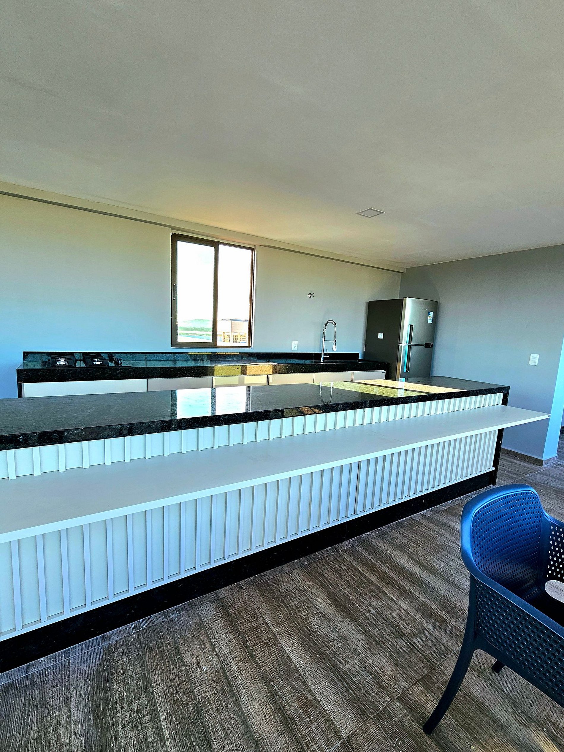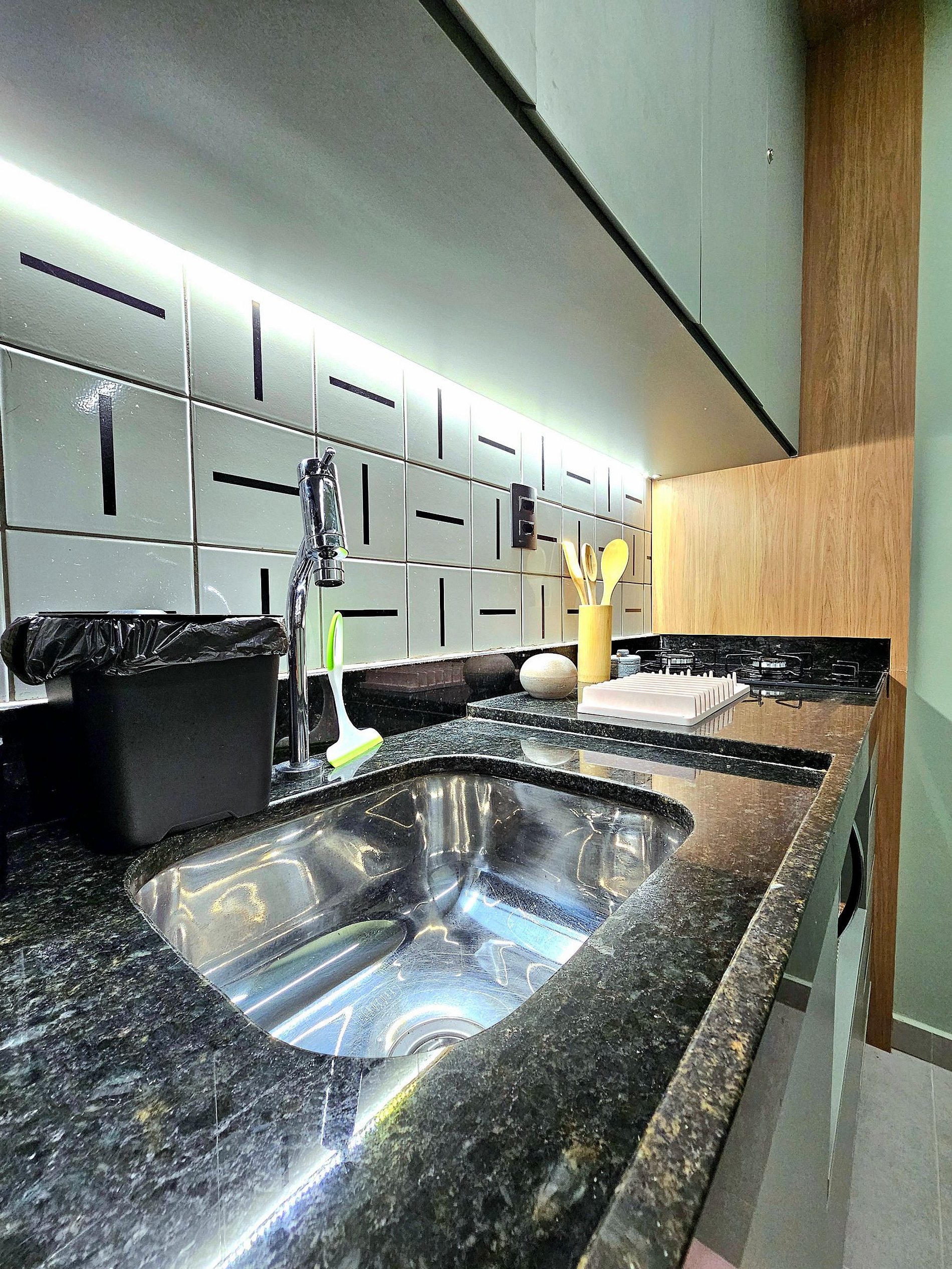 Tudo foi pensado para oferecer praticidade e bem-estar. A cozinha completa é equipada com os principais eletrodomésticos, incluindo geladeira, cooktop, liquidificador e cafeteira, além de utensílios de cozinha essenciais. Este ambiente foi planejado para que você possa preparar suas refeições de forma prática e conveniente, aproveitando o máximo de sua estadia sem abrir mão de conforto.