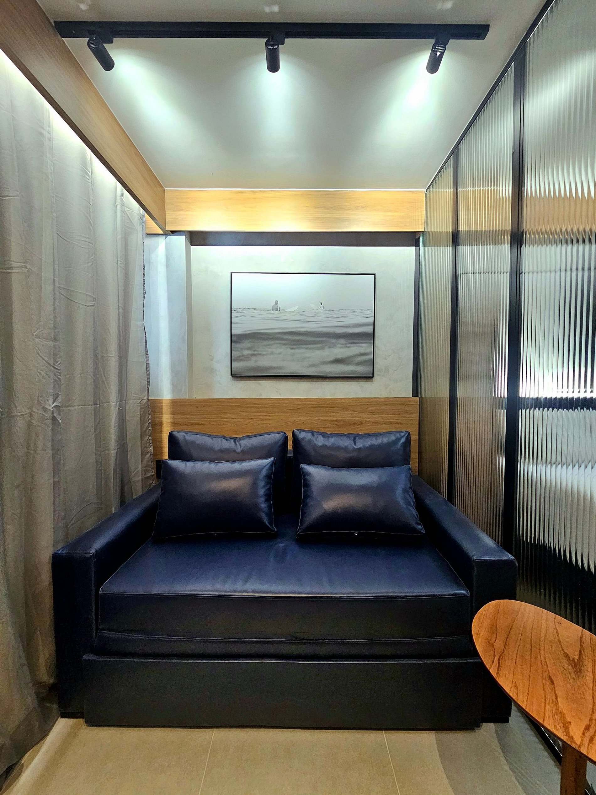 Os detalhes únicos, como os móveis de alto padrão com LED, fazem deste espaço uma escolha sofisticada e diferenciada para sua hospedagem. O studio acomoda até 4 pessoas confortavelmente. O quarto conta com uma cama de casal confortável, ideal para garantir uma boa noite de sono, temos também um sofá-cama de qualidade, proporcionando espaço extra para dois hóspedes.