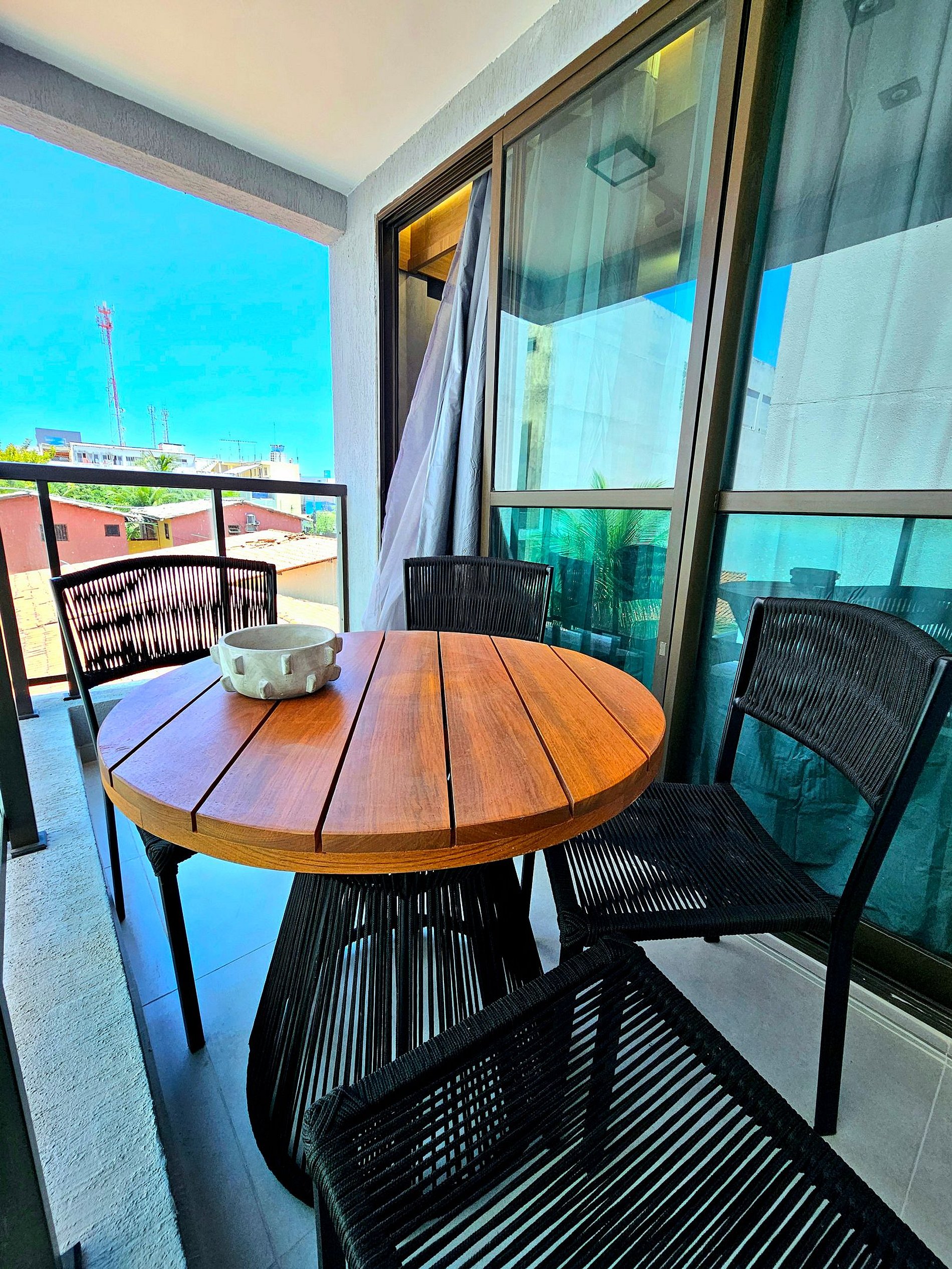 Este lindo Studio com Varanda foi projetado para proporcionar uma estadia com muito estilo e conforto. A decoração moderna, com iluminação aconchegante, cria um ambiente agradável, perfeito para relaxar após um dia explorando Porto de Galinhas.