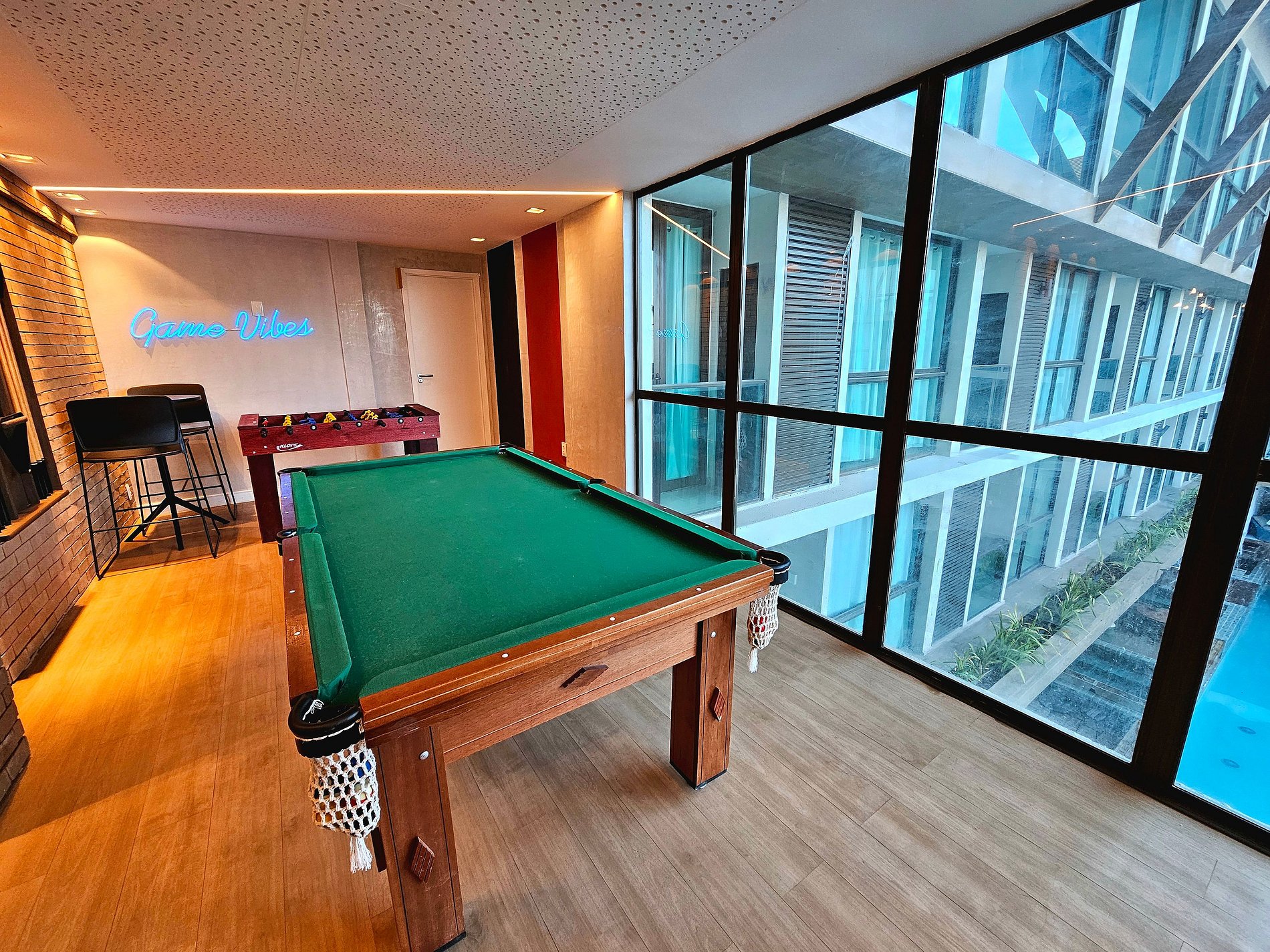 Estamos em um incrível condomínio com uma das estruturas mais bonitas da região, com decoração moderna, iluminação inovadora, academia completa, brinquedoteca, salão de jogos, Spa, e um excelente restaurante que fornece café da manhã.