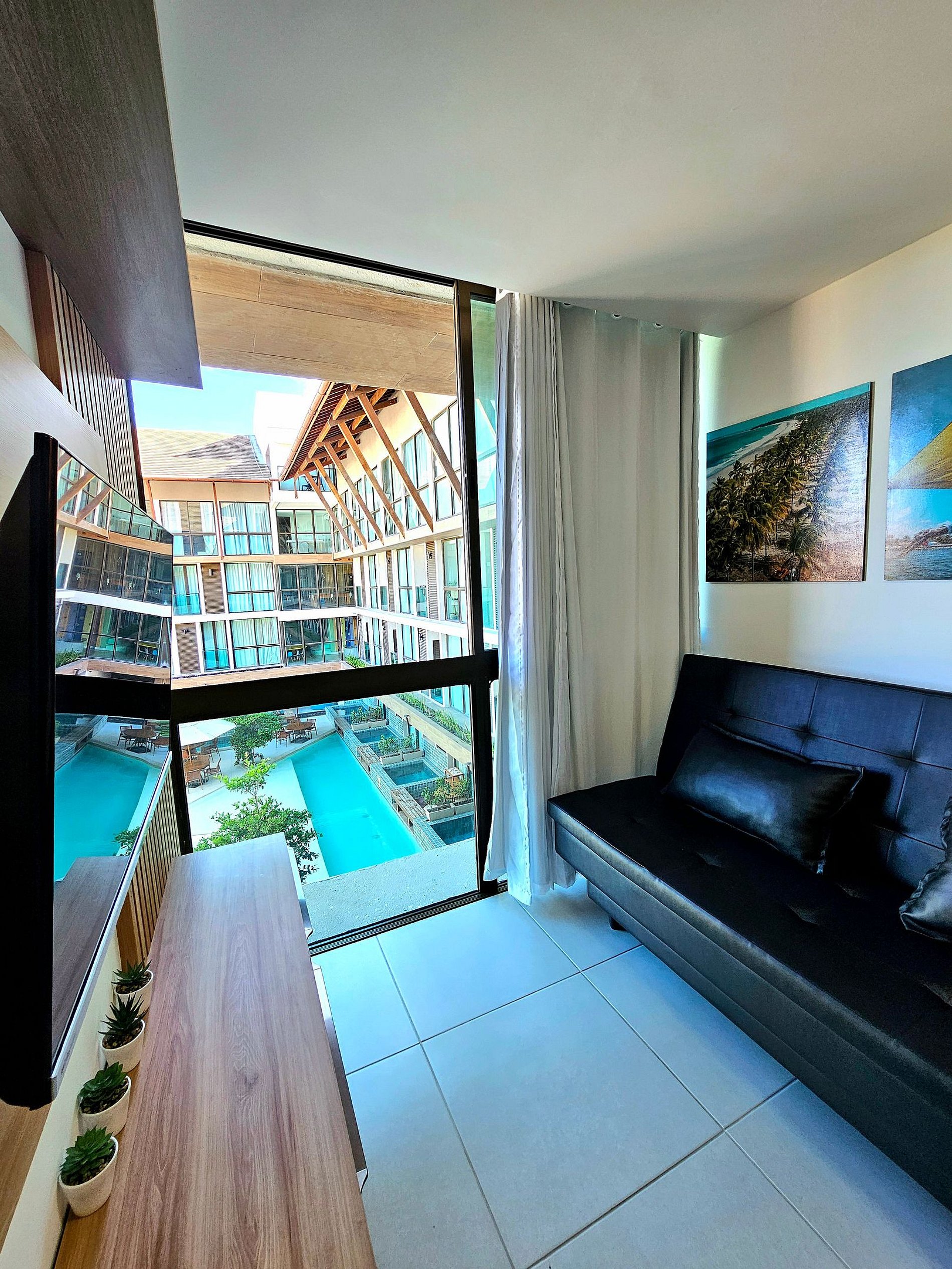 Venha se encantar no nosso lindo apartamento de 1 quarto no Sunny Hall, com uma incrível vista para as piscinas internas.