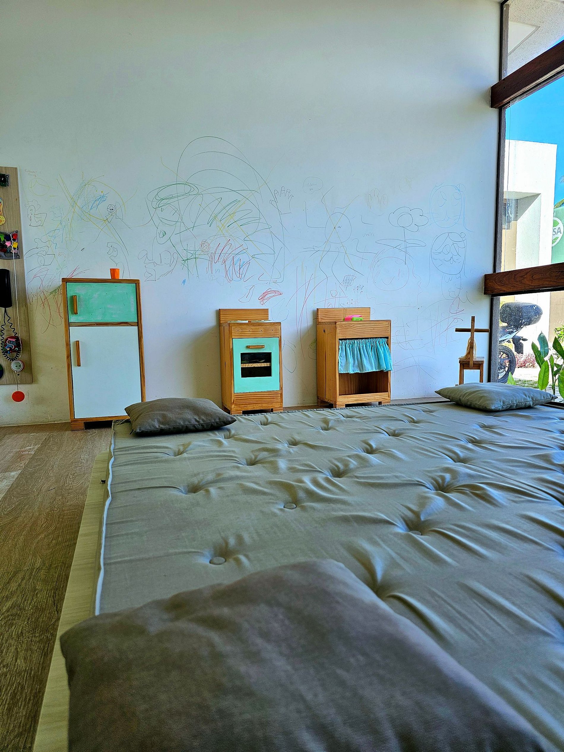 Temos uma cama bem confortável com auxiliar de solteiro e um sofá-cama de excelente qualidade.