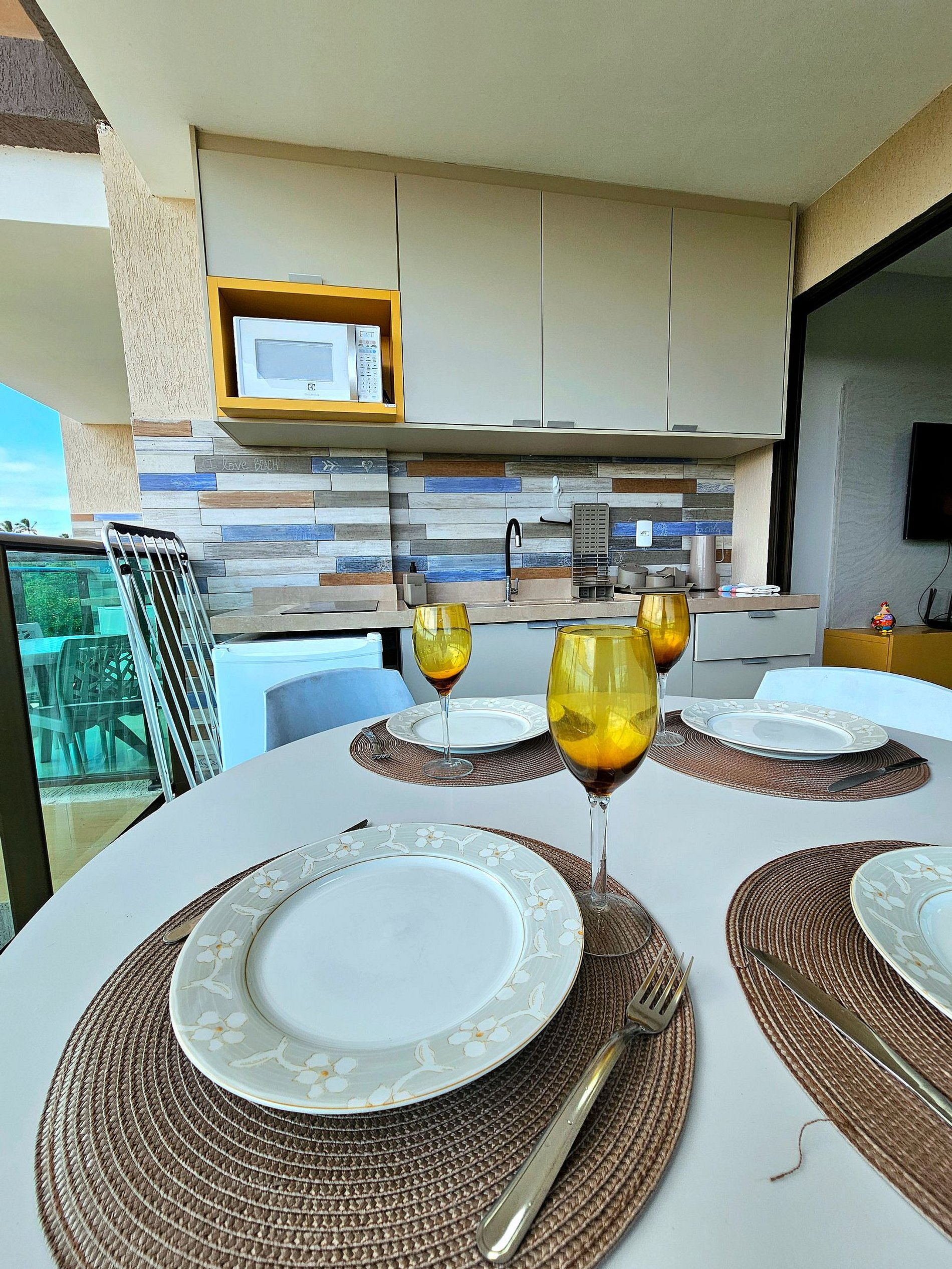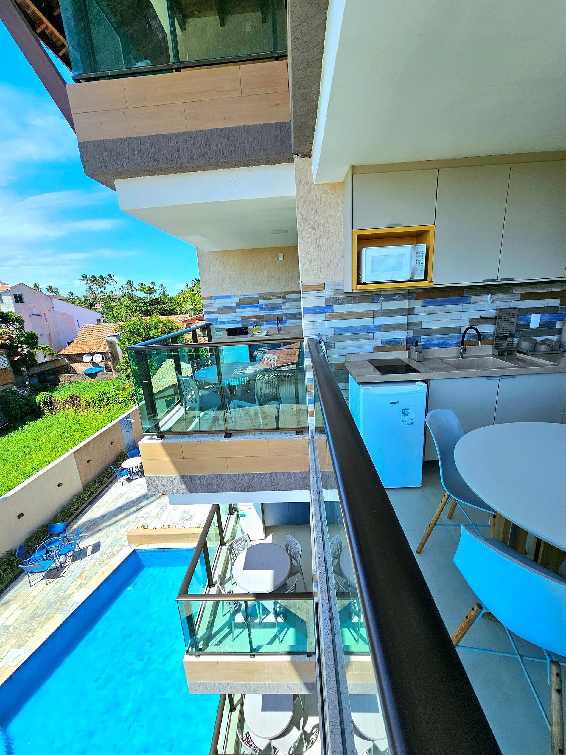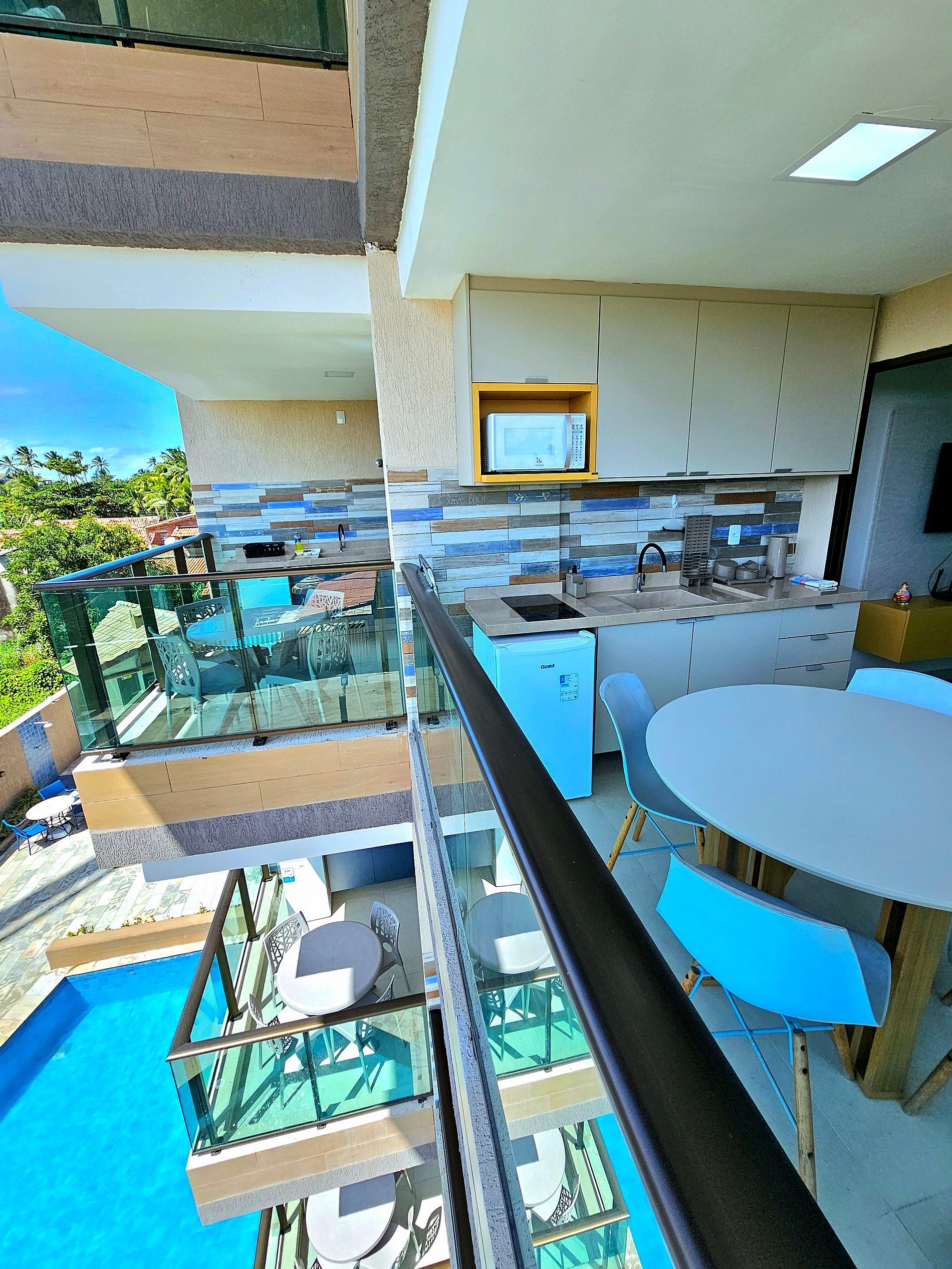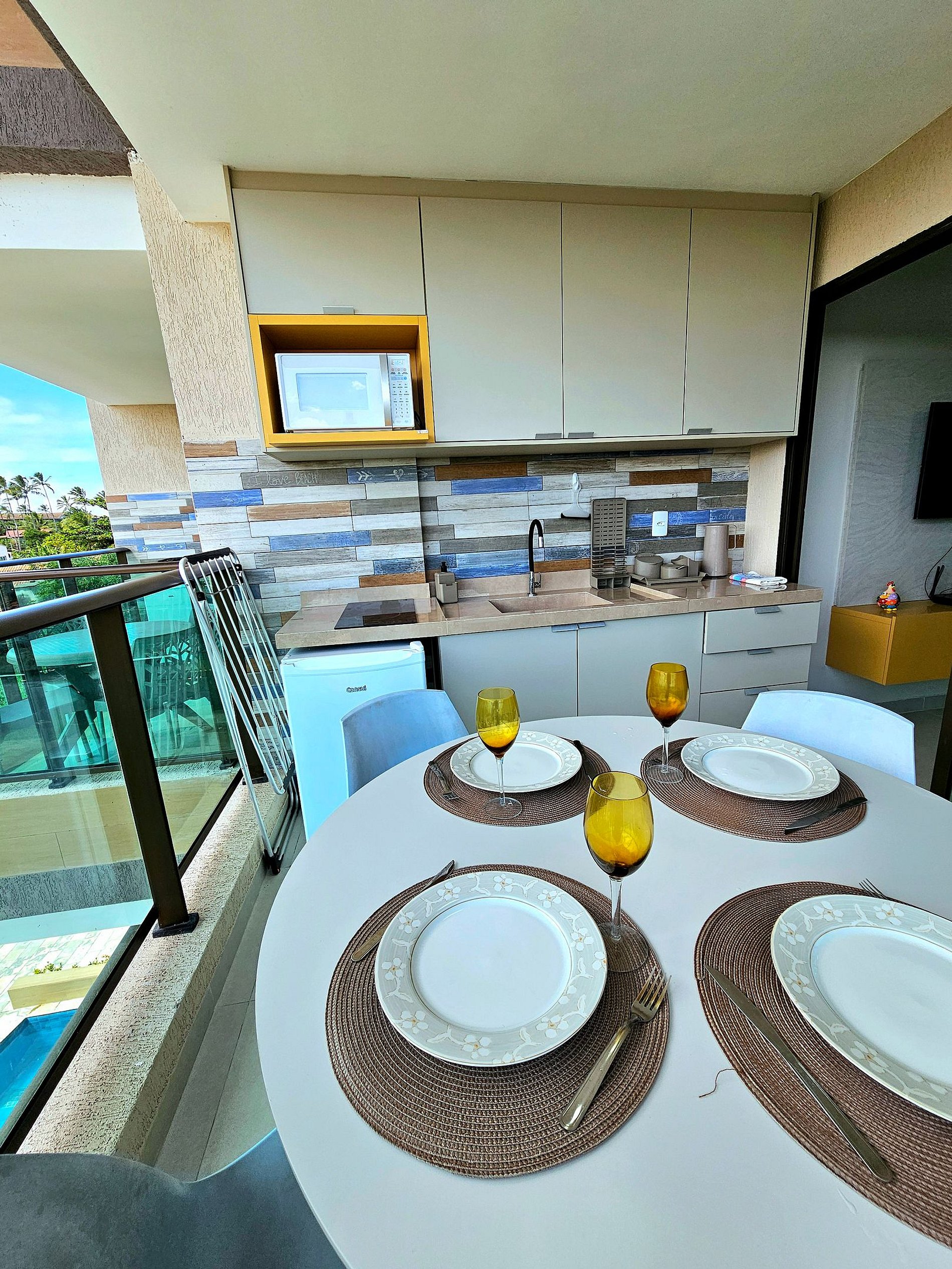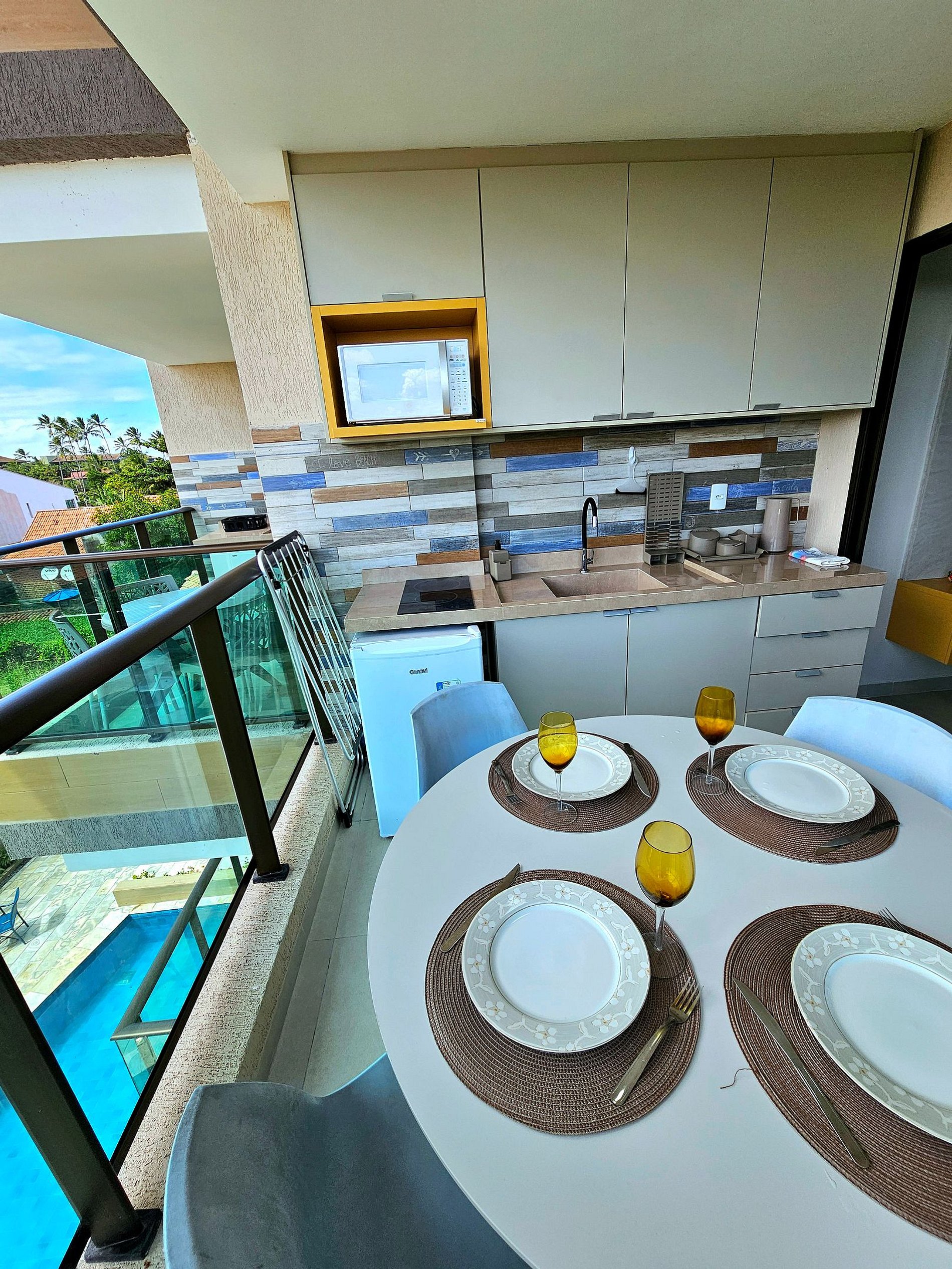Lindo Flat tipo Studio com varanda, temos o diferencial da nossa cozinha ser na varanda, transformando assim em uma Varanda Gourmet bem equipada, apartamento bem charmoso e confortável, com uma cama de casal e um sofá-cama de excelente qualidade, condomínio com funcionários atenciosos, conveniência e bem central entre as piscinas naturais de Muro alto e as piscinas naturais de Porto de Galinhas.