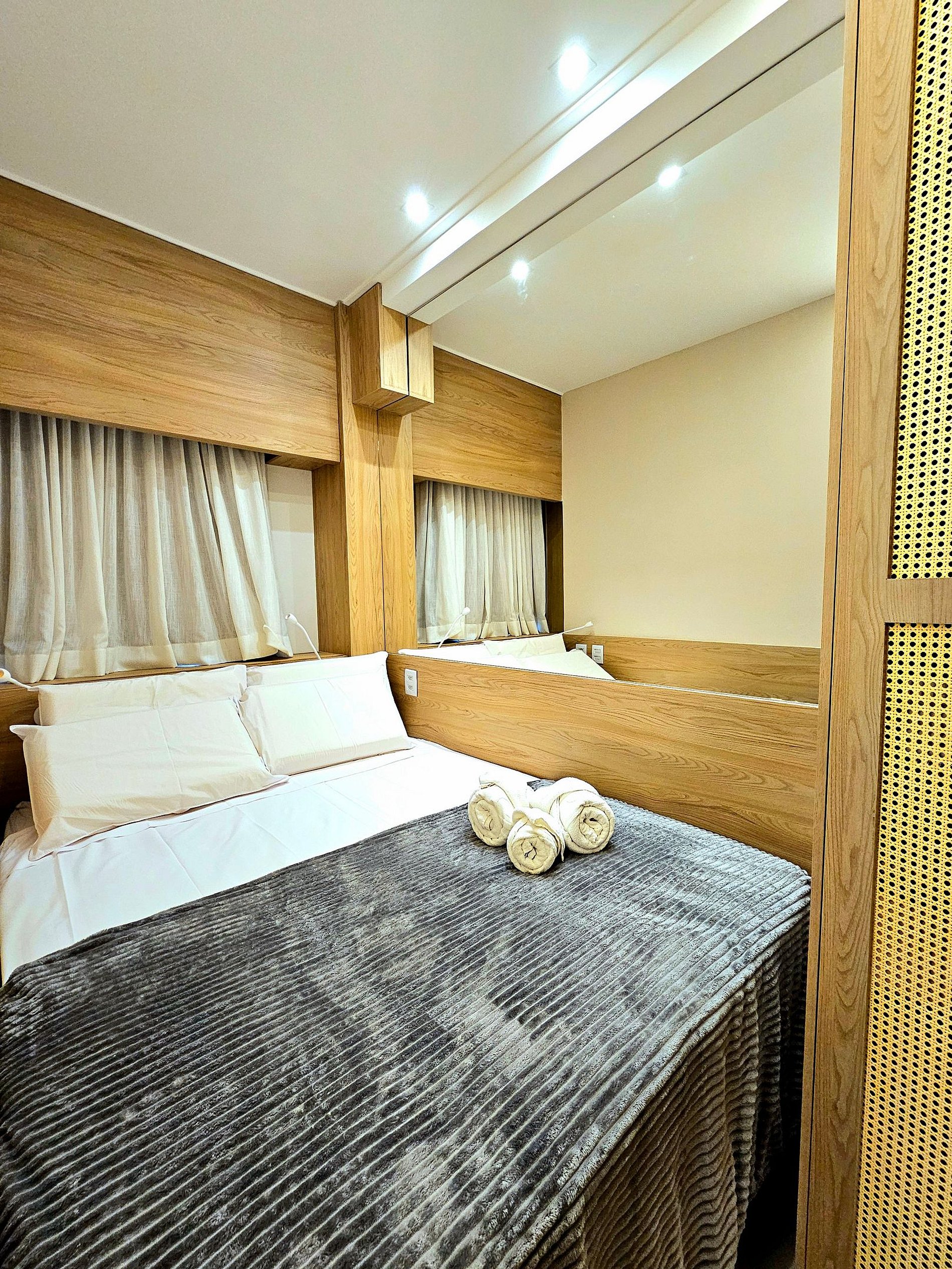 Nosso apartamento foi planejado nos mínimos detalhes para proporcionar conforto aos nossos hóspedes, projetado por arquiteta renomada, marcenaria e iluminação moderna, montado com um quarto compacto separado da sala para maior privacidade para 1 casal, acomoda bem 4 pessoas.