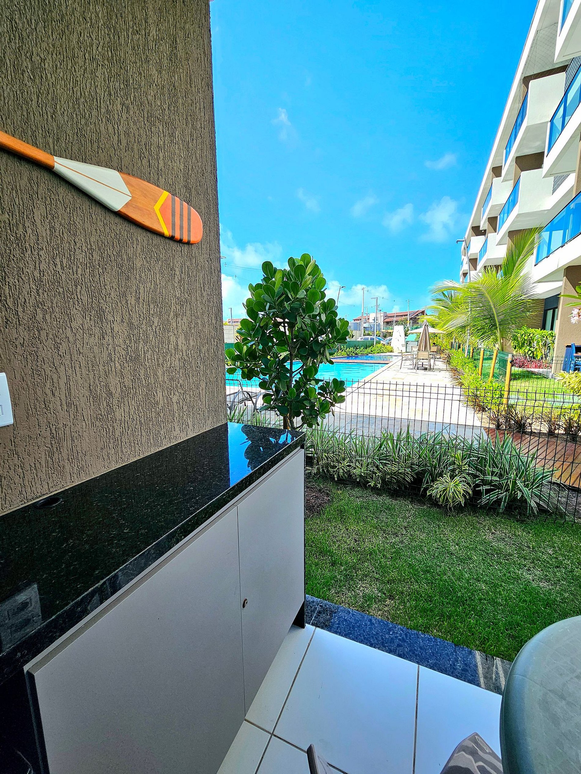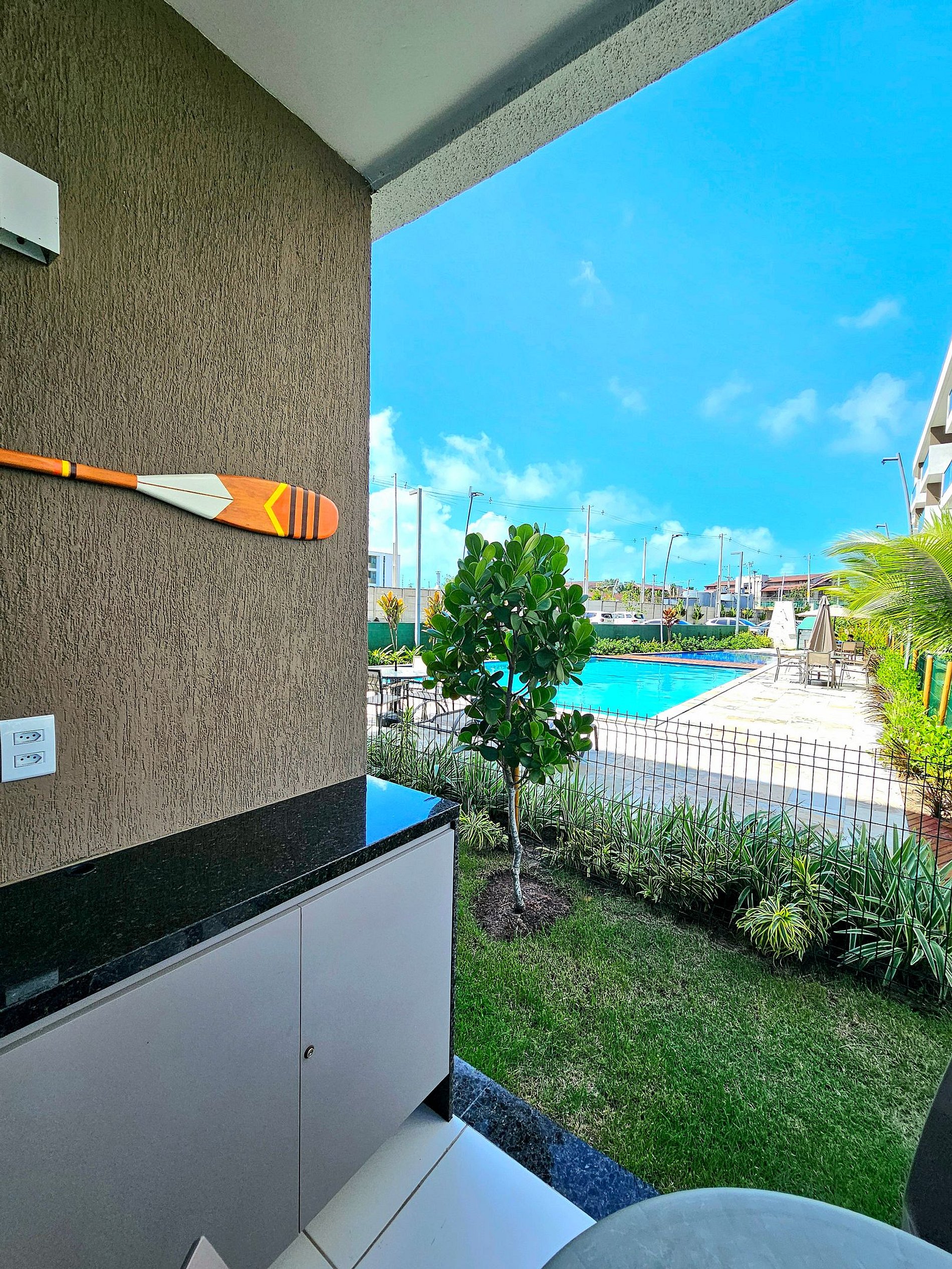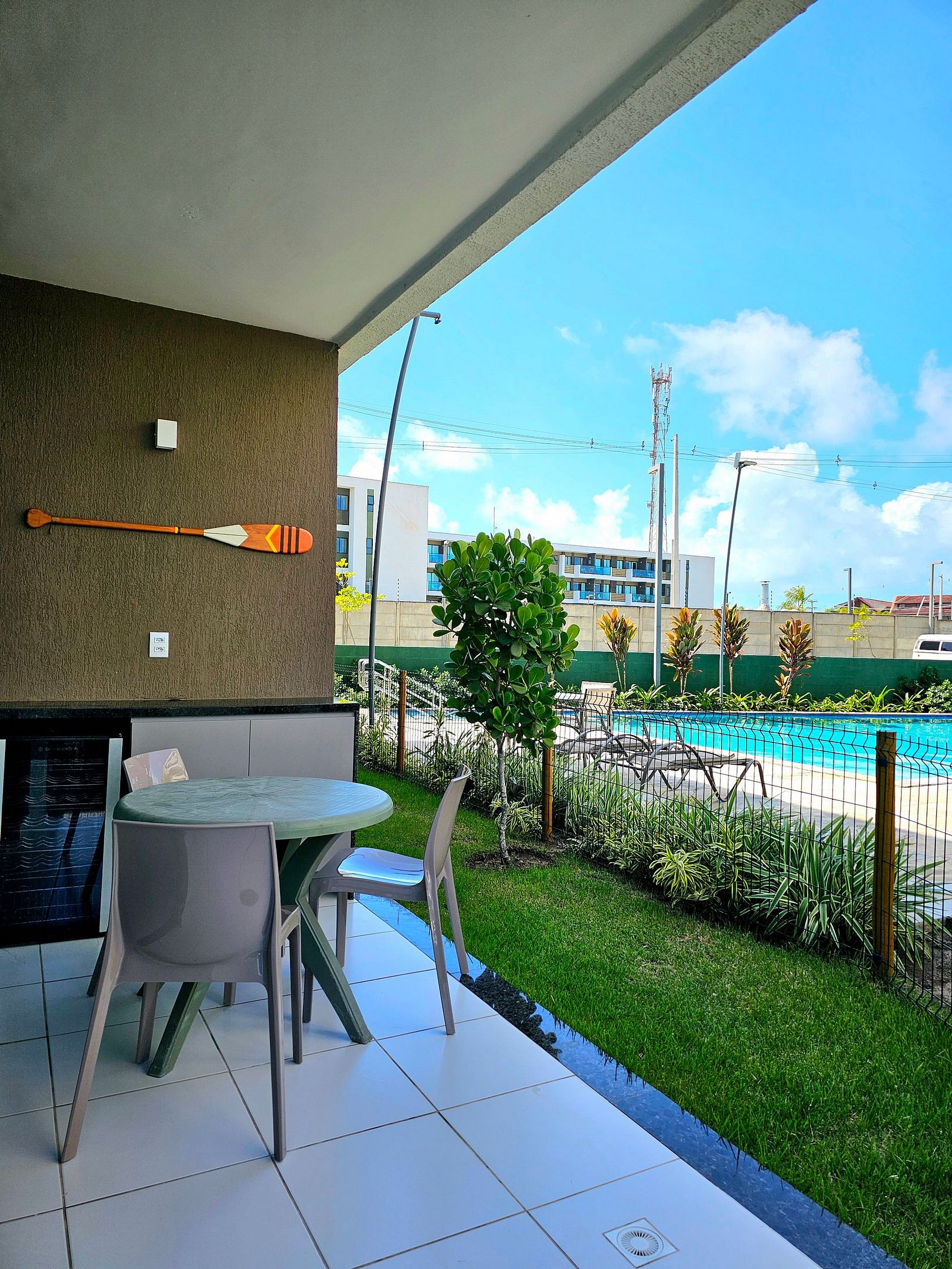 Nosso grande destaque é nossa área externa de frente com garden, de frente para uma das piscinas, perfeita para aproveitar um final de tarde de descanso ou uma noite de vinhos.