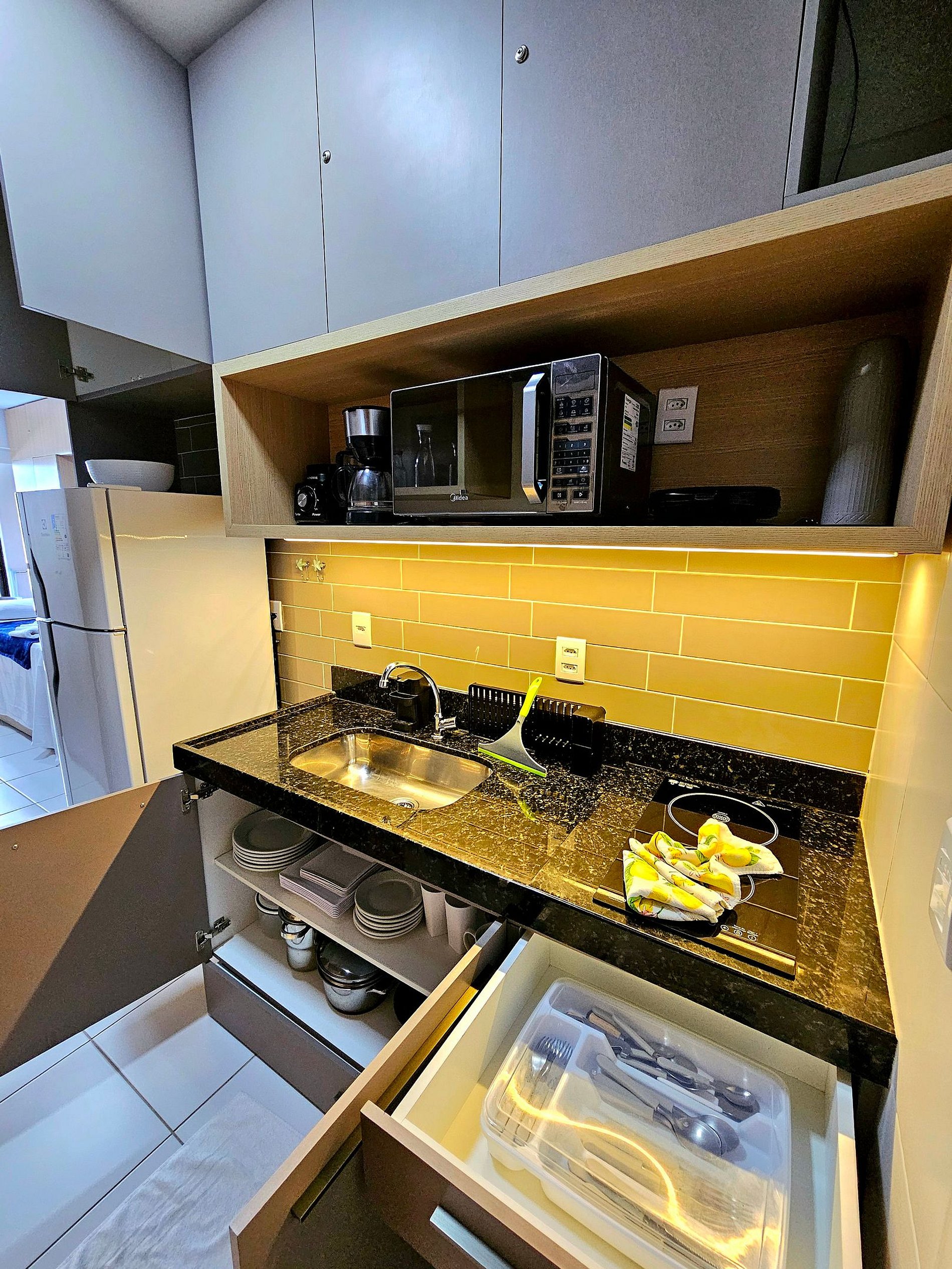 O espaço foi projetado para que você tenha tudo o que precisa ao seu alcance, garantindo uma estadia funcional e aconchegante.