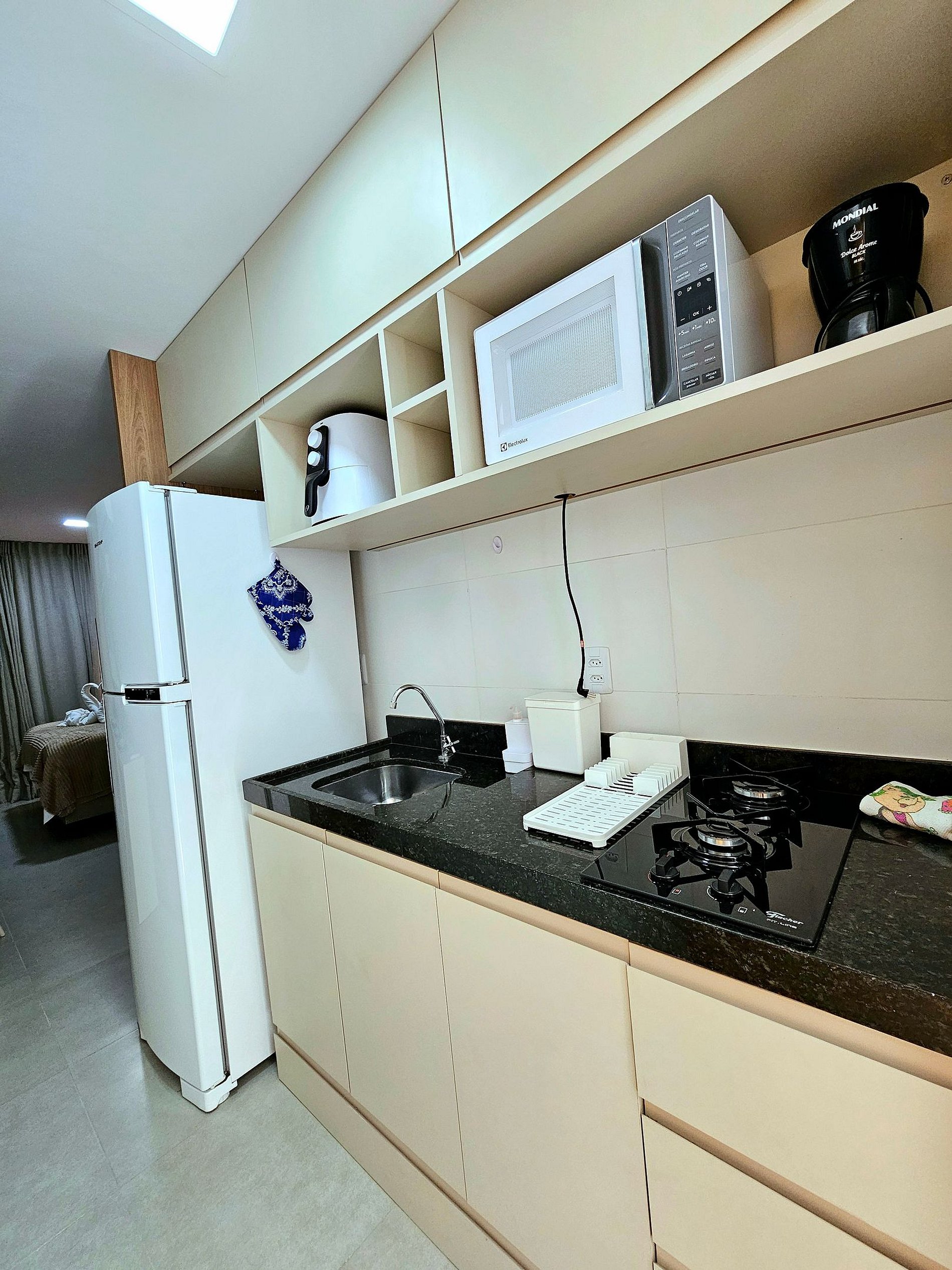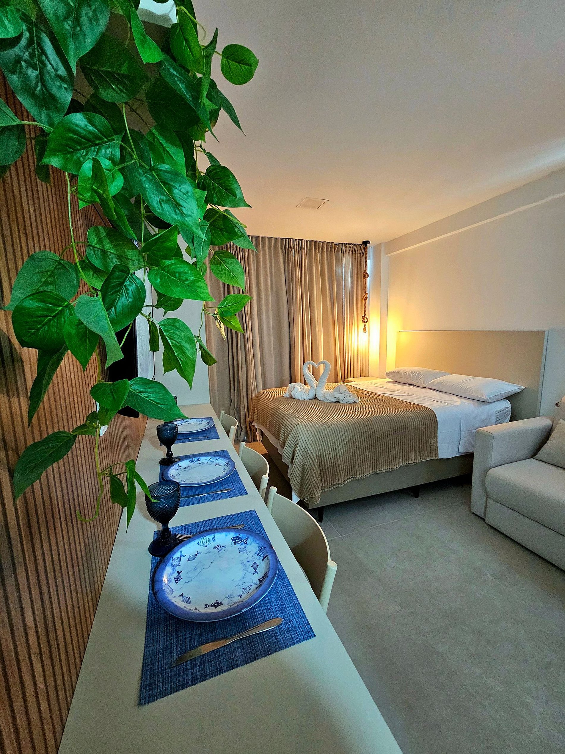 Studio Fino e bem decorado, com iluminação moderna, possui uma cama de casal confortável e um excelente sofá-cama para acomodar bem 4 hóspedes, cozinha completa e bem equipada com os principais eletrodomésticos (airfryer, sanduicheira, liquidificador, etc..), pela proximidade com a principal rua do centrinho de porto faz com que a nossa acomodação seja perfeita para os nossos hóspedes aproveitarem Porto de Galinhas sem depender de carro,