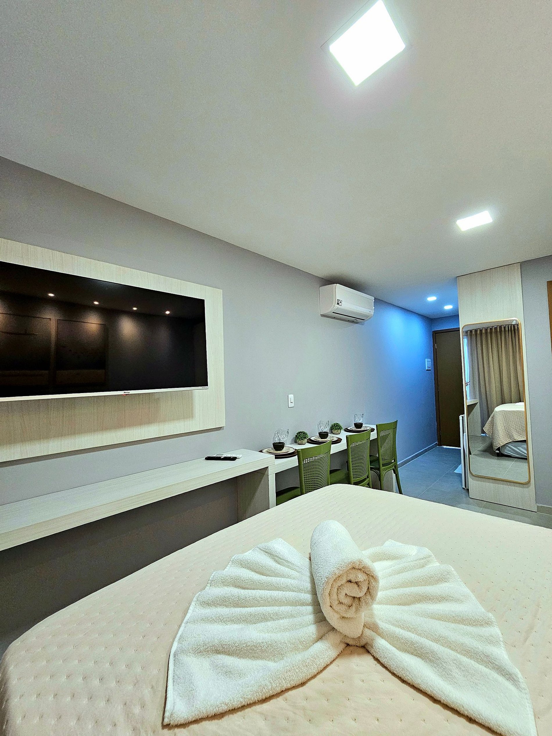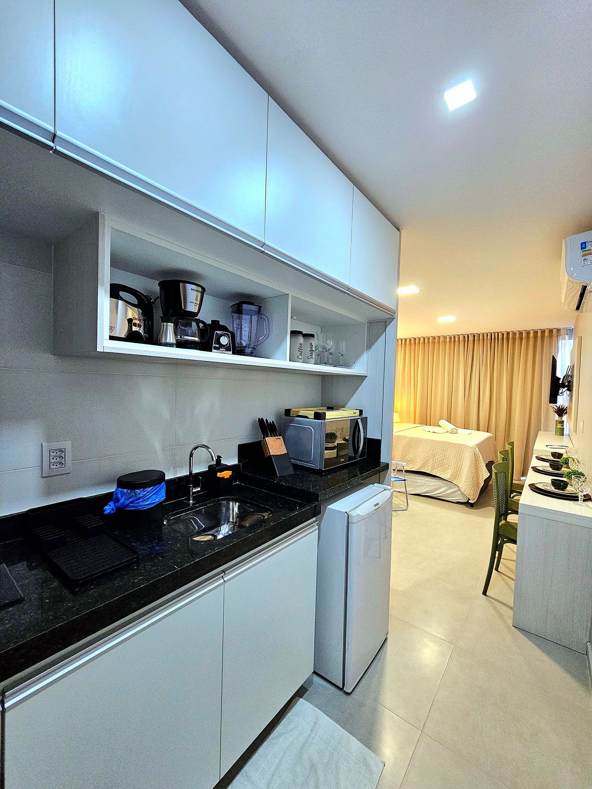 Excelente Flat Studio no centro de Porto de Galinhas, montado com muito carinho para proporcionar o máximo de conforto e uma experiência inesquecível. Nosso espaço foi cuidadosamente pensado para acomodar até 3 pessoas de maneira confortável, oferecendo tudo o que você precisa para aproveitar a estadia da melhor forma possível. Estrutura do Flat: O apartamento conta com todos os principais eletrodomésticos, como geladeira, cooktop, micro-ondas, liquidificador, sanduicheira, airfryer e cafeteira, para garantir praticidade e conveniência durante sua estadia. A cozinha completa e equipada permite que você prepare refeições como se estivesse em casa, seja para um café da manhã rápido ou um jantar em família. A cama confortável e a cama auxiliar de qualidade são ideais para descansar após um dia cheio de atividades. A iluminação moderna foi cuidadosamente planejada para criar um ambiente acolhedor e relaxante, enquanto a TV grande na sala de estar garante entretenimento de qualidade, permitindo que você desfrute de seus filmes e séries favoritos com toda a comodidade.