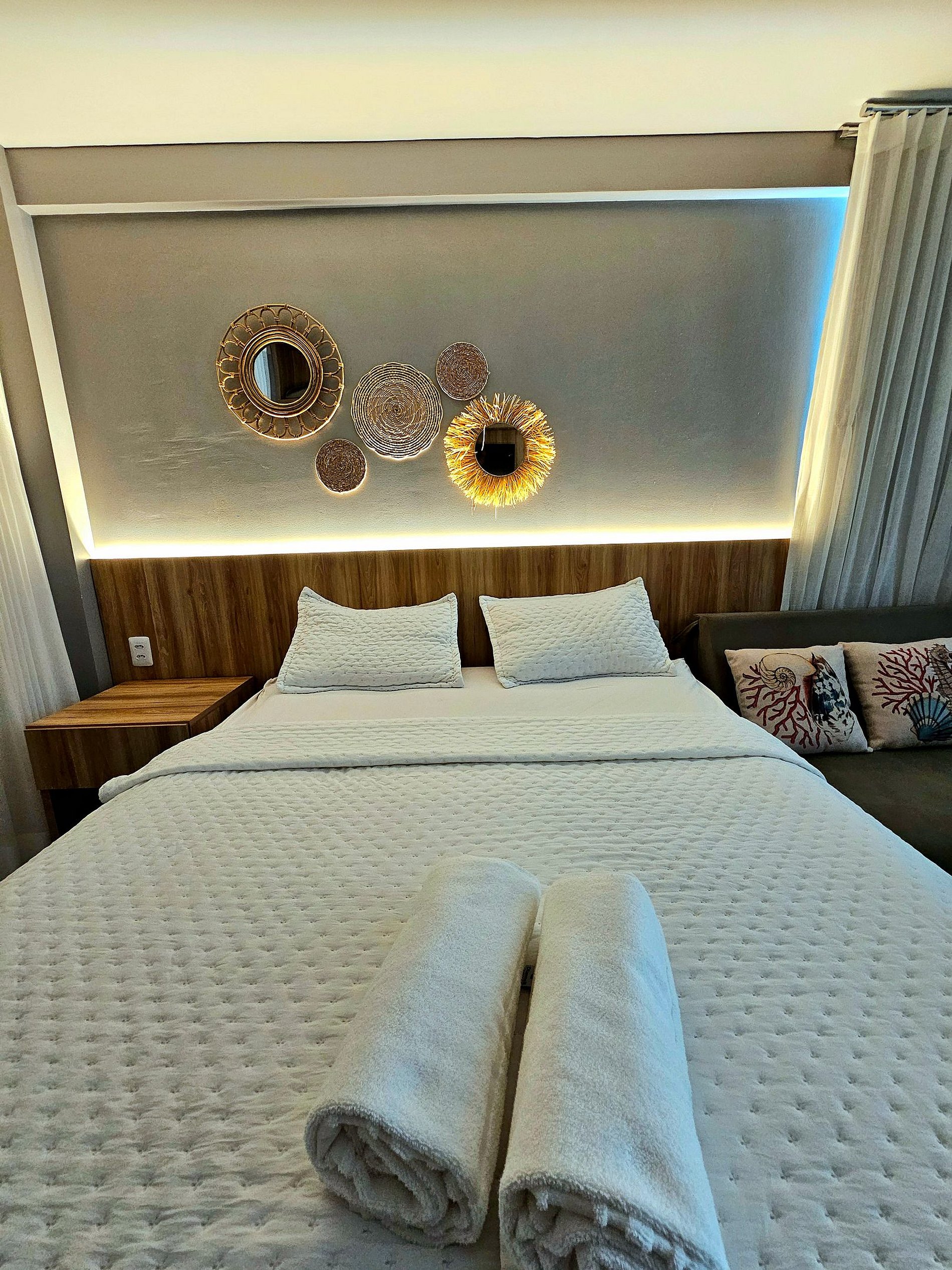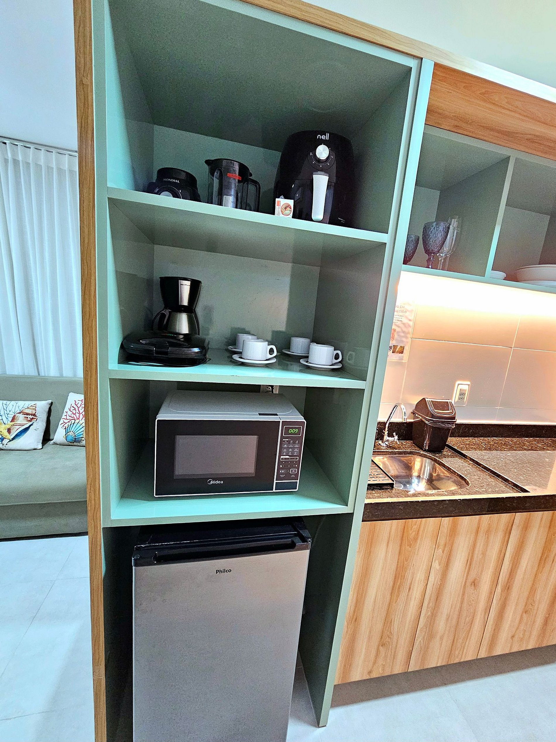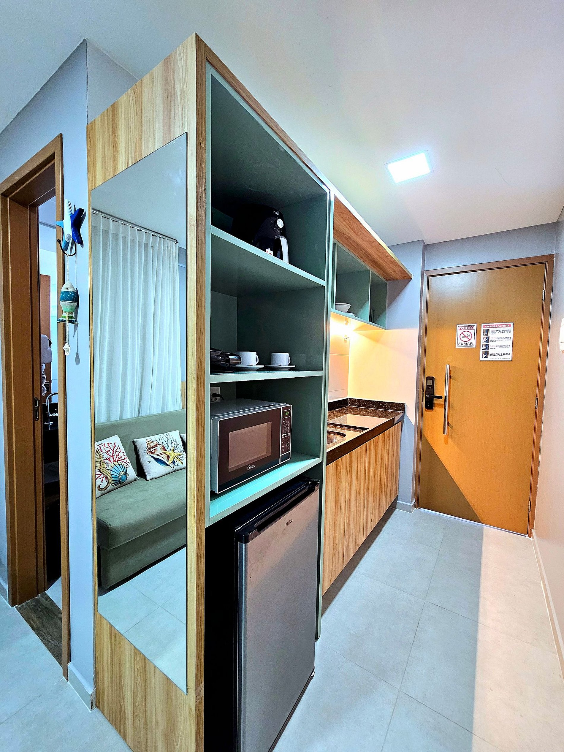 Studio muito agradável, montado com muito bom gosto para nossos hóspedes terem uma experiência incrível conosco, com iluminação moderna, possui uma cama de casal confortável e um excelente sofá-cama para acomodar bem 4 hóspedes no total, cozinha completa e bem equipada com os principais eletrodomésticos (airfryer, sanduicheira, liquidificador, etc..), pela proximidade com a principal rua do centrinho de porto faz com que a nossa acomodação seja perfeita para os nossos hóspedes aproveitarem Porto de Galinhas sem depender de carro,