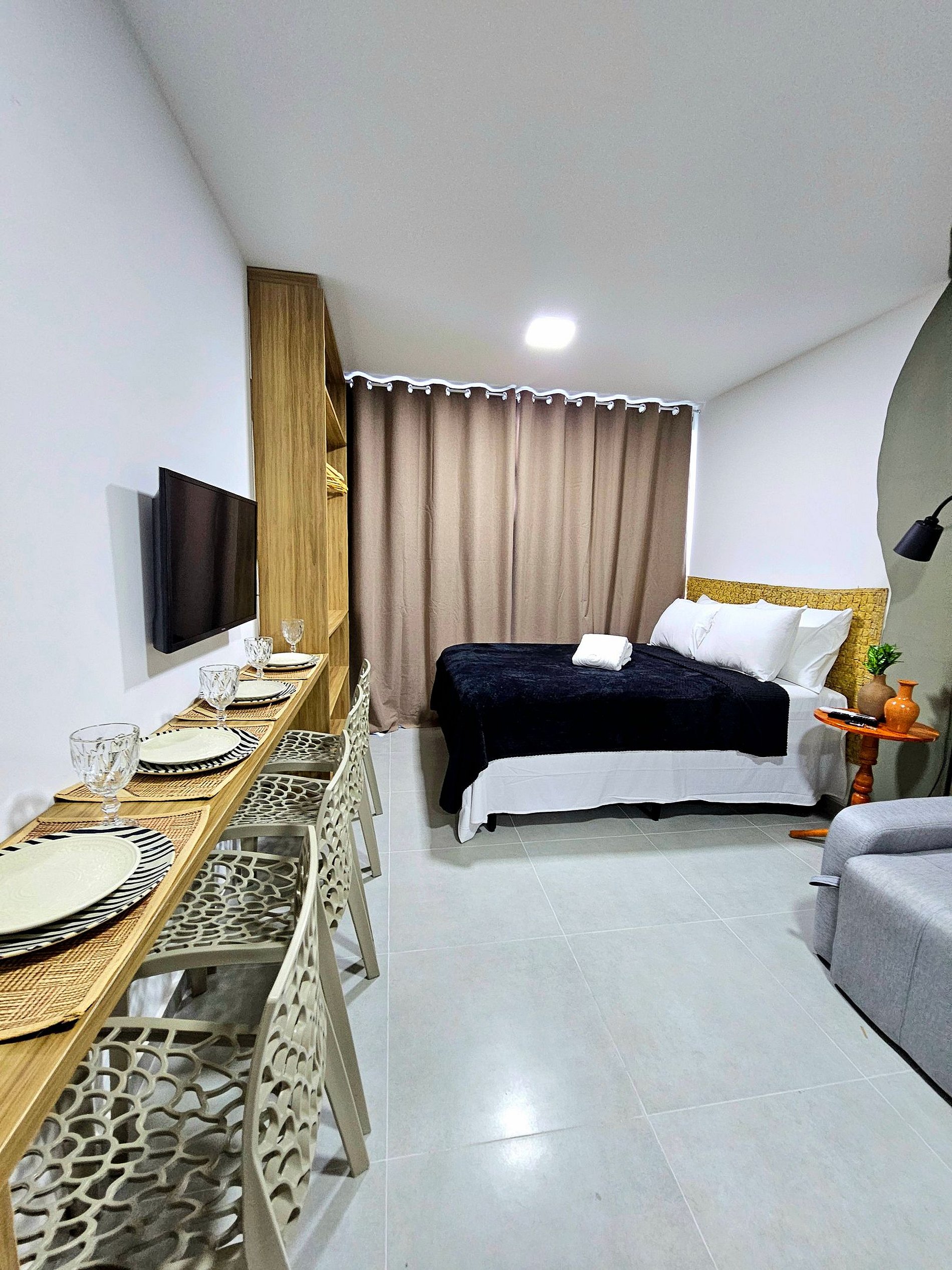 * Acomoda até 3 Pessoas: O apartamento comporta até 3 pessoas com total conforto. Ele dispõe de uma cama de casal espaçosa e confortável, e um sofá-cama de excelente qualidade, perfeito para um hóspede adicional. O ambiente é ideal para famílias ou pequenos grupos de amigos que desejam compartilhar momentos juntos, sem abrir mão de conforto.