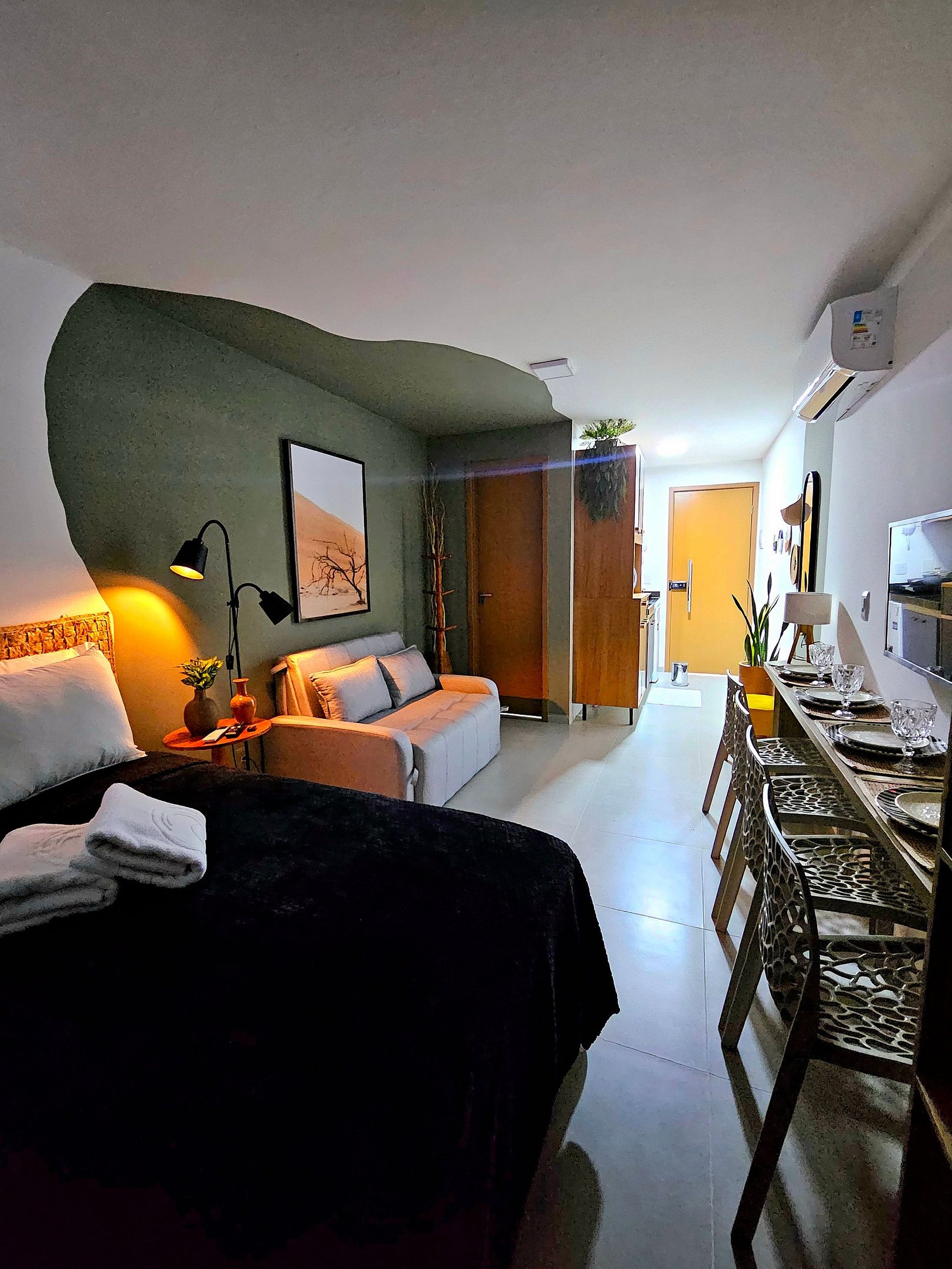 * Iluminação Moderna e Aconchegante: A iluminação do apartamento foi projetada para criar um clima aconchegante e moderno ao mesmo tempo. Com tons suaves, o espaço se torna acolhedor e agradável para relaxar após um dia de praia ou passeio. A combinação de decoração moderna e iluminação eficiente proporciona uma sensação de bem-estar em todo o apartamento.