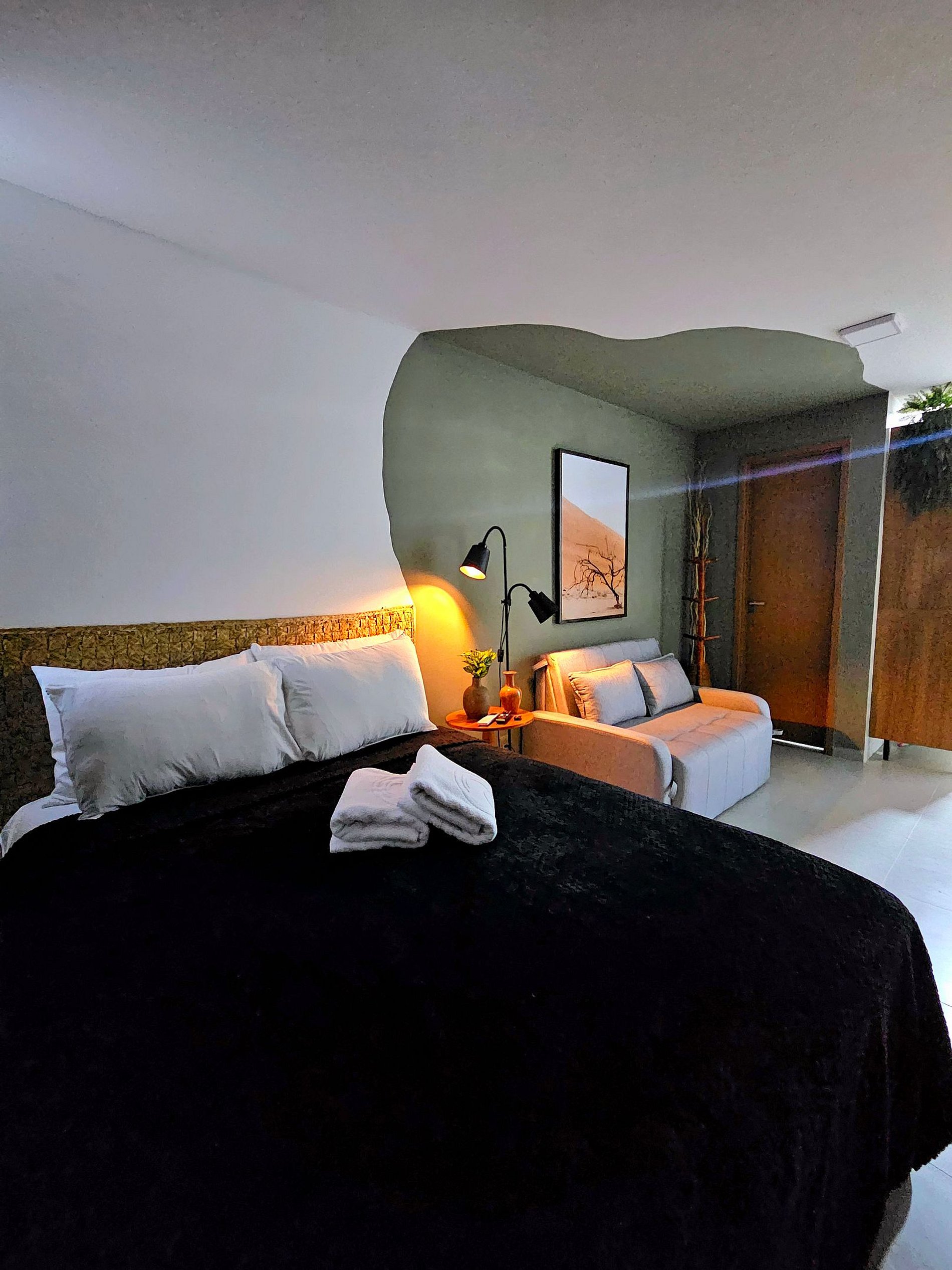 * Acomoda até 3 Pessoas: O apartamento comporta até 3 pessoas com total conforto. Ele dispõe de uma cama de casal espaçosa e confortável, e um sofá-cama de excelente qualidade, perfeito para um hóspede adicional. O ambiente é ideal para famílias ou pequenos grupos de amigos que desejam compartilhar momentos juntos, sem abrir mão de conforto.