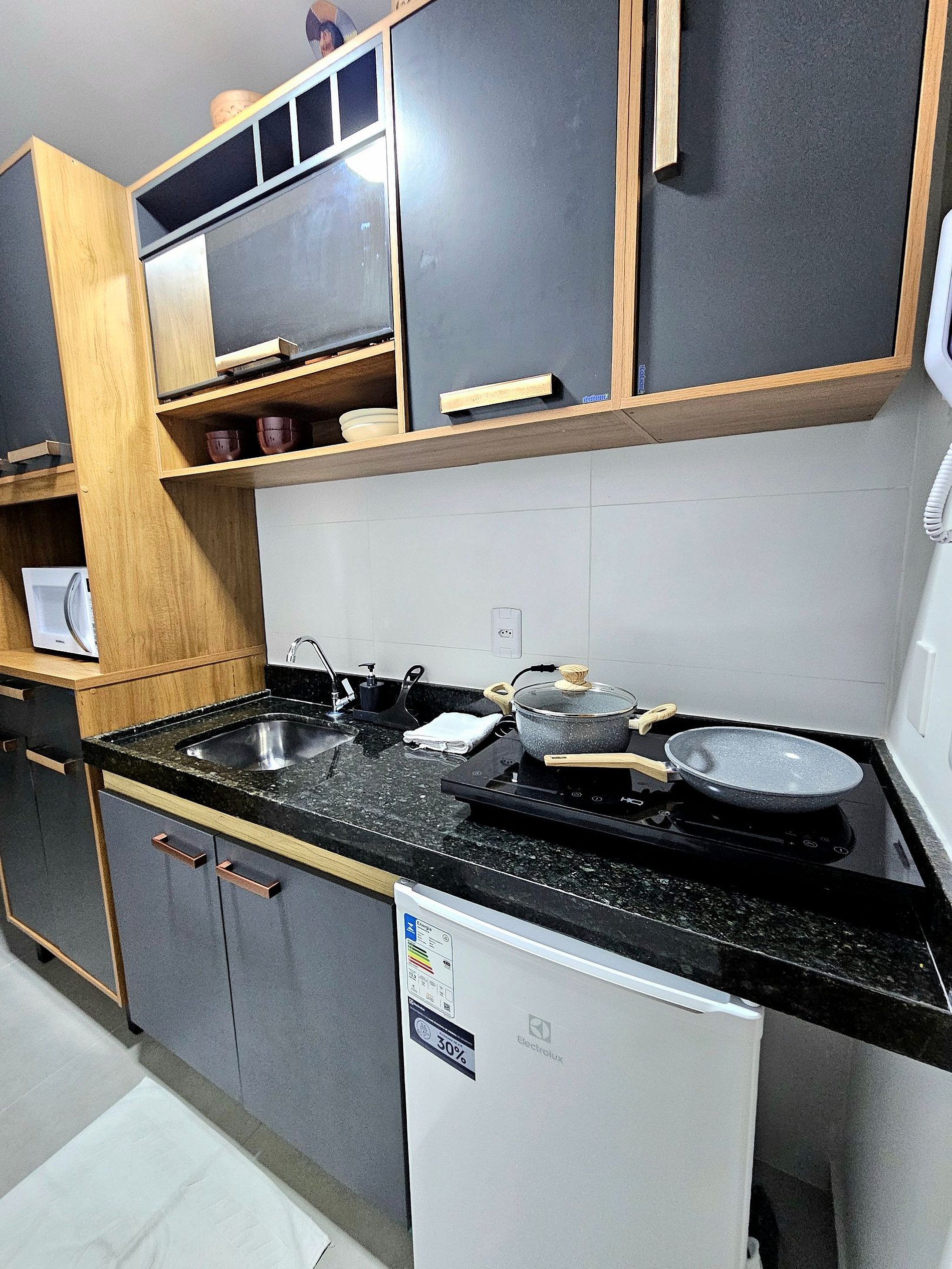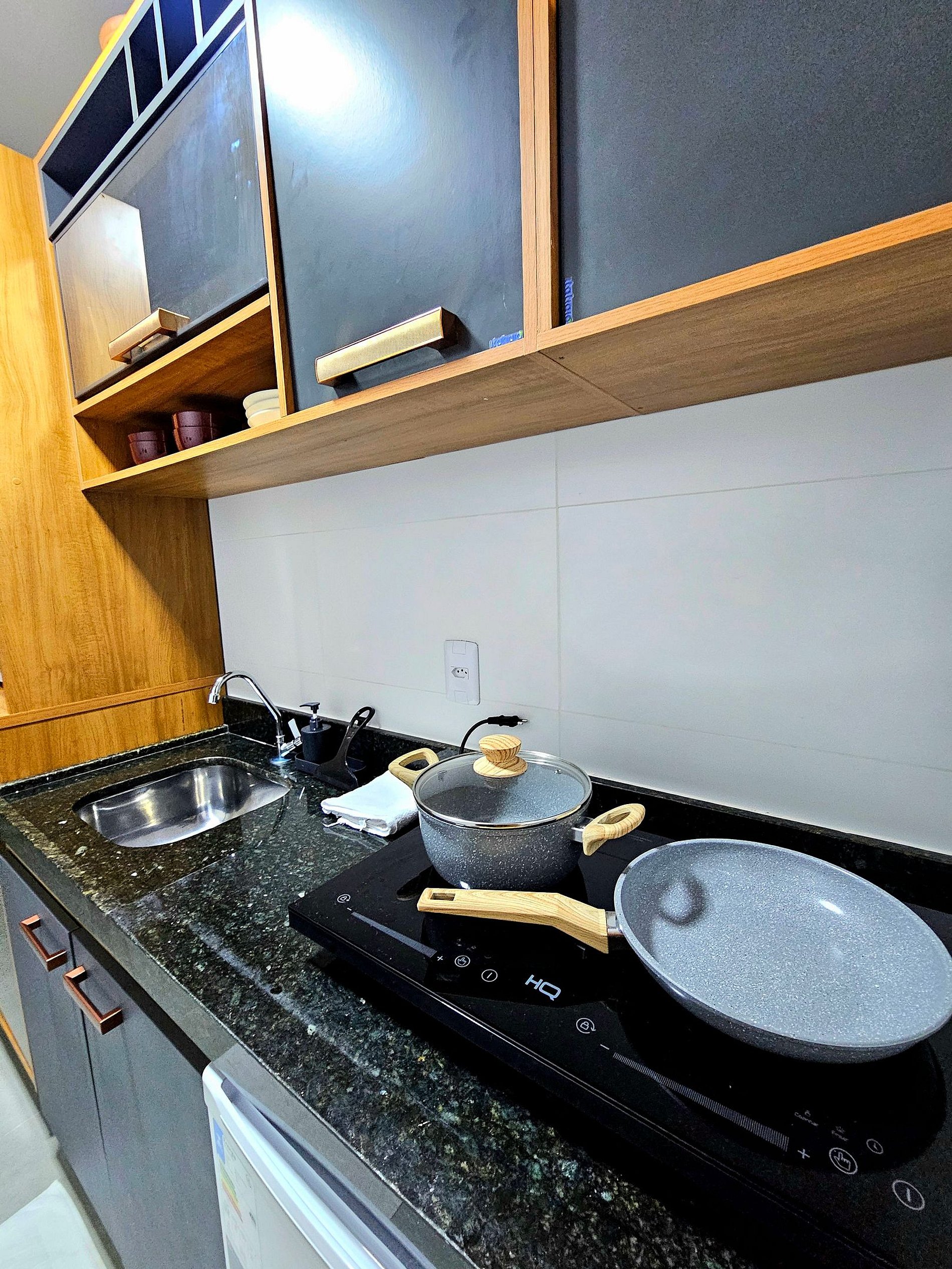 *Completo e Equipado: A cozinha é um dos destaques do apartamento, equipada com todos os eletrodomésticos essenciais para você preparar suas refeições com praticidade (Cafeteira elétrica, sanduicheira, liquidificador, airfryer). Todos os utensílios de cozinha são de primeira linha, desde panelas a talheres, proporcionando uma experiência funcional e agradável para aqueles que gostam de cozinhar.
