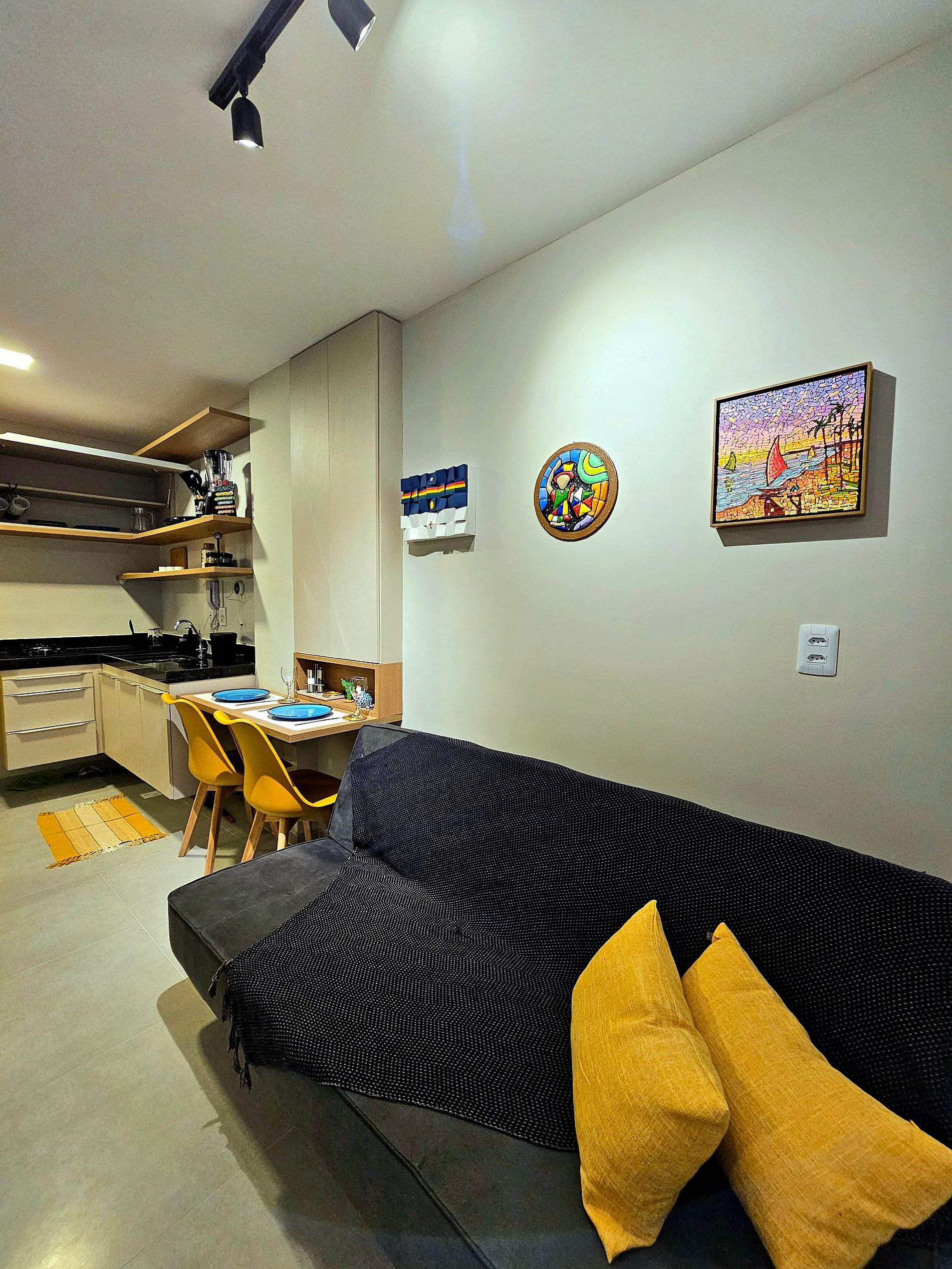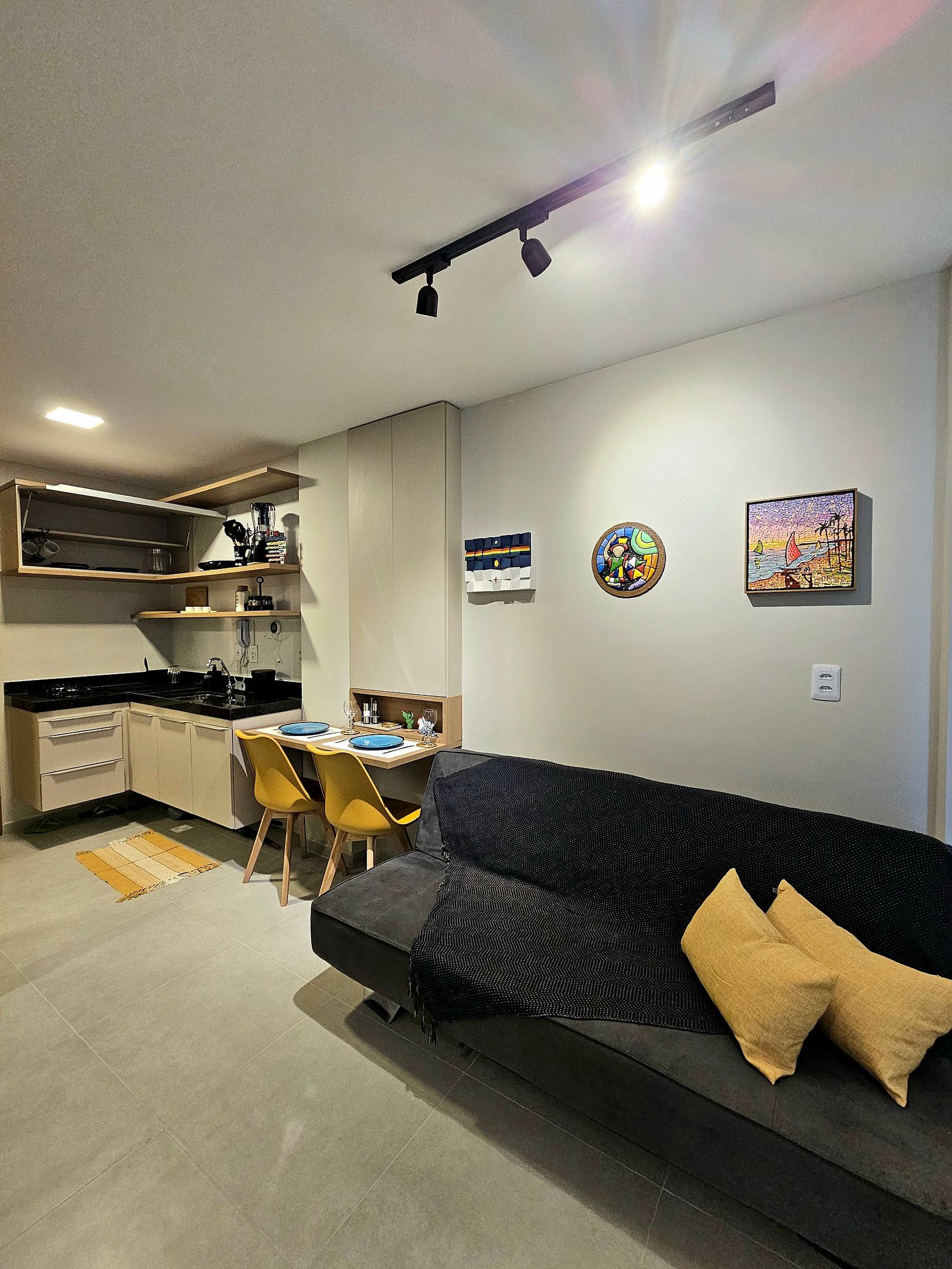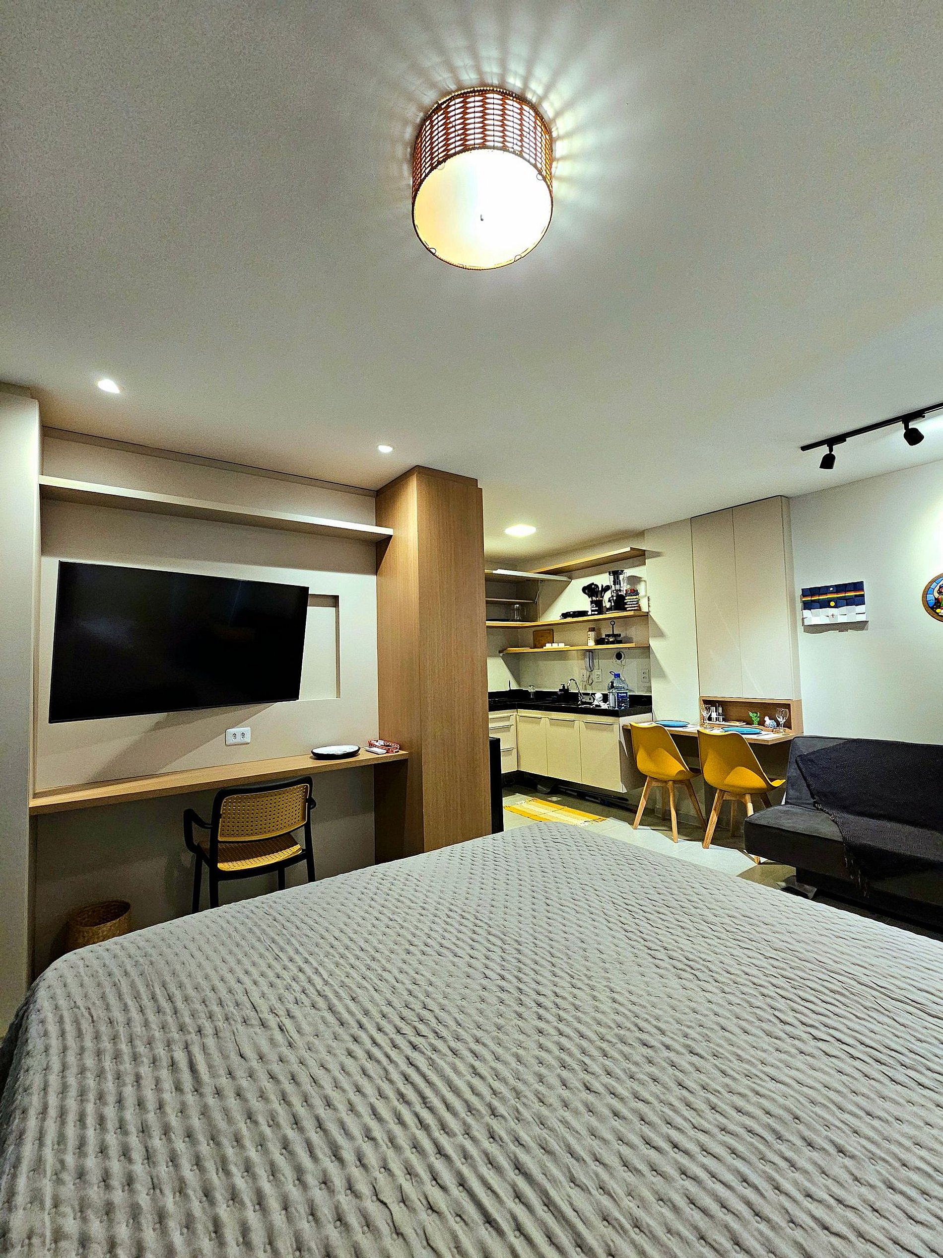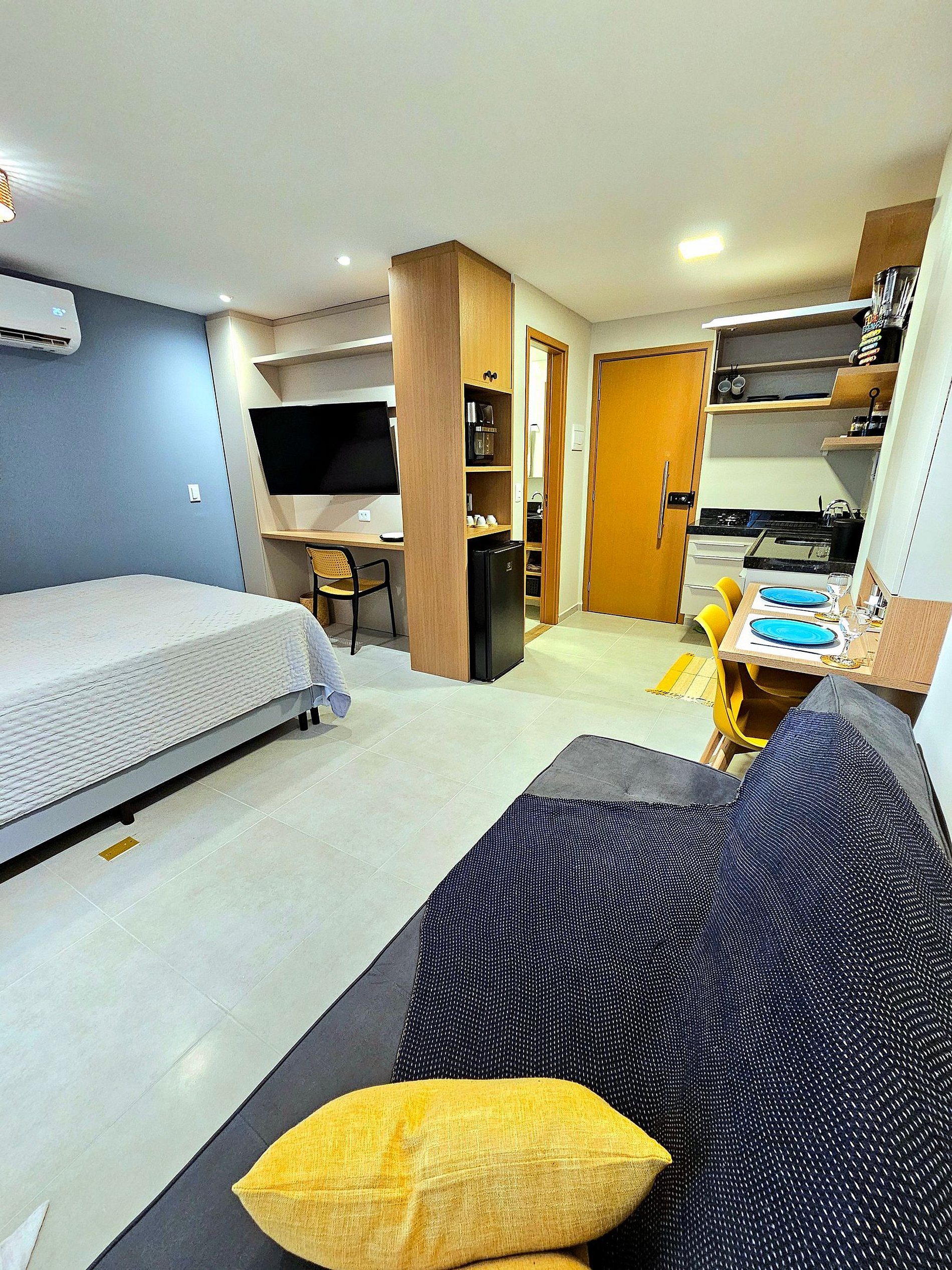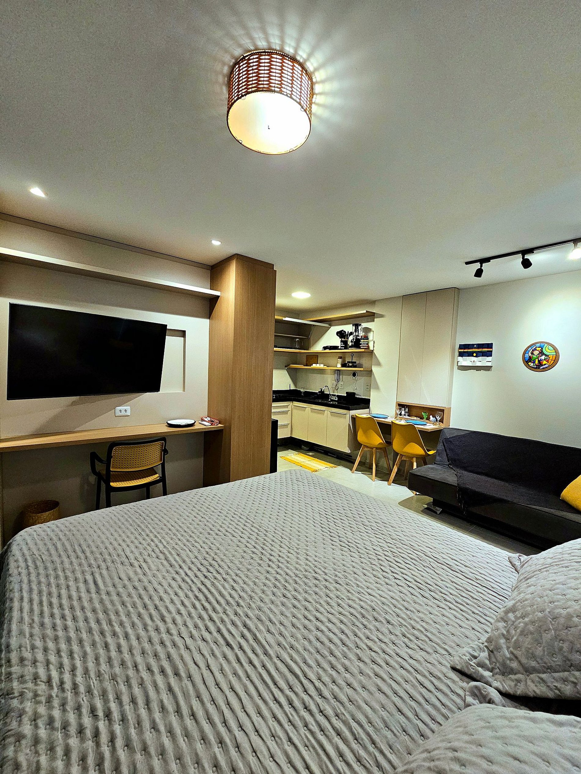 Esse Studio Deslumbrante foi finamente decorado, com muito carinho e bom gosto para proporcionar muito conforto e a sensação de bem-estar aos nossos hóspedes, oferece uma Cozinha completamente equipada com os principais eletrodomésticos: Airfryer, sanduicheira, liquidificador, cafeteira, frigobar, etc.
