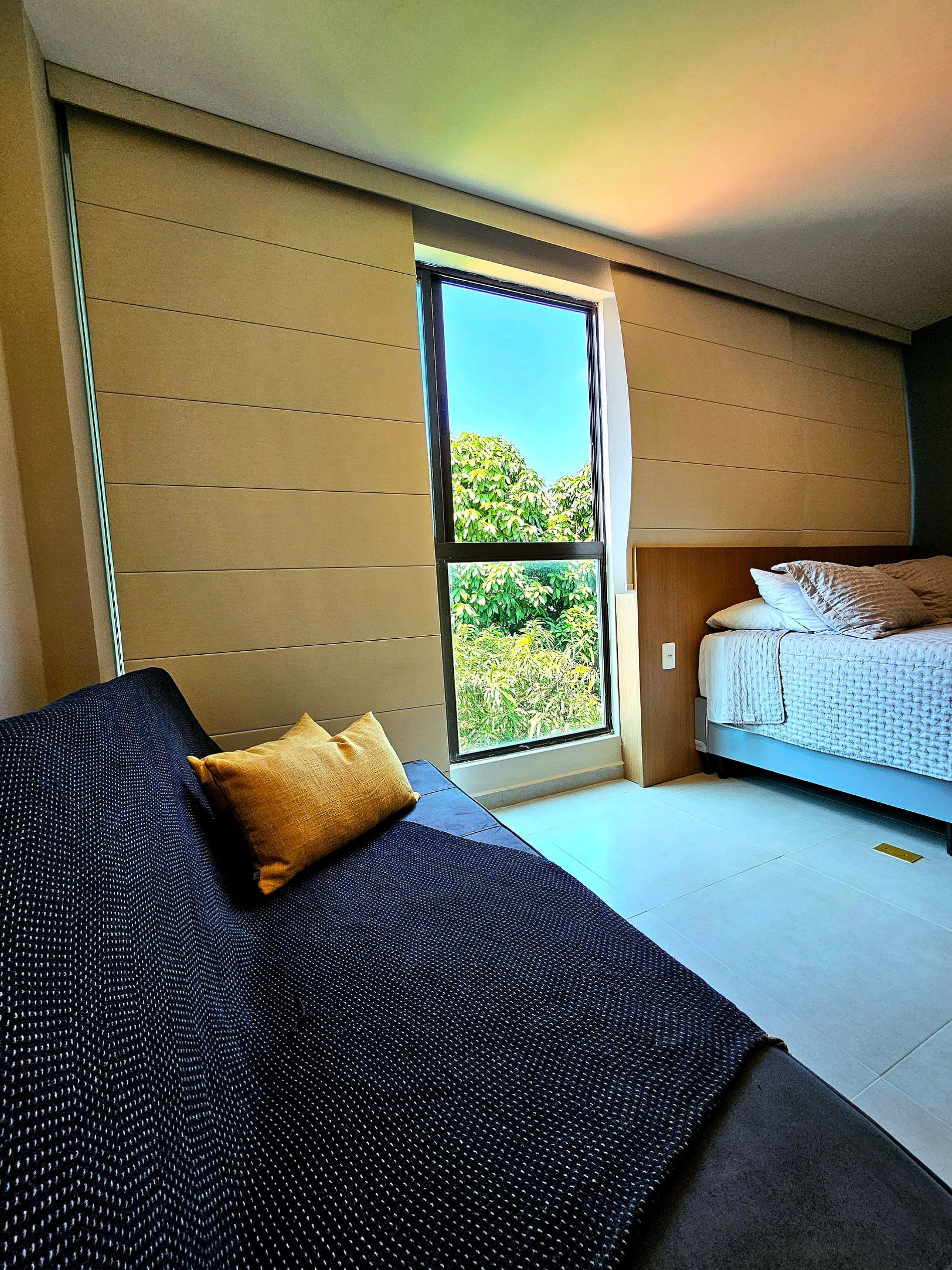 Nosso flat possui uma linda vista verde, cozinha equipada com os principais eletrodomésticos, ambientação e mobiliário de muito bom gosto para proporcionar o máximo de conforto aos nossos hóspedes, nosso edifício possui uma excelente estrutura (Piscina, Academia, Estacionamento Interno) e estamos a menos de 4 minutos de caminhada da principal rua do Centrinho de Porto de Galinhas.
