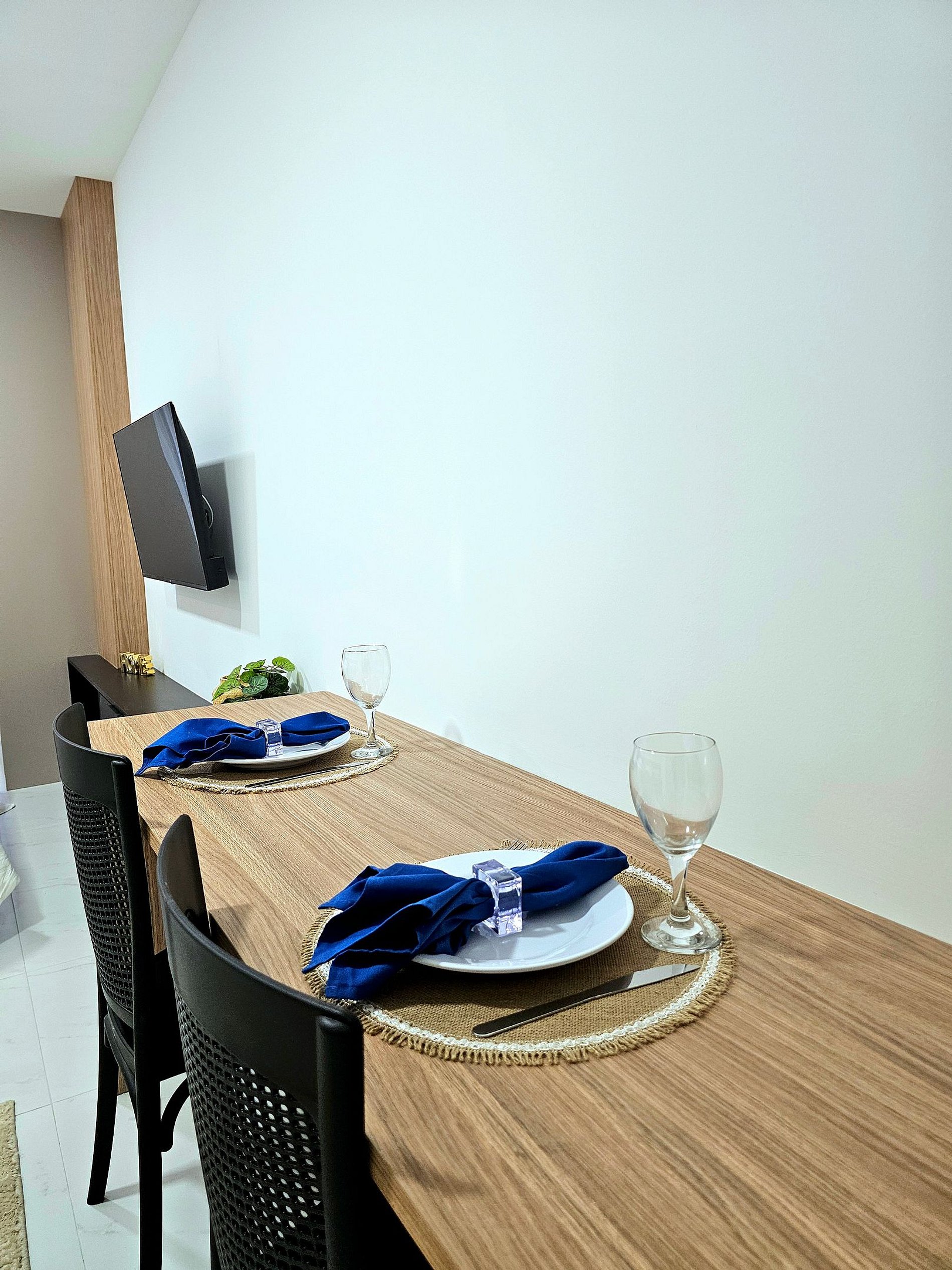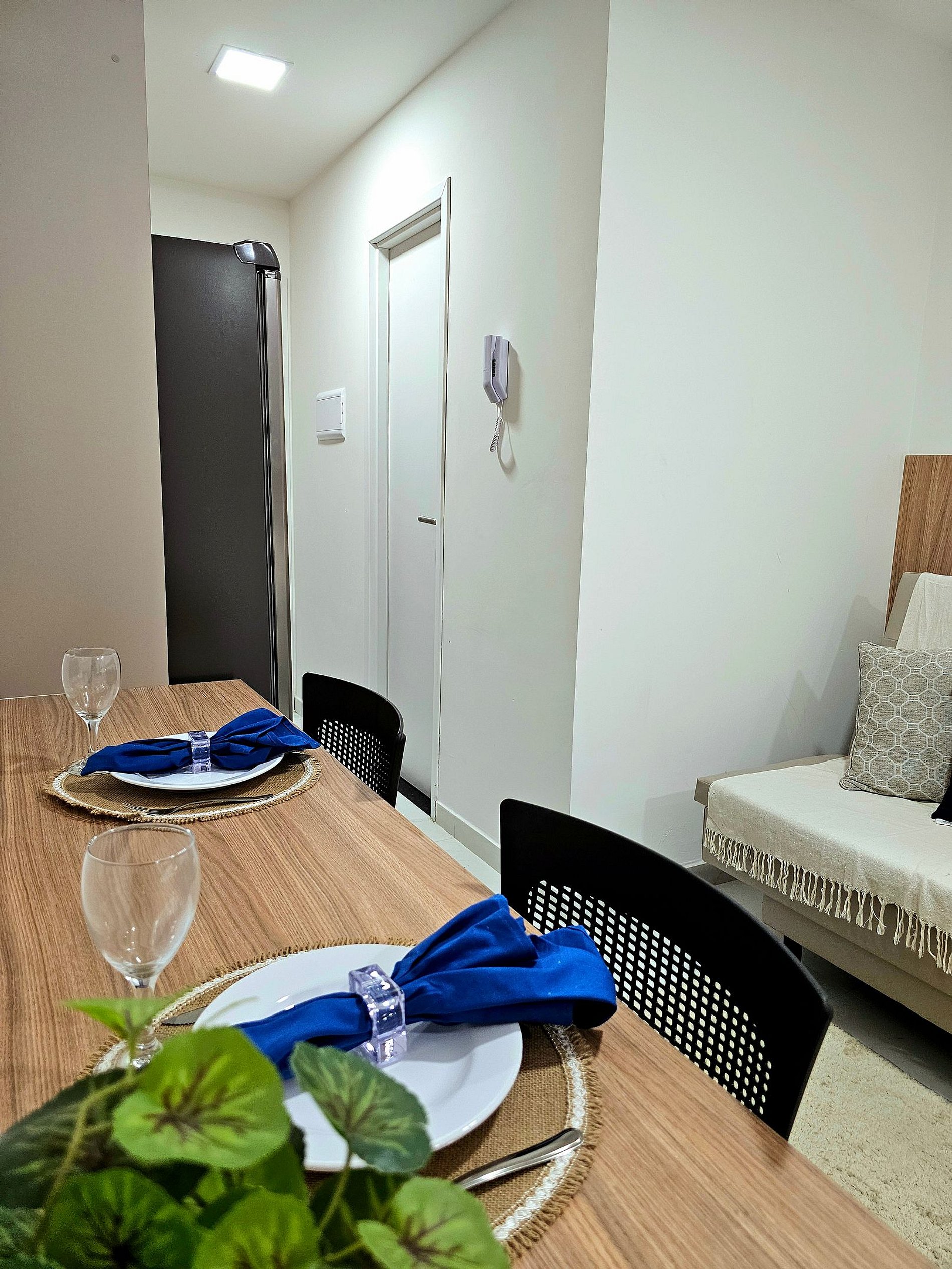 A decoração do apartamento é moderna e de muito bom gosto, com cores suaves e toques contemporâneos que criam um ambiente relaxante e acolhedor. A sala de estar é ampla e iluminada, equipada com uma TV de tela plana para que você possa desfrutar de seus programas favoritos. A cozinha é totalmente equipada com eletrodomésticos de alta qualidade, incluindo geladeira, fogão, micro-ondas, cafeteira, liquidificador, sanduicheira, airfryer, além de todos os utensílios necessários para preparar refeições deliciosas. Seja um café da manhã simples ou um jantar completo, você terá tudo à mão. O apartamento também conta com ar-condicionado, proporcionando um clima agradável durante toda a sua estadia, independentemente do tempo lá fora. As roupas de cama e toalhas são de alta qualidade, assegurando que sua experiência seja confortável e sem preocupações.