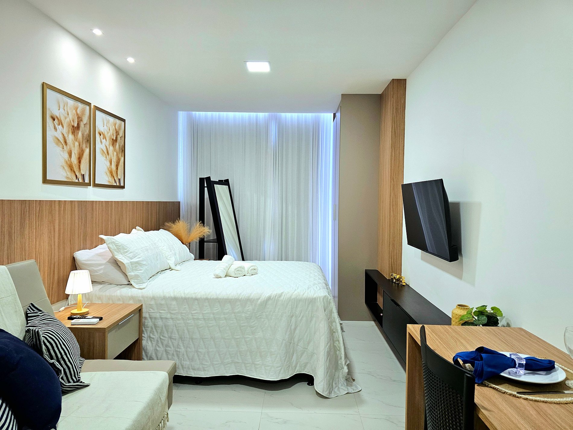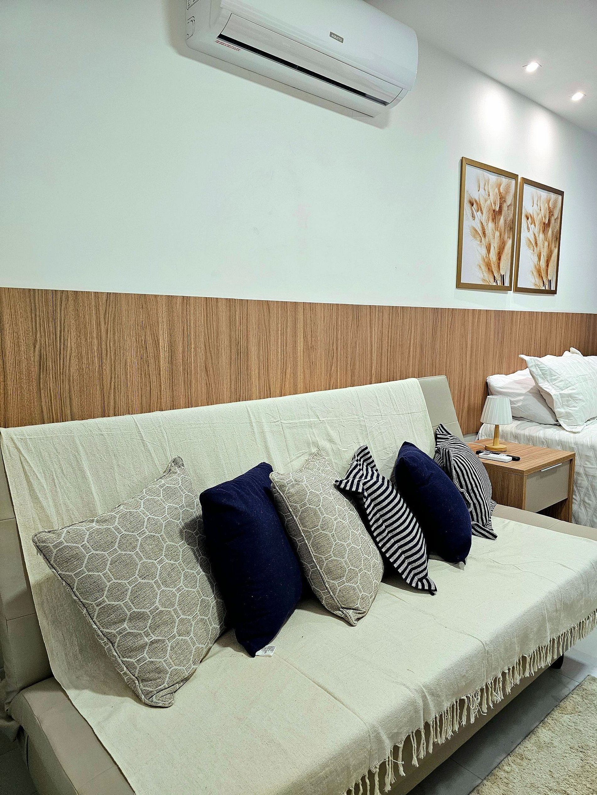 Este apartamento é uma verdadeira joia no coração de Porto de Galinhas, oferecendo uma combinação perfeita de conforto, modernidade e funcionalidade. O espaço foi cuidadosamente projetado para acomodar até quatro pessoas com o máximo de conforto. Possui uma cama de casal extremamente confortável, garantindo noites de sono reparador. O sofá-cama também foi escolhido com atenção especial ao conforto, ideal para mais duas pessoas.
