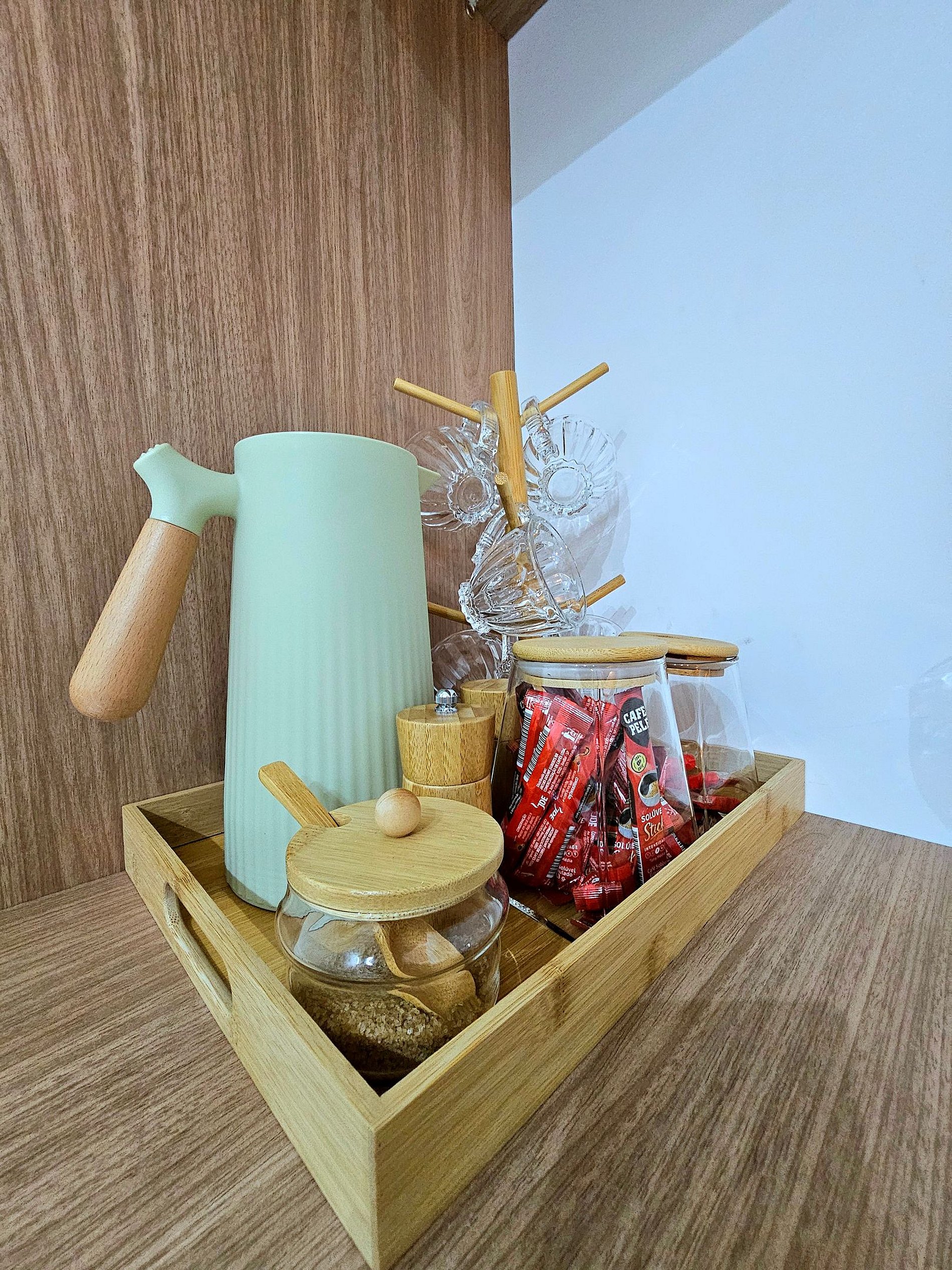 A cozinha é um dos destaques do apartamento, equipada com todos os eletrodomésticos essenciais para você preparar suas refeições com praticidade. Todos os utensílios de cozinha são de primeira linha, desde panelas a talheres, proporcionando uma experiência funcional e agradável para aqueles que gostam de cozinhar.