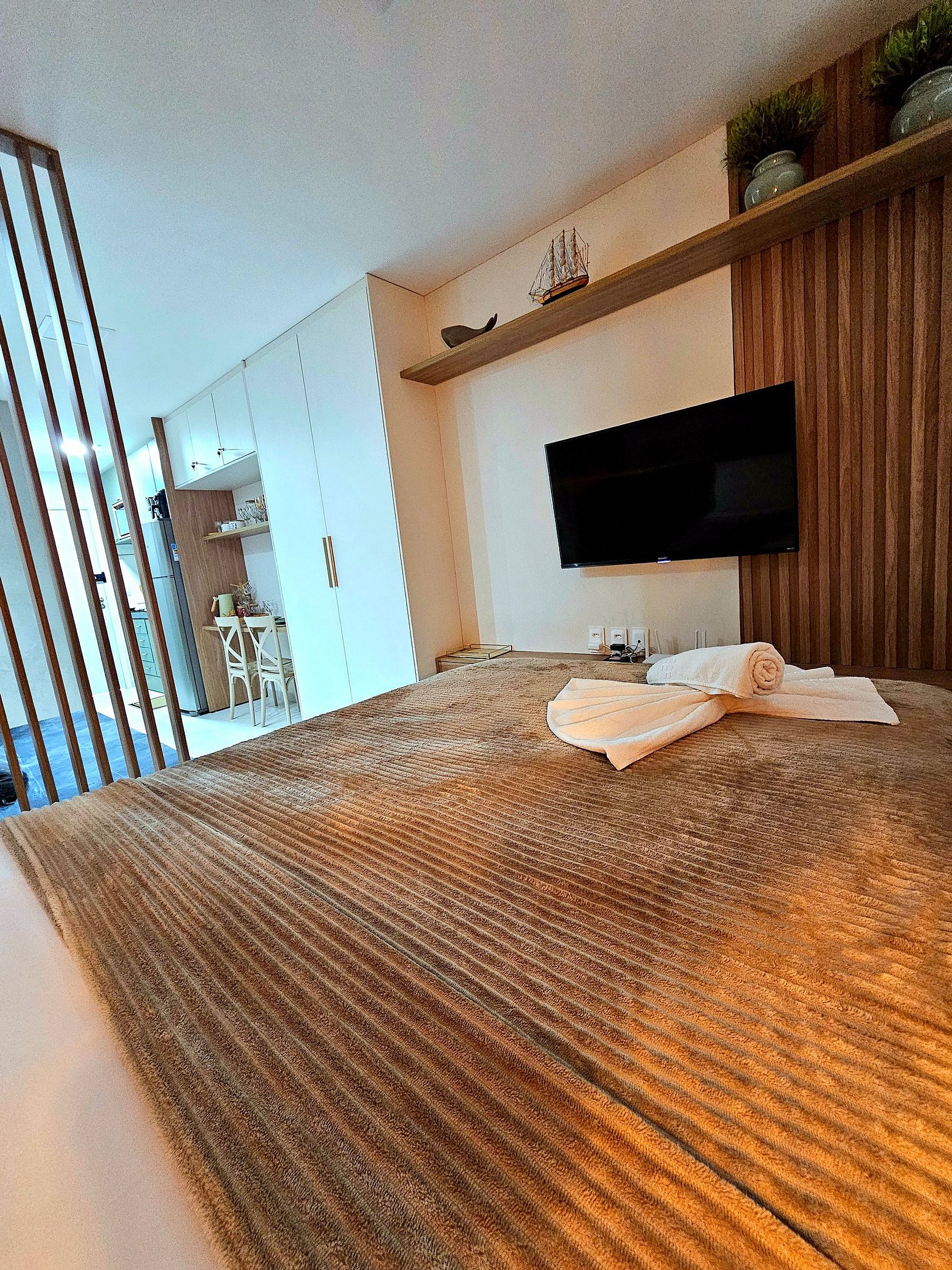 Cada canto do apartamento foi planejado com foco no conforto dos hóspedes. Com móveis e utensílios de alta qualidade, o ambiente é ideal tanto para descanso quanto para momentos de lazer. A escolha dos itens foi feita com atenção especial aos detalhes, garantindo que você se sinta em casa durante sua estadia.