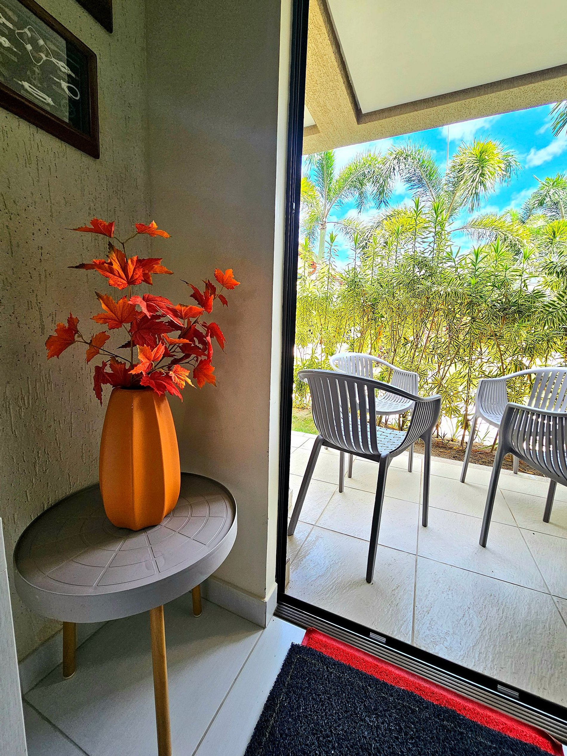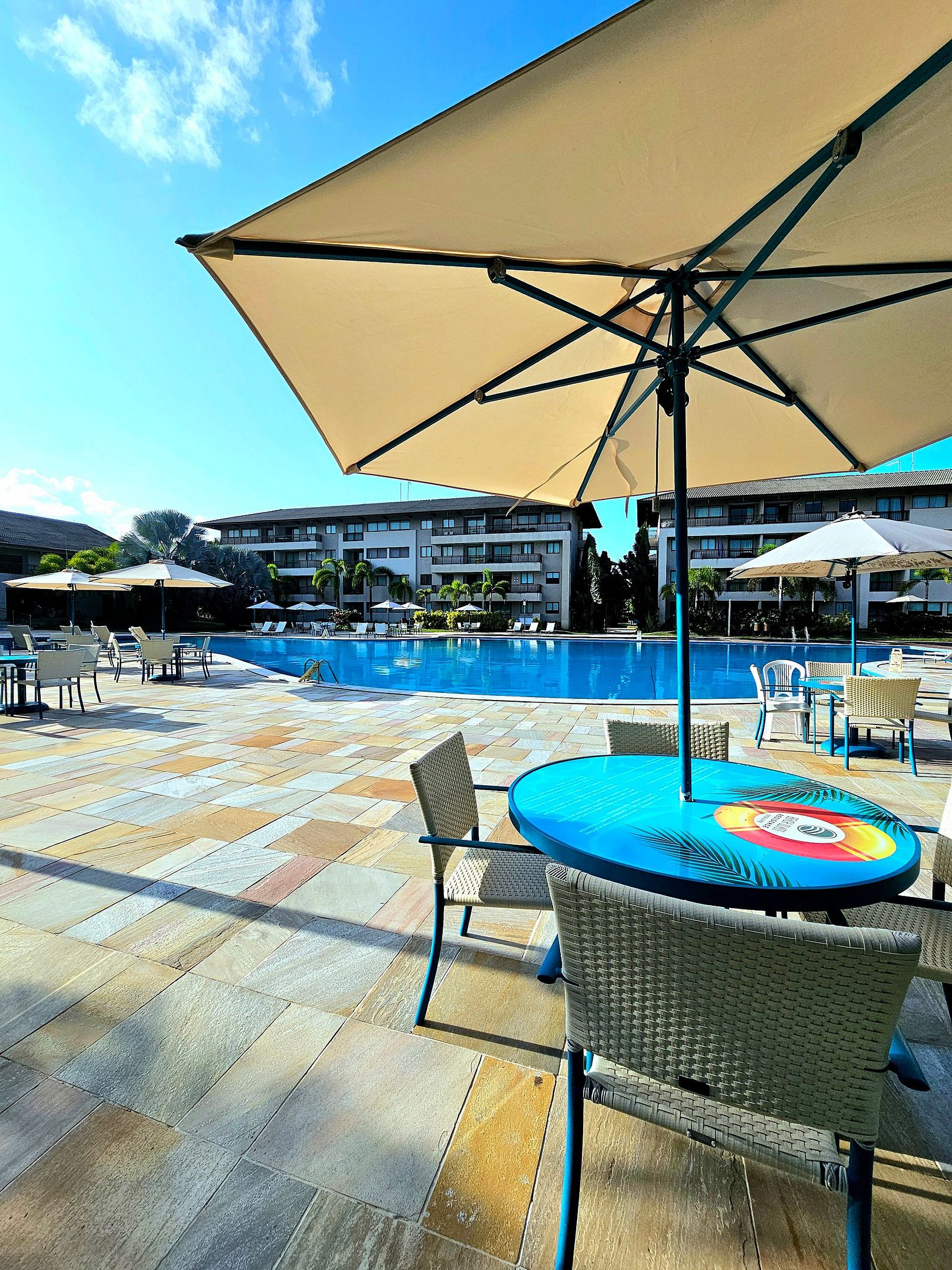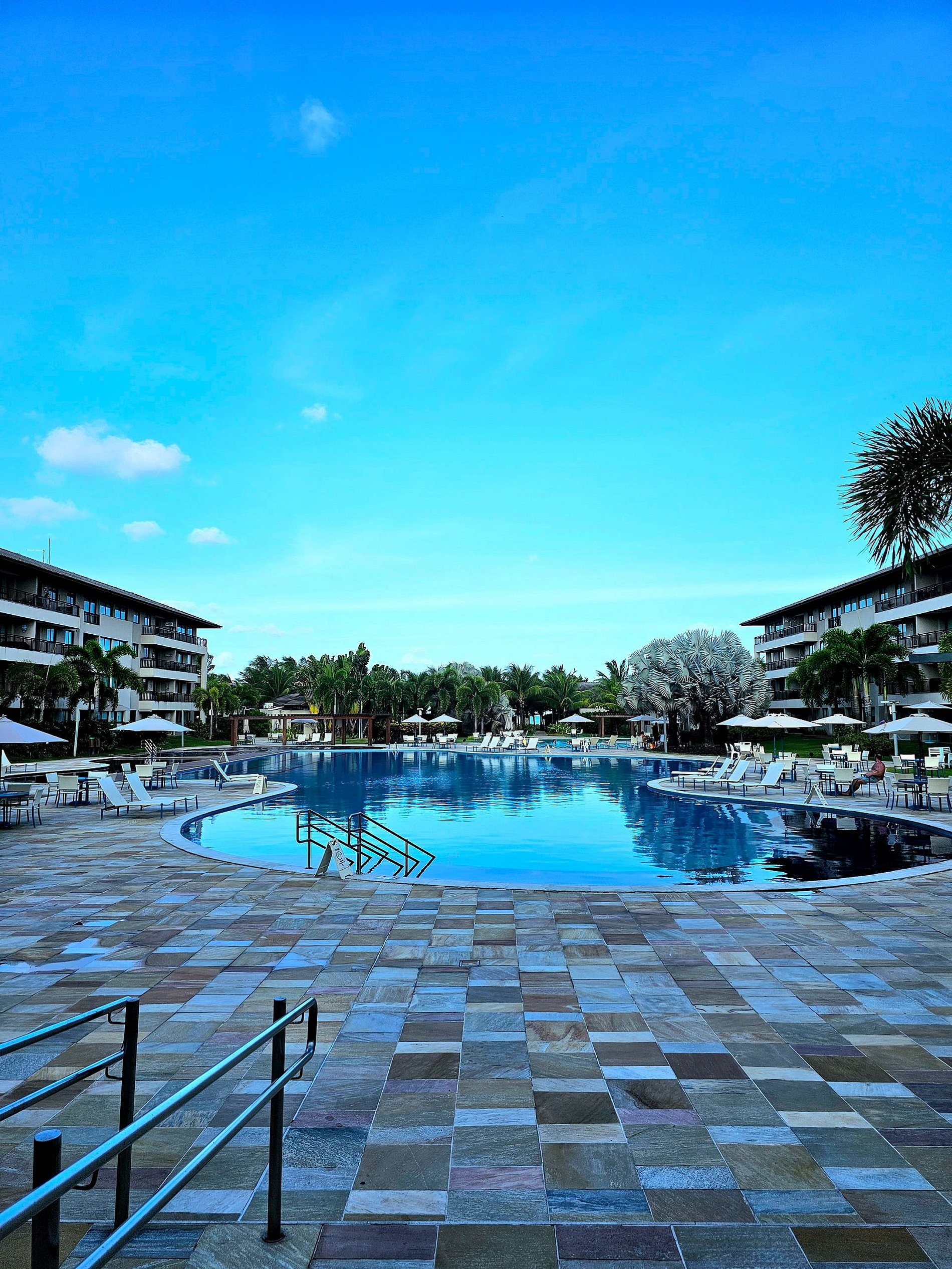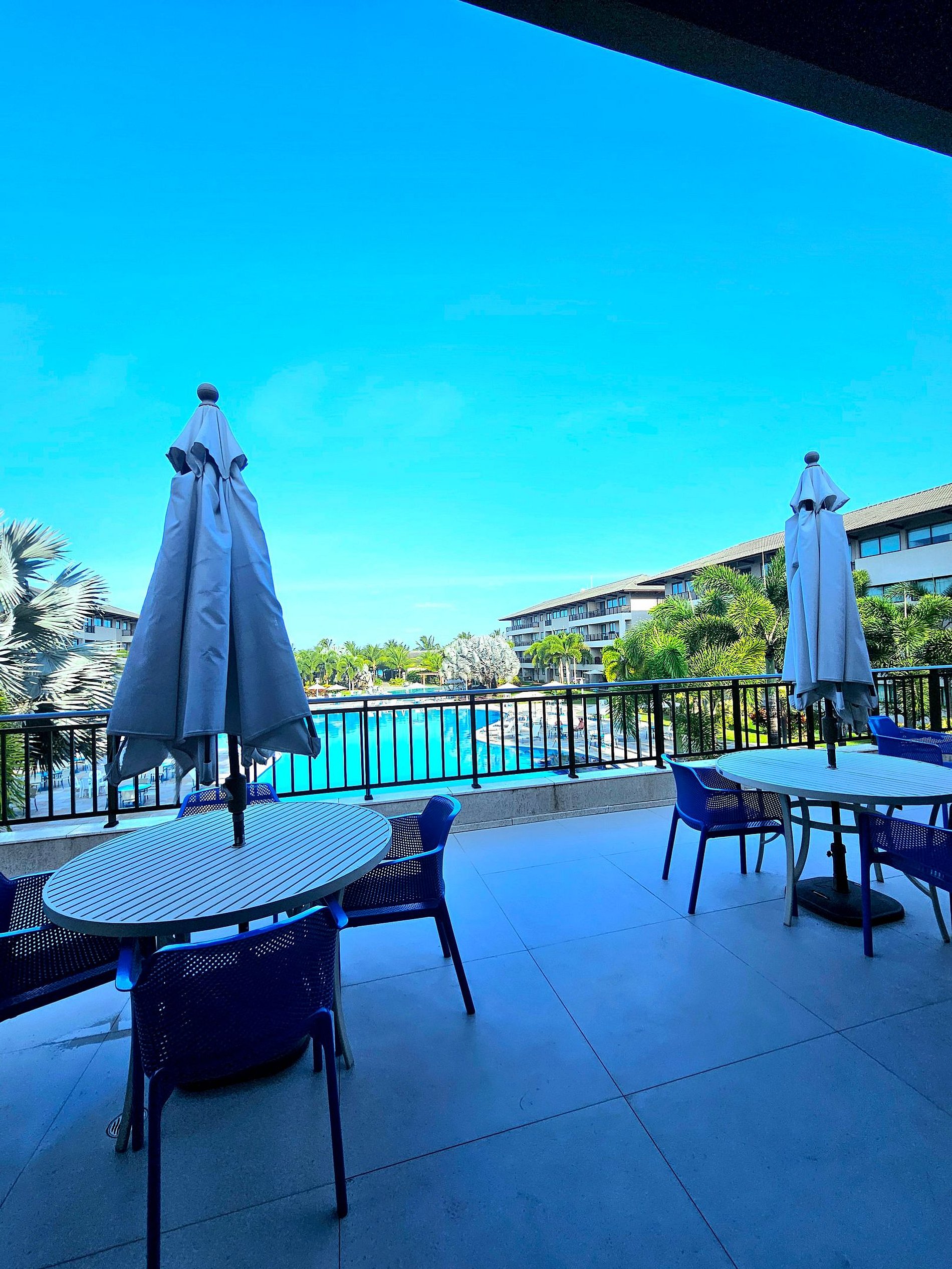 Temos uma saída diretamente da nossa varanda para as piscinas e Restaurante do empreendimento.