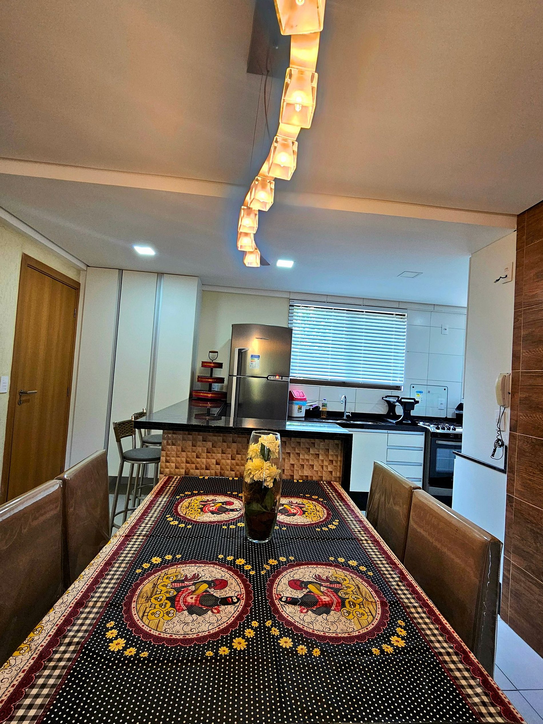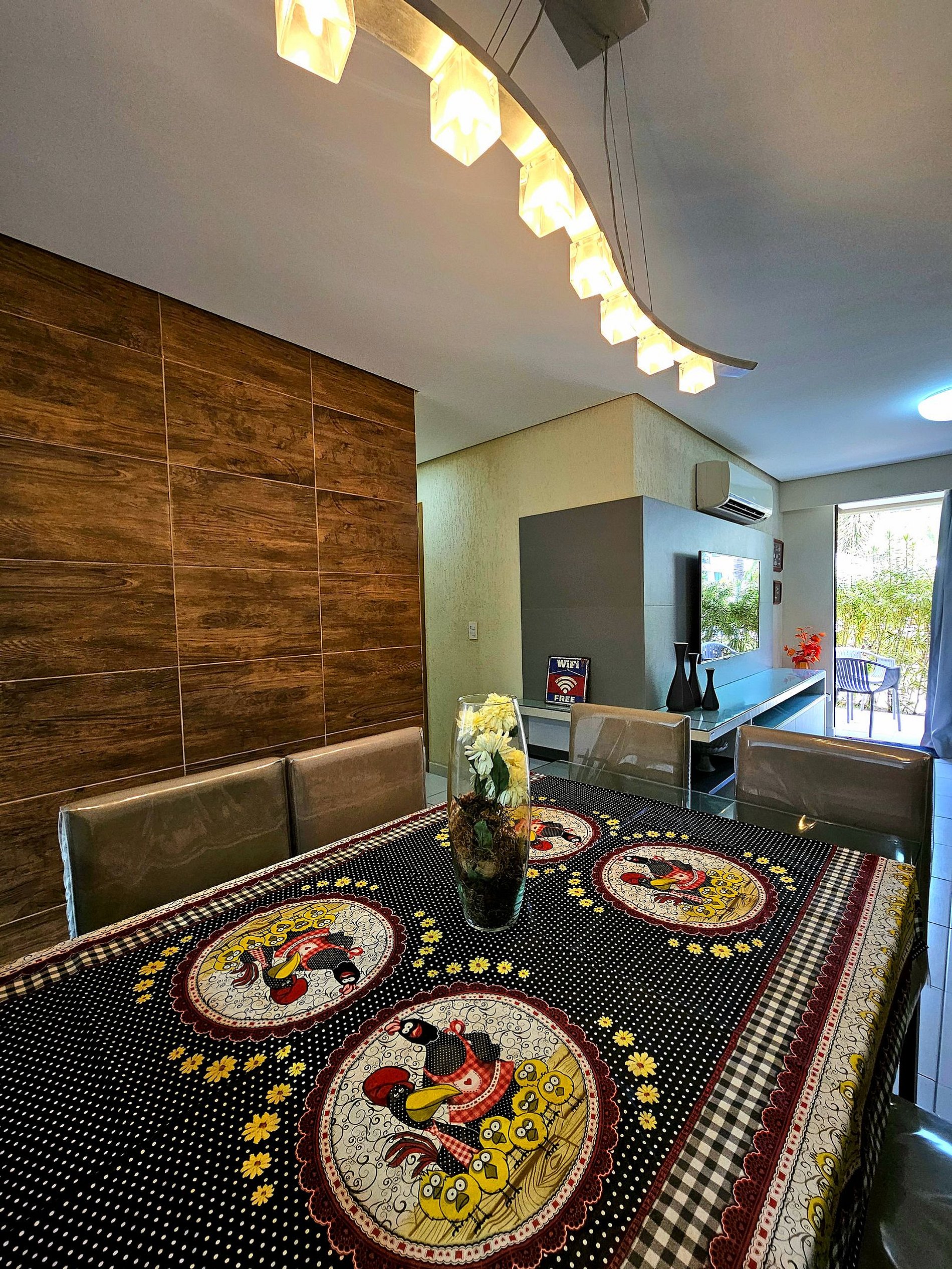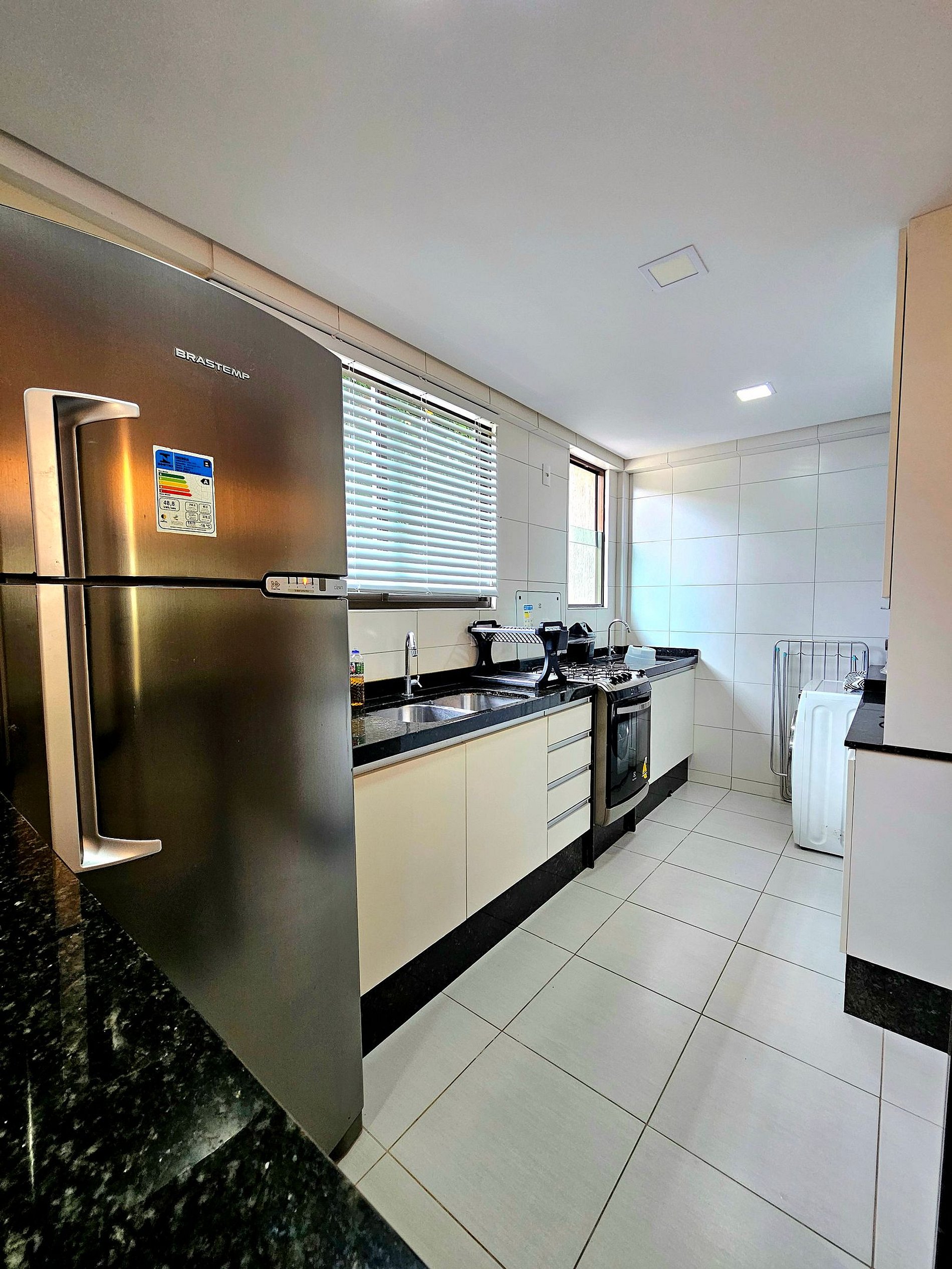 Cozinha Completa: A cozinha é um dos destaques deste flat. Totalmente equipada com eletrodomésticos modernos, você encontrará tudo o que precisa para preparar desde um café da manhã rápido até um jantar especial. A cozinha se integra perfeitamente com a sala de jantar, criando um ambiente acolhedor para refeições em família. (Liquidificador, Sanduicheira, airfryer, cafeteira, fogão, geladeira, etc..)