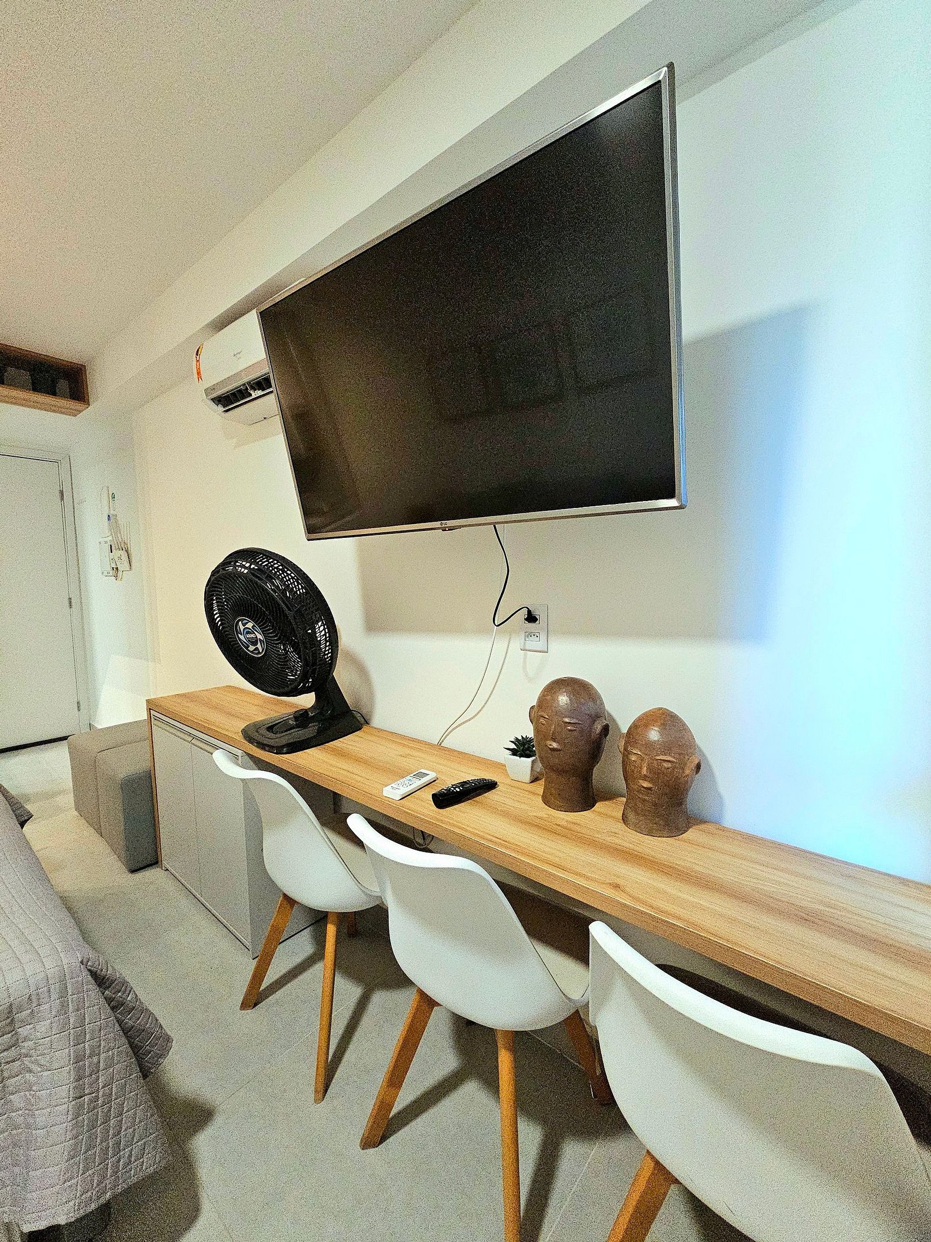Cozinha Equipada Prepare suas refeições com facilidade na cozinha bem equipada, que inclui os principais eletrodomésticos modernos (Sanduicheiro, airfryer, liquidificador, cafeteira, microondas). Seja para um café da manhã rápido antes de explorar a cidade ou para um jantar especial, você encontrará tudo o que precisa para cozinhar com praticidade e eficiência.