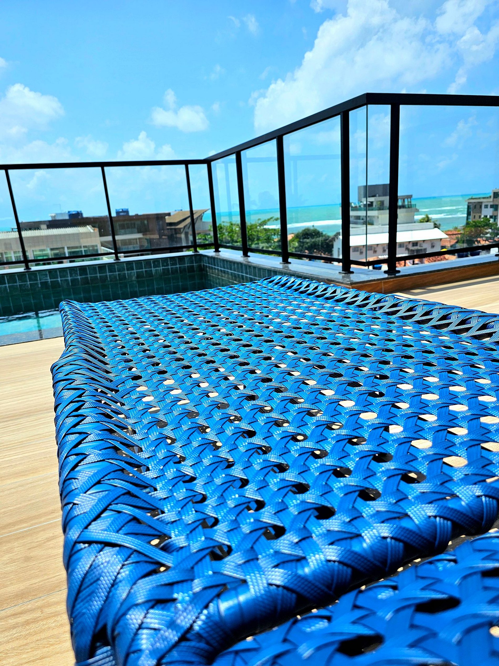 O Rooftop do Porto Kai é uma verdadeira joia, com uma piscina grande rodeada por um deck com espreguiçadeiras, mesas e cadeiras, além de uma área gourmet equipada para eventos ou relaxamento. É o local ideal para socializar, celebrar ocasiões especiais ou simplesmente desfrutar da brisa marinha com vista panorâmica.